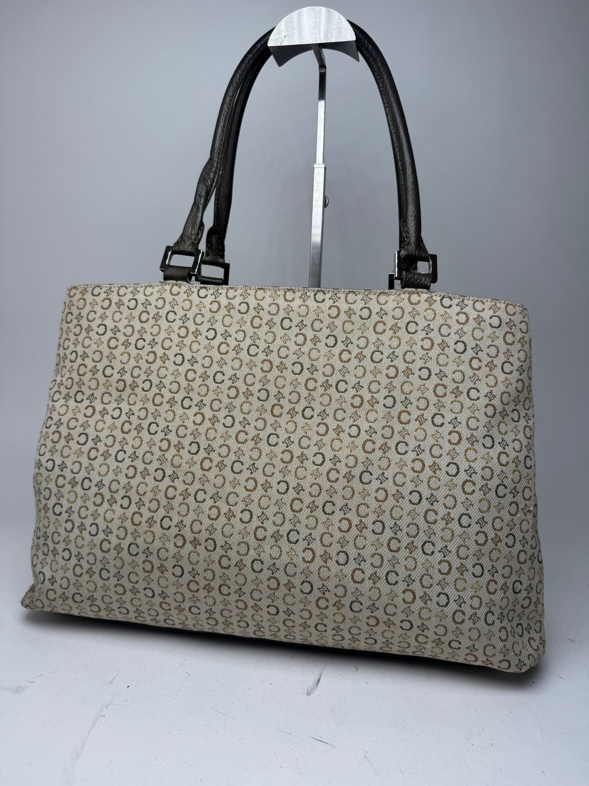 Vintage Celine Monogram Leather Canvas Tote Vaf beige Brown