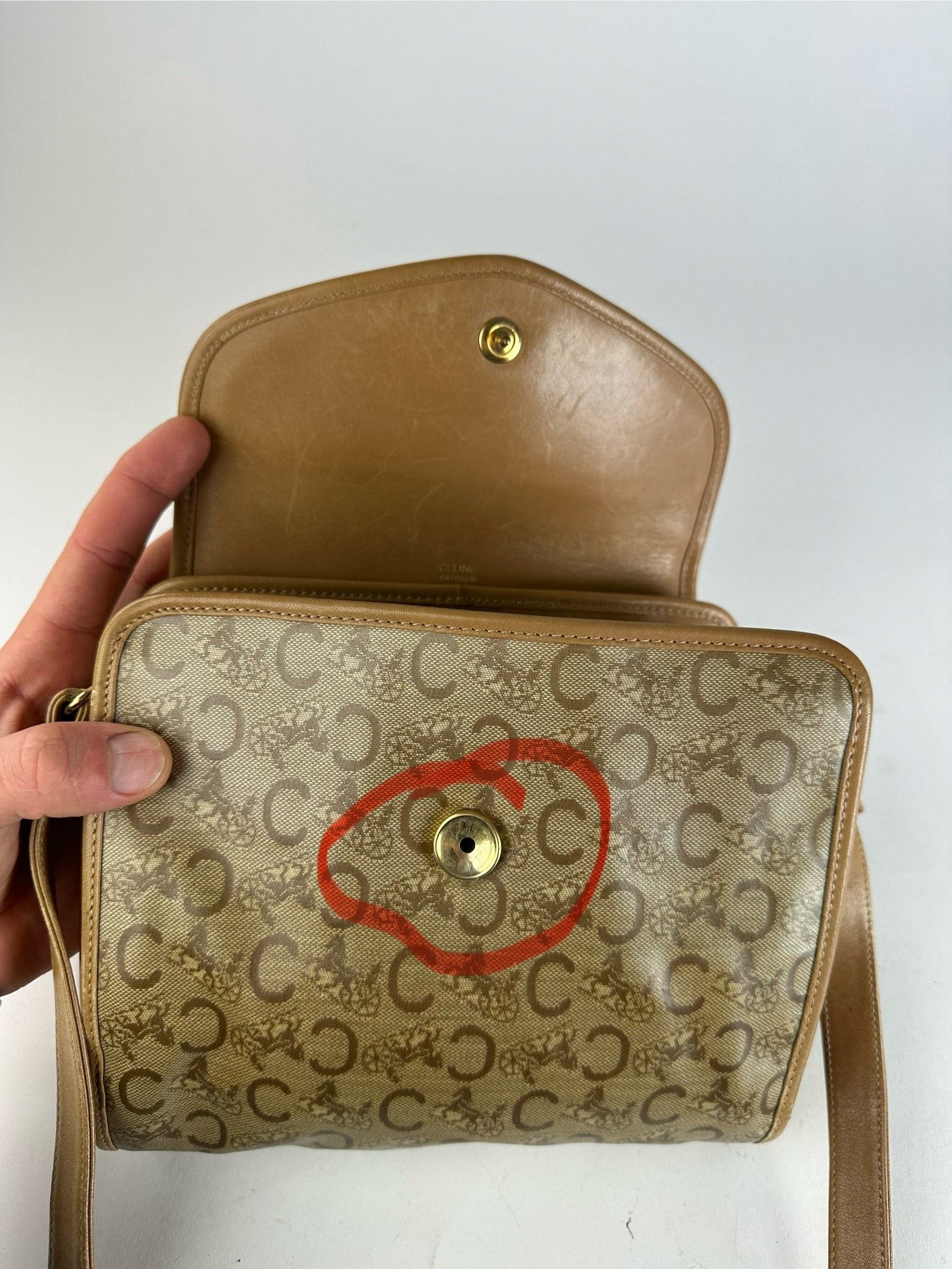 Vintage Celine Monogram Shoulder / Crossbody Bag Gold Beige