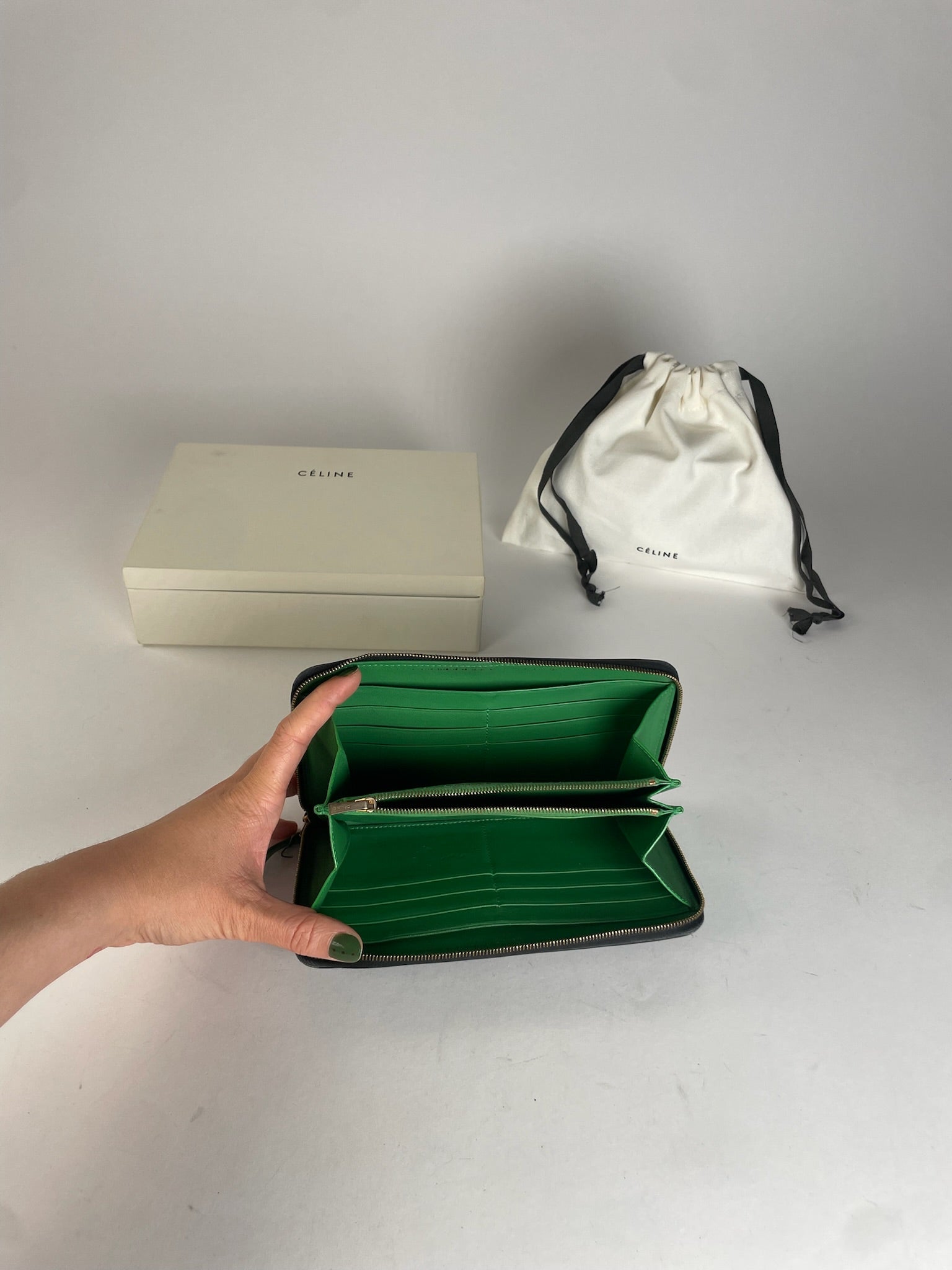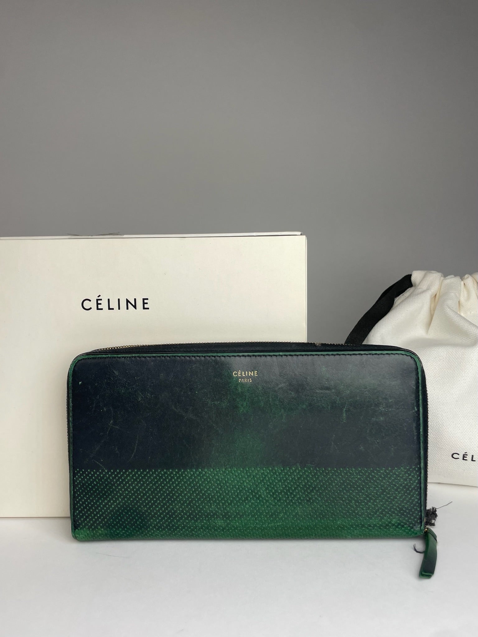 Vintage Celine Paria Leather Zippy Wallet Green