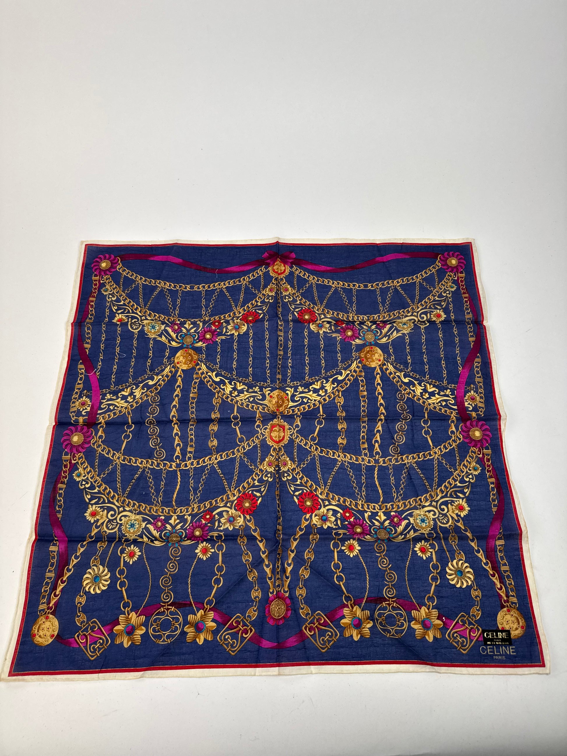 Vintage Celine Paris Baroque Scarf Navy
