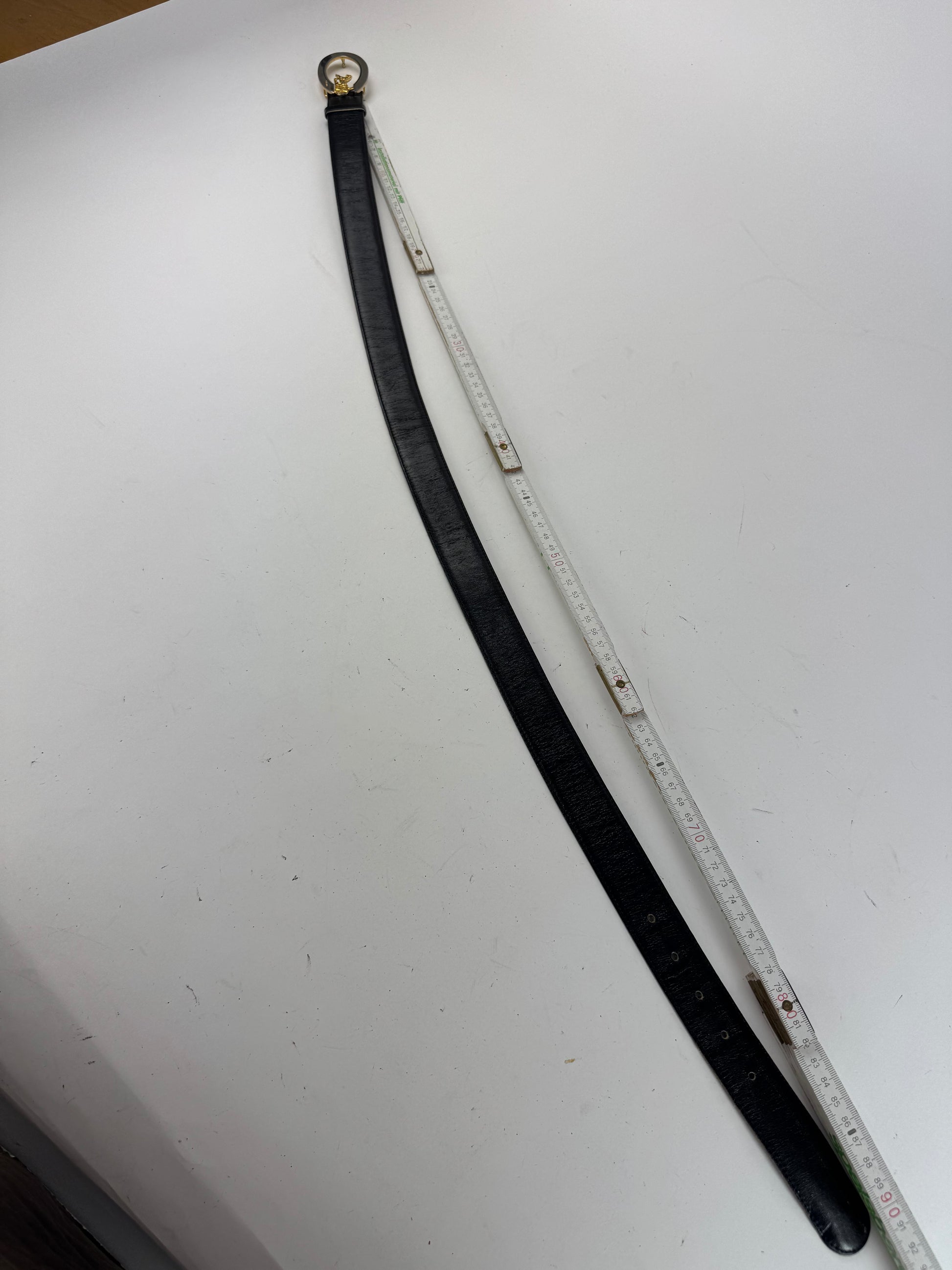 Condition Details: The leather is smooth with light usage marks. The bi-color silver and steel buckle shows small scratches but remains bright and crisp. Overall in very good condition.