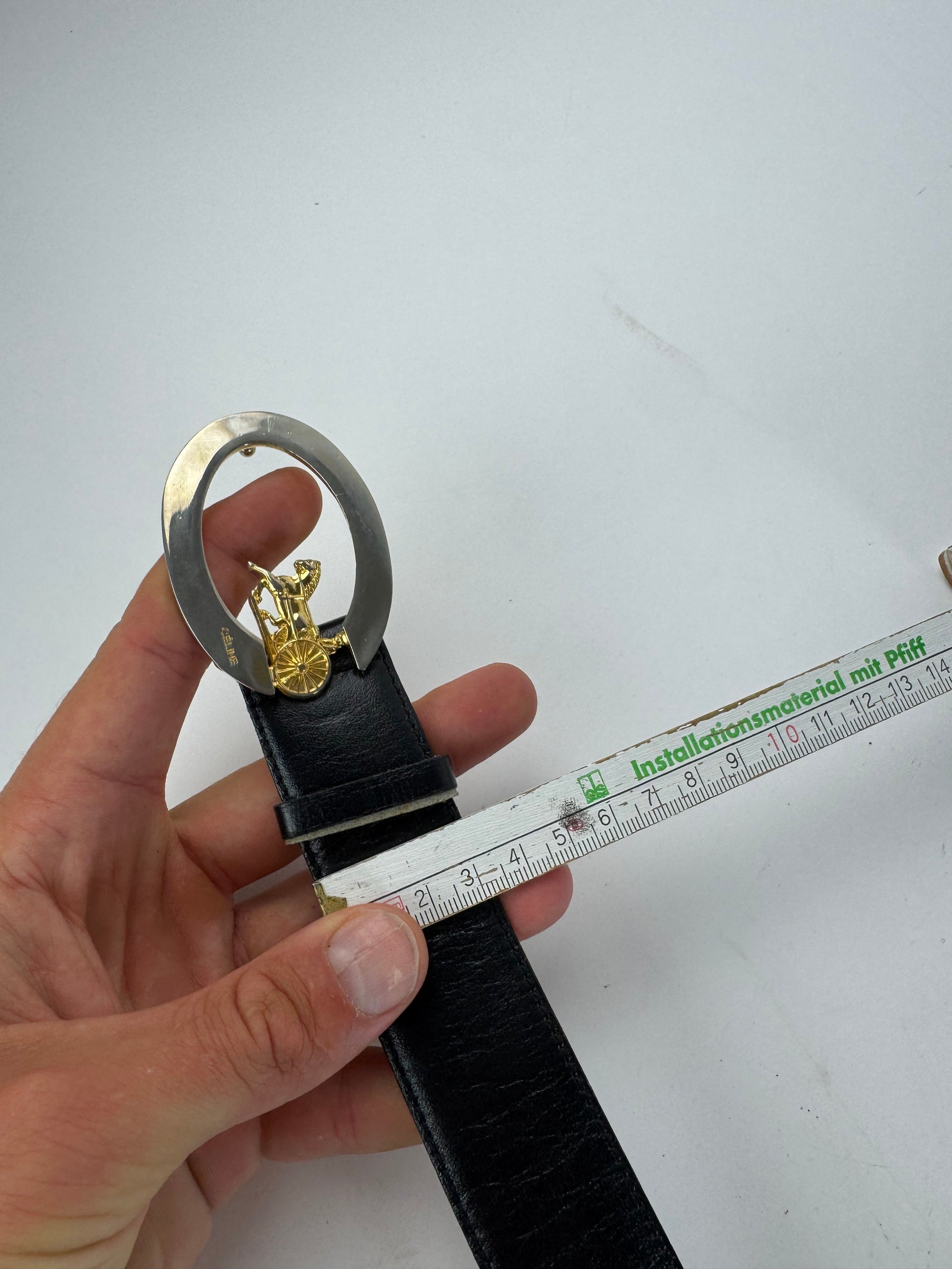 Vintage Celine Paris Carriage Logo Leather belt black