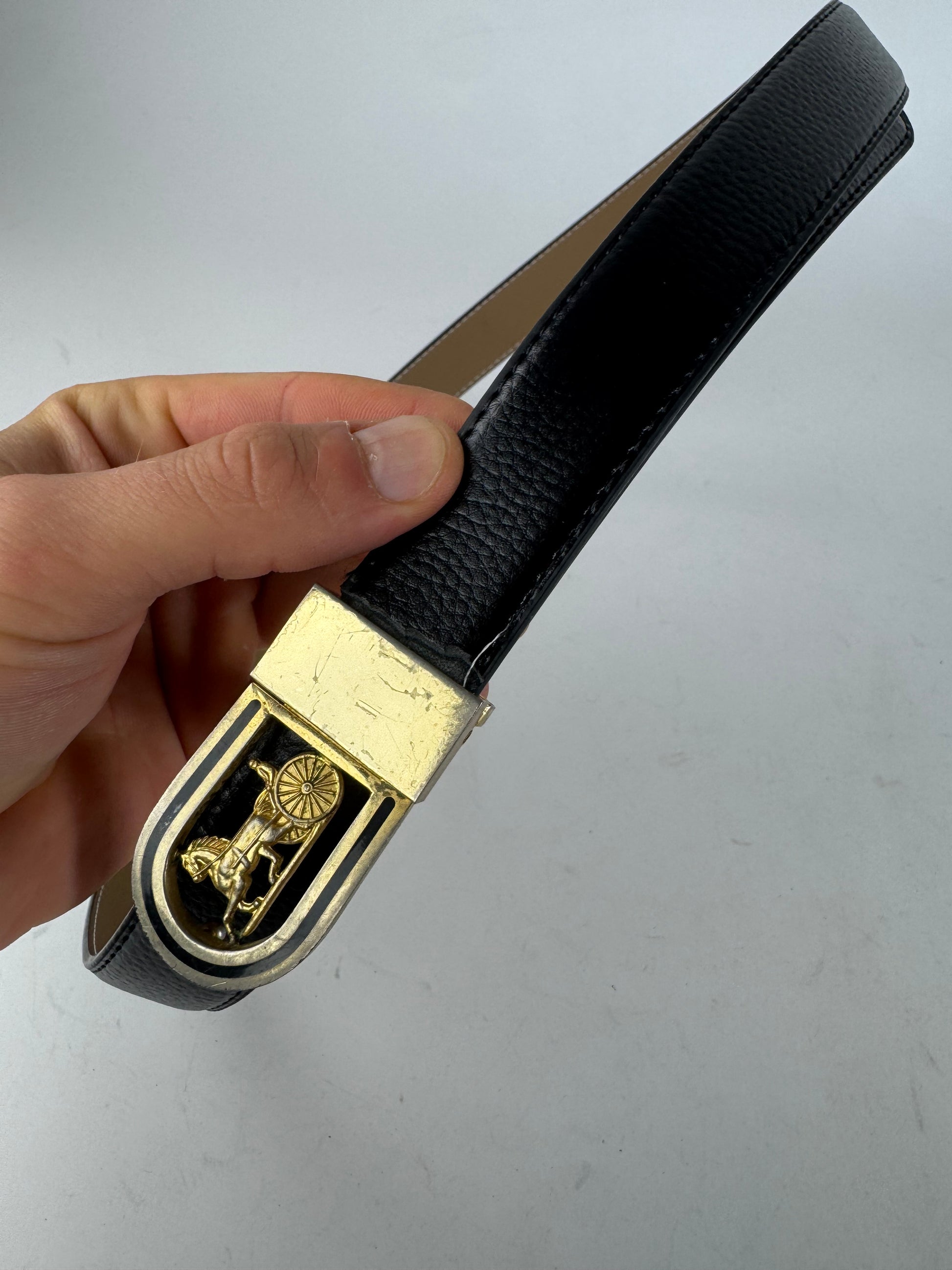 Vintage Celine Paris Carriage Logo Leather Belt Black