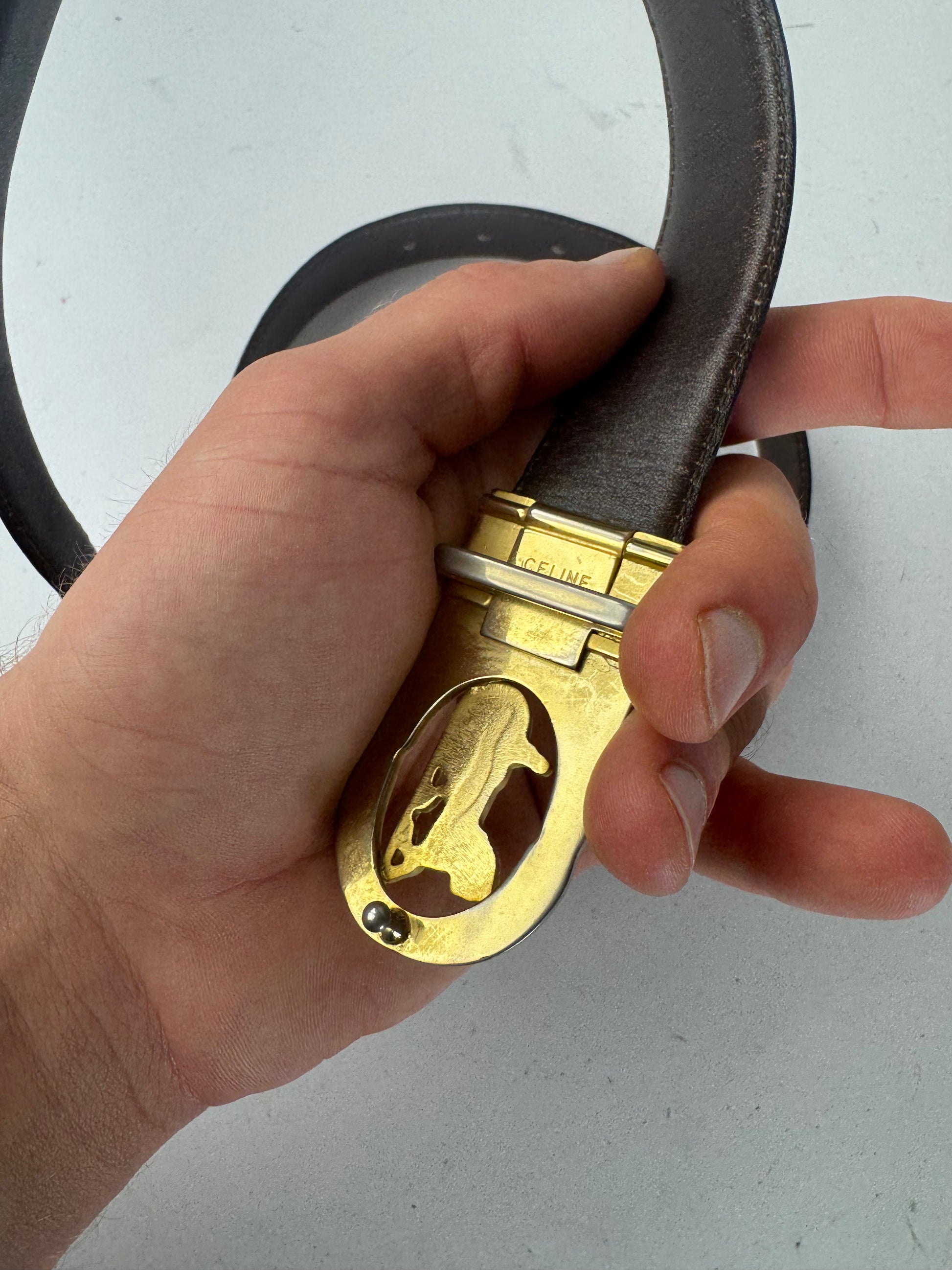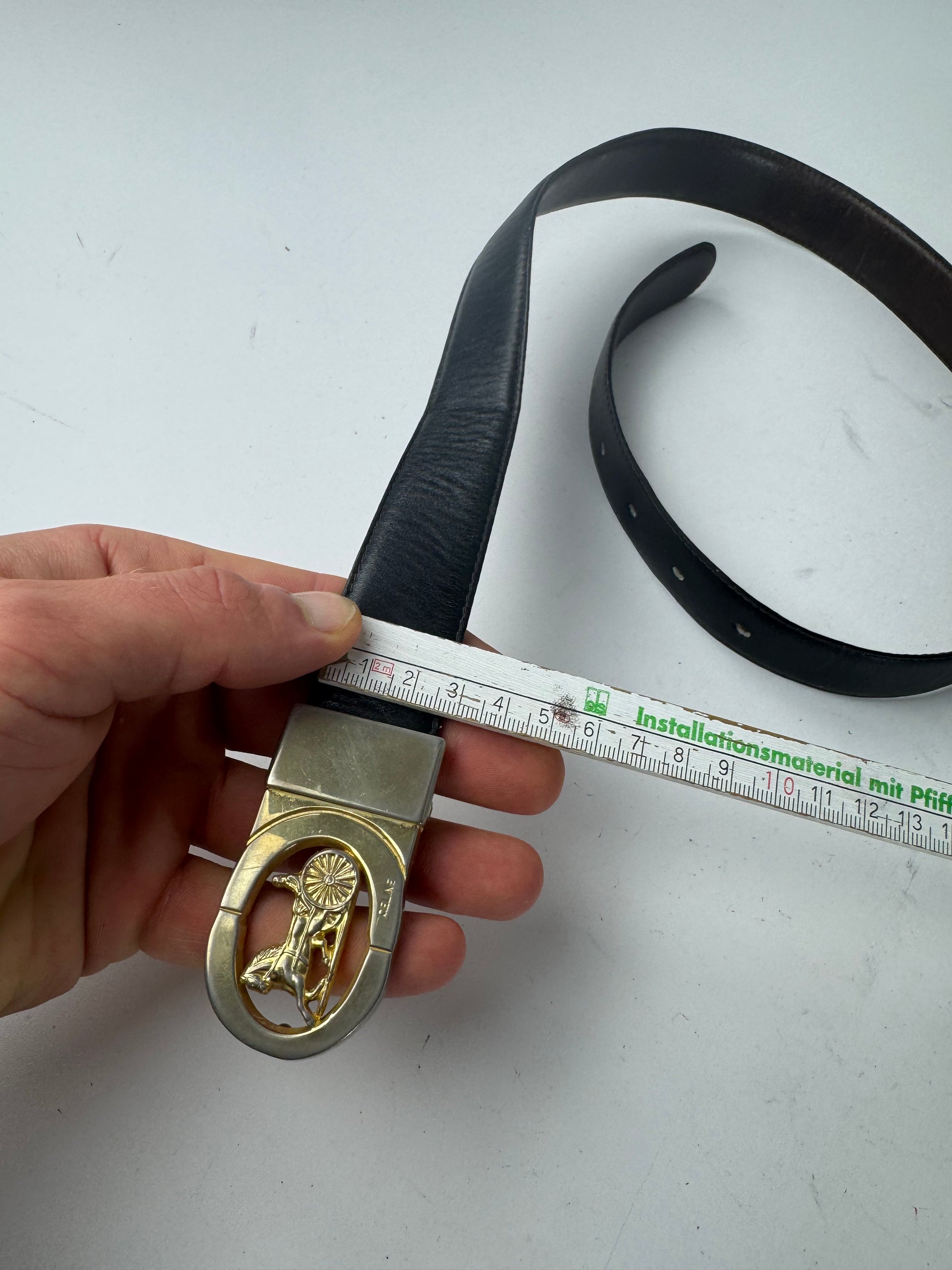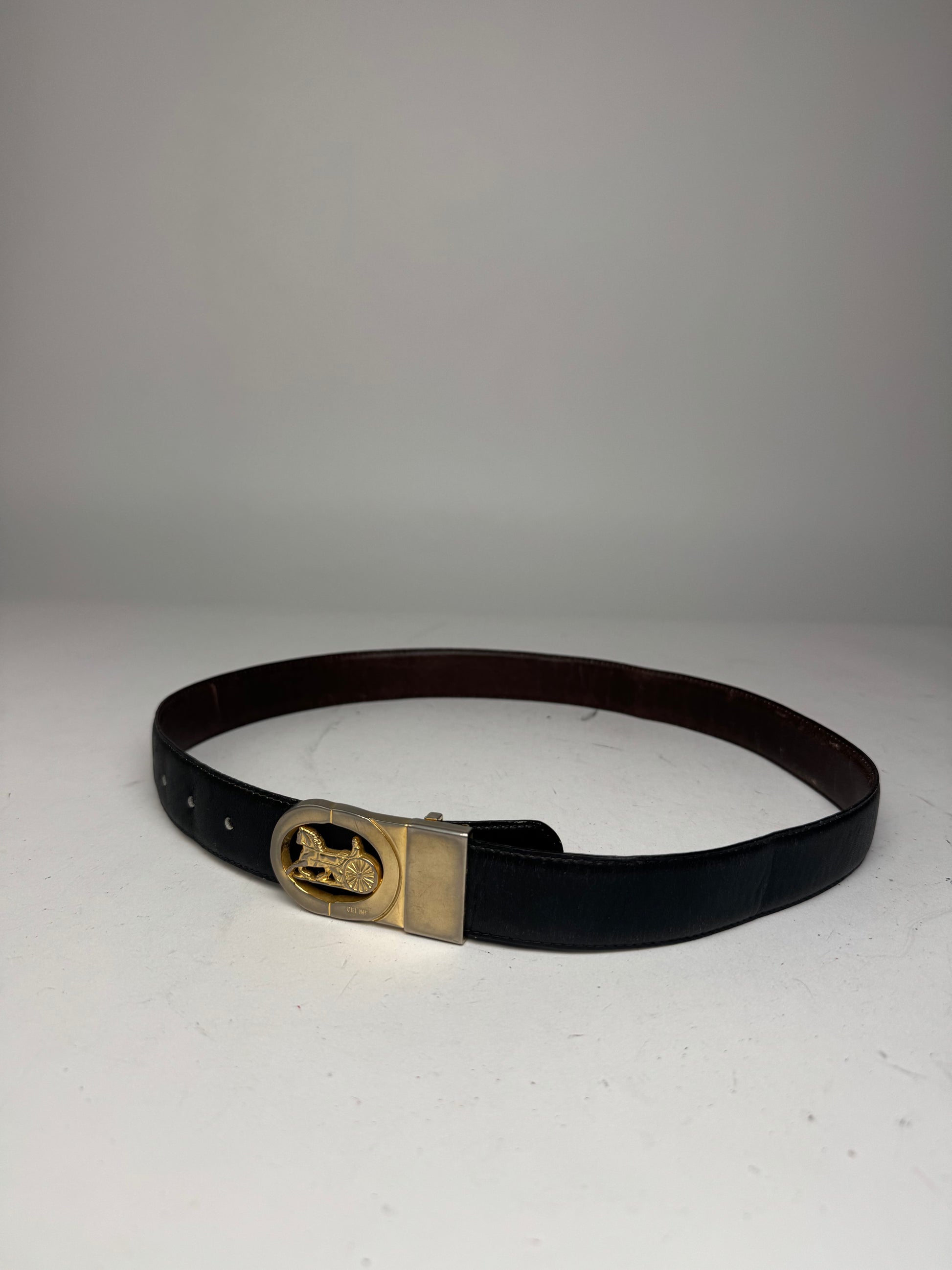 Vintage Celine Paris Carriage Logo Leather Belt black