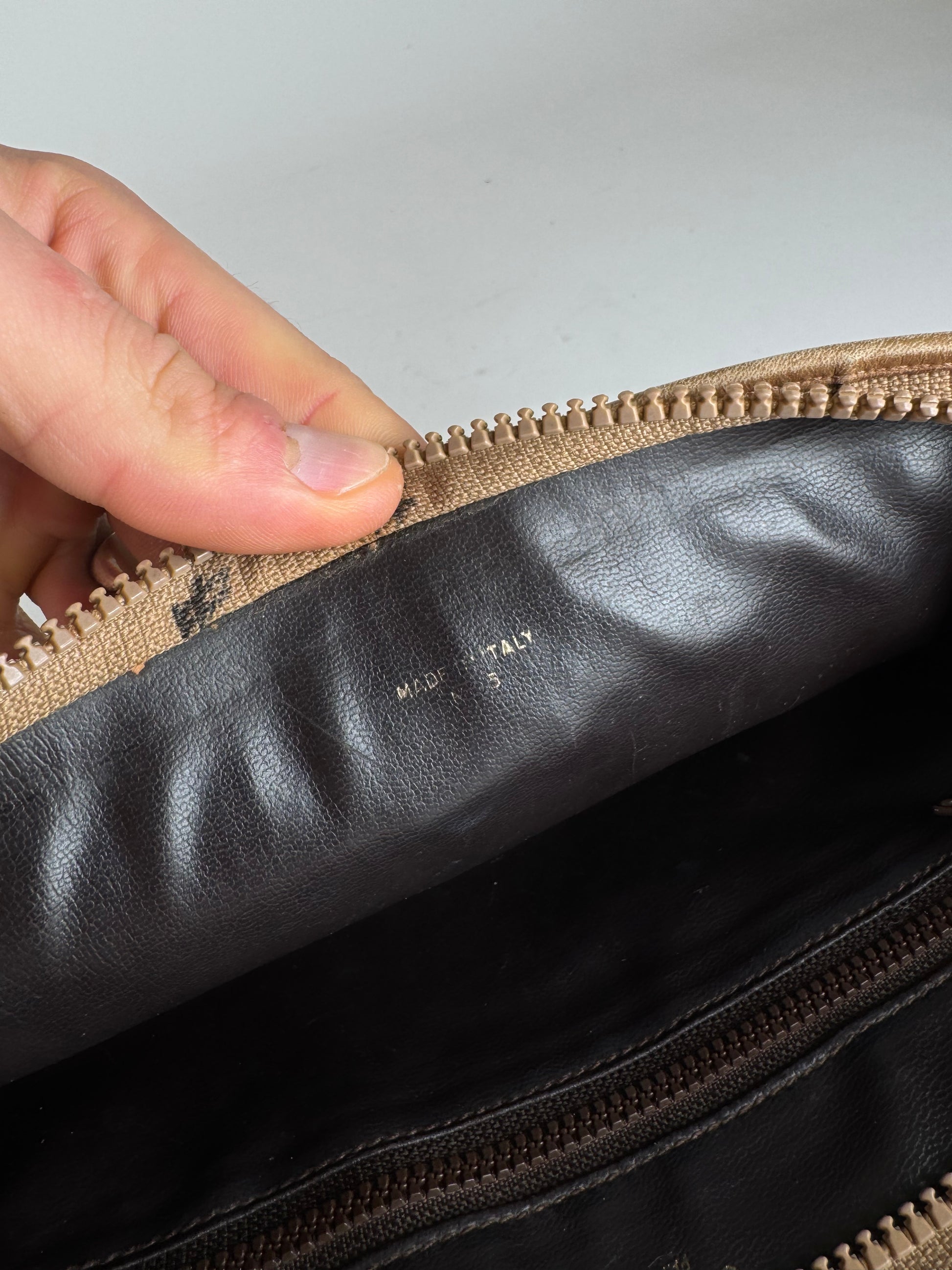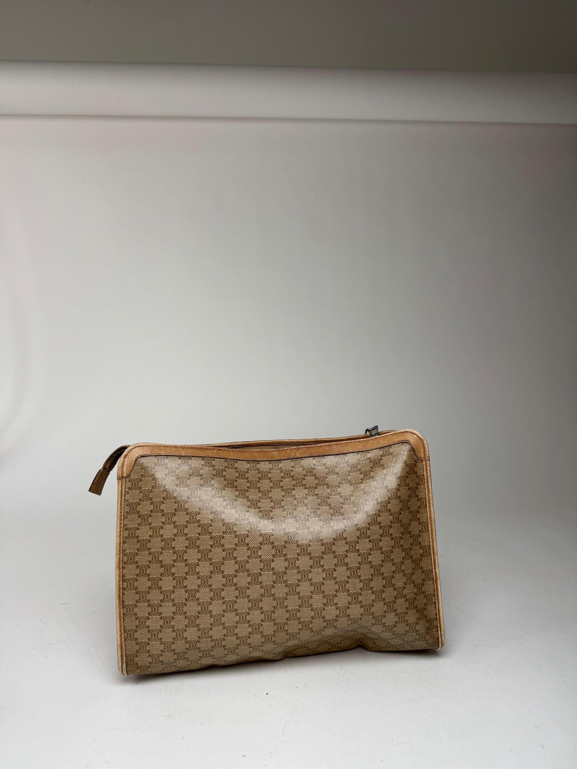 Vintage Celine Paris Leather monogram Clutch Brown beige