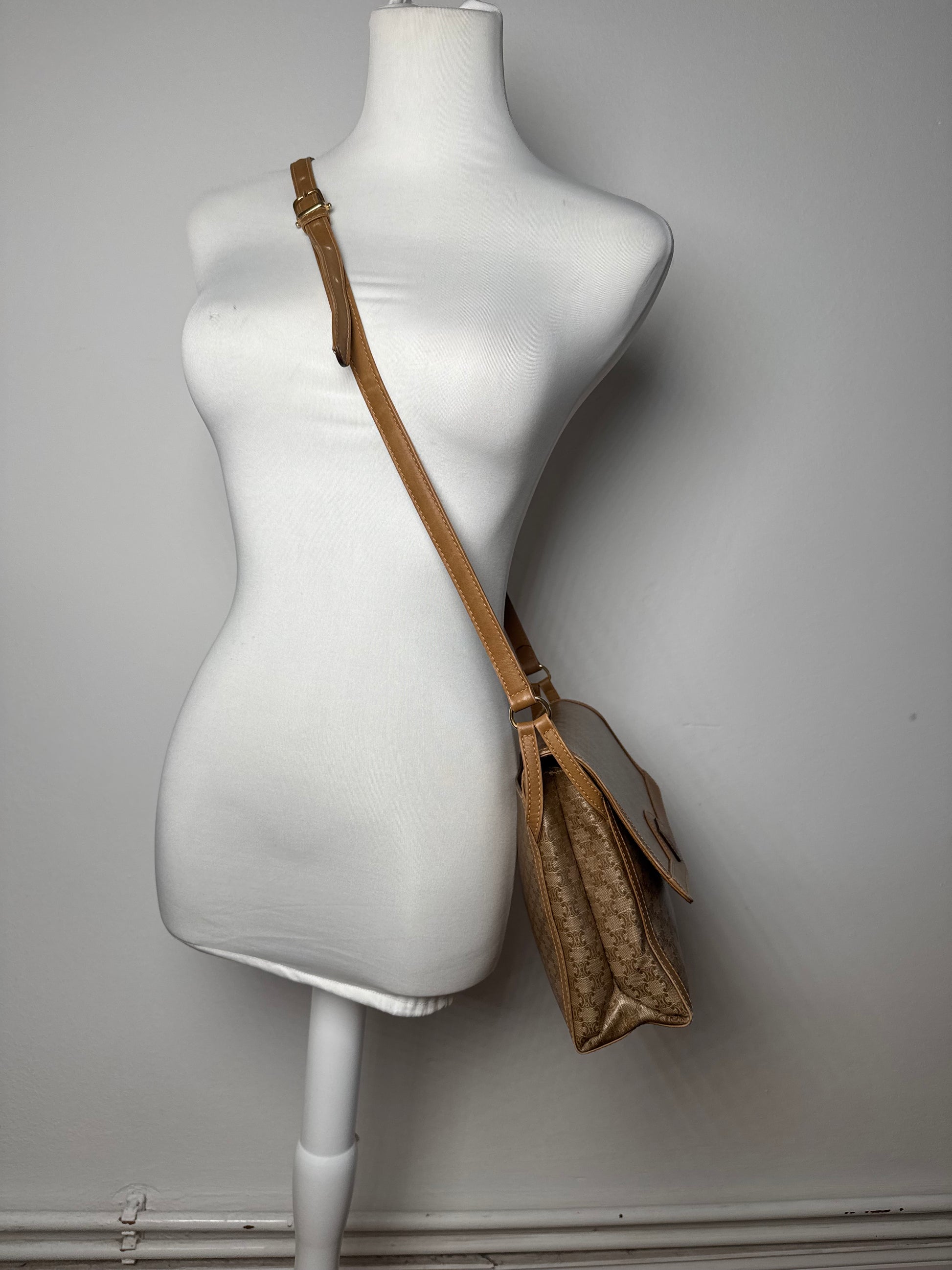 Vintage Celine Paris Monogram Leather shoulder bag beige brown