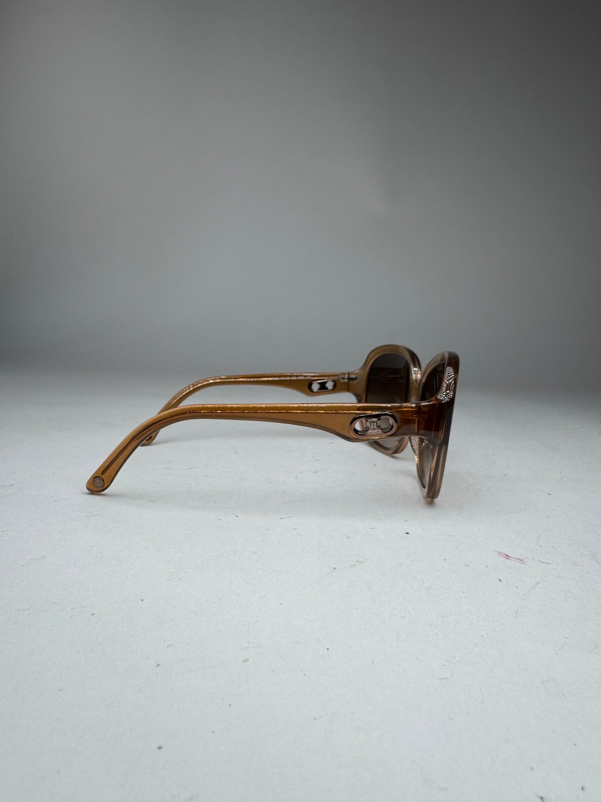 These stunning vintage oversized sunglasses from Celine are crafted from transparent brown acetate. The hardware is anthracite-colored steel, featuring the iconic Celine logo. Made in Italy, the lenses are darkly tinted to provide excellent UV protection. The sunglasses are in very good condition with some minor scratches. They are unisex and offer a bold, fashionable look.