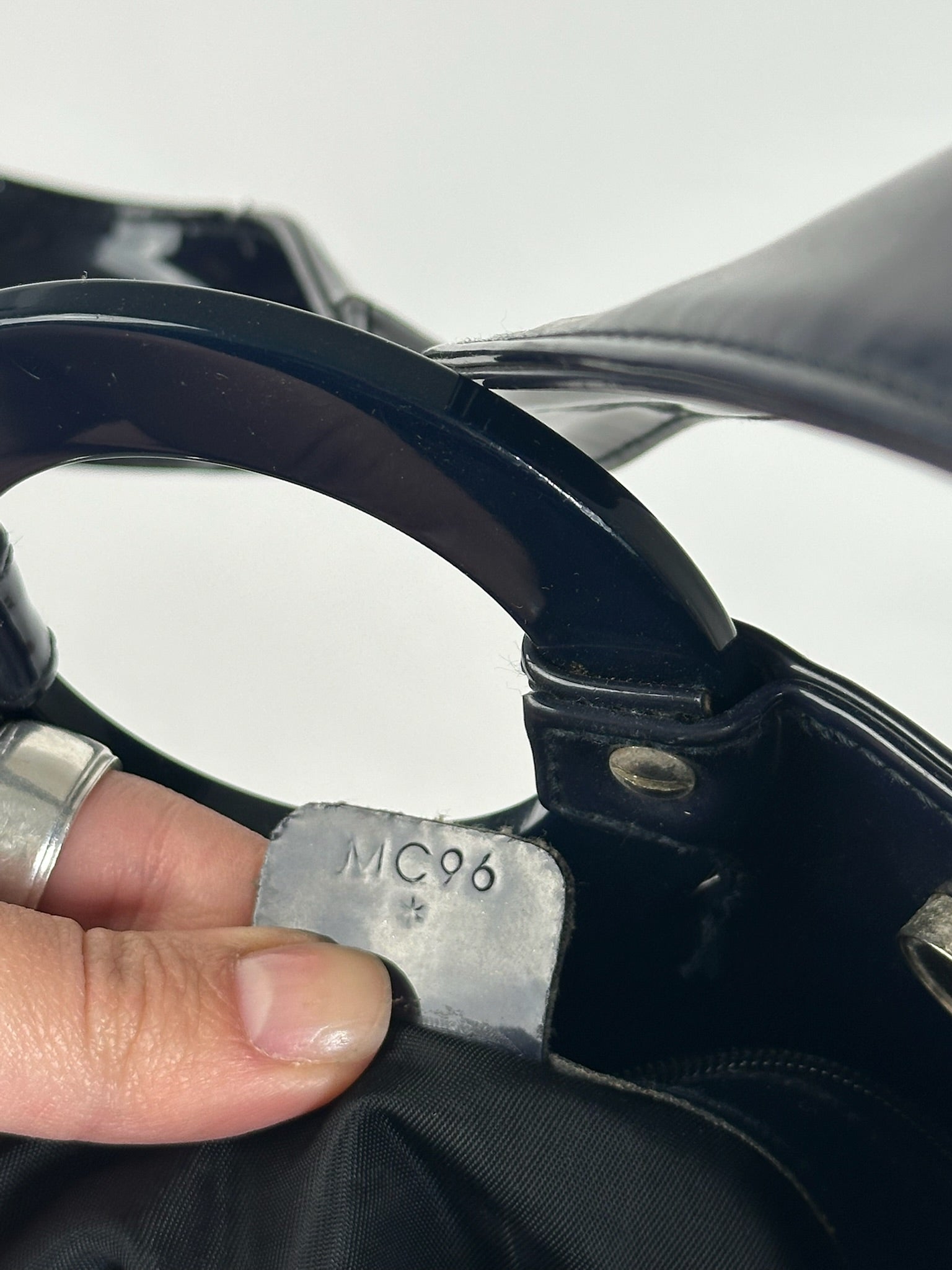 Vintage Celine Paris Patent Leather Ring bag navy