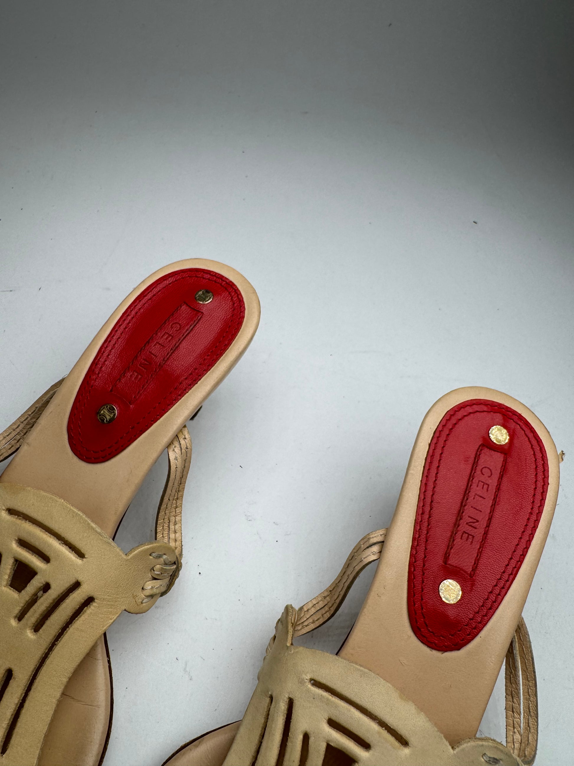 Vintage Celine Paris Triomphe Leather Pumps beige 37