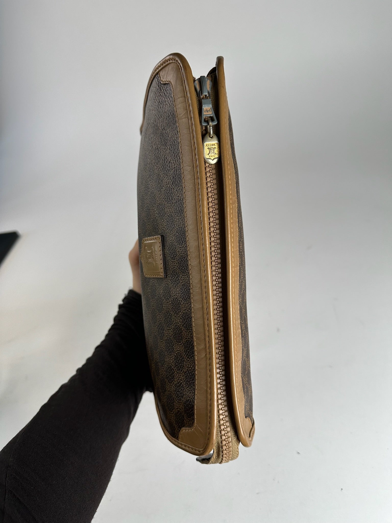 Vintage Celine Paris Triomphe monogram Leather clutch brown
