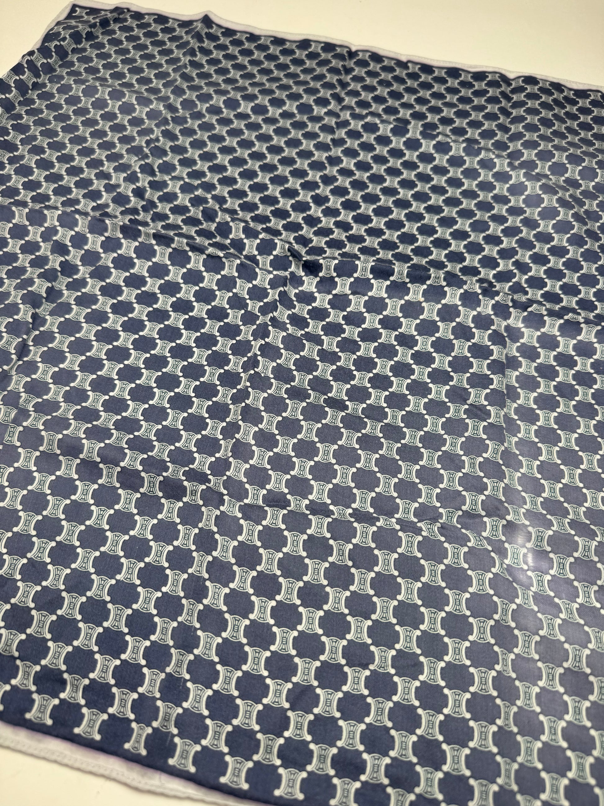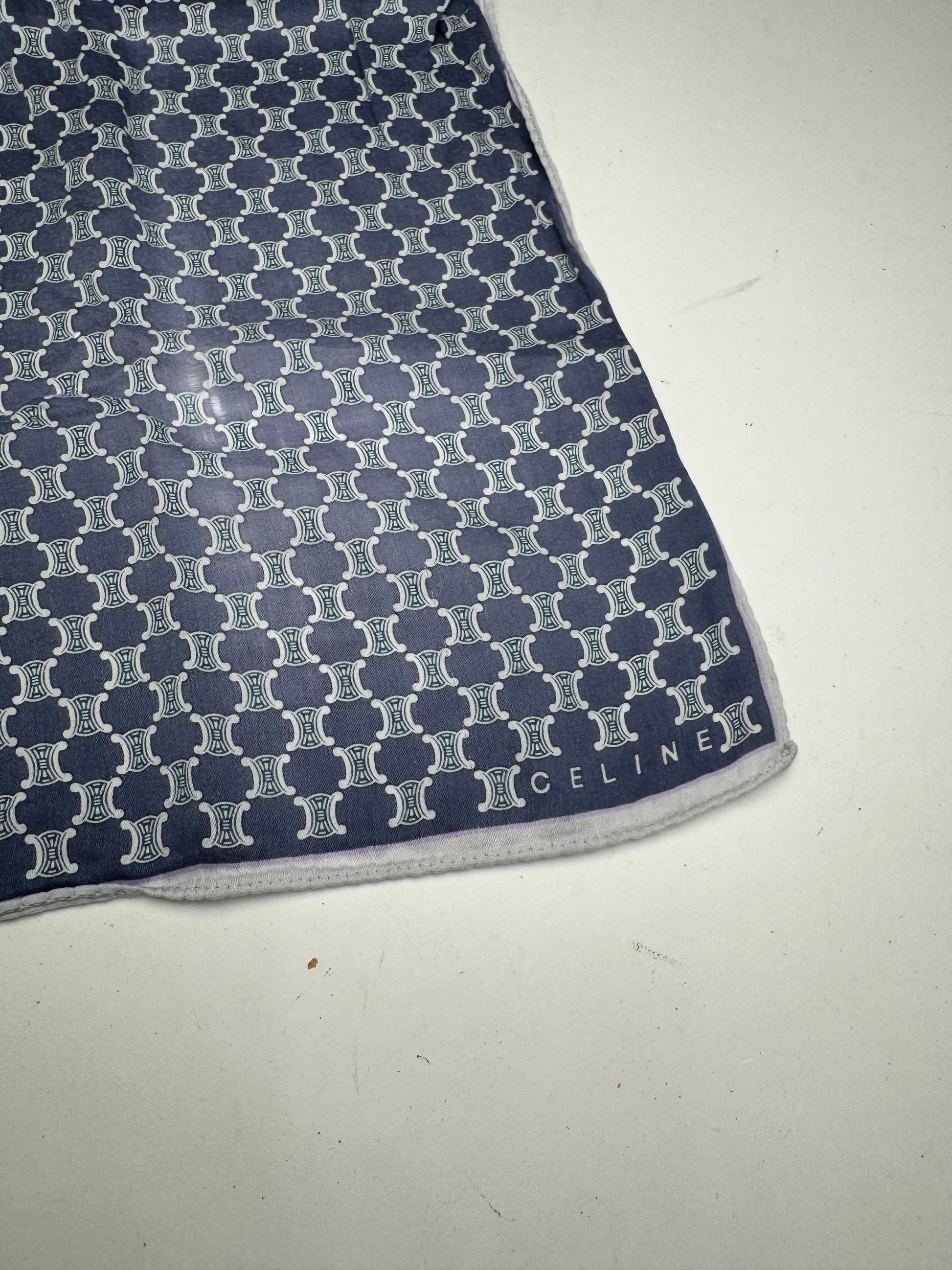 Vintage Celine Paris Triumphe monogram scarf navy white