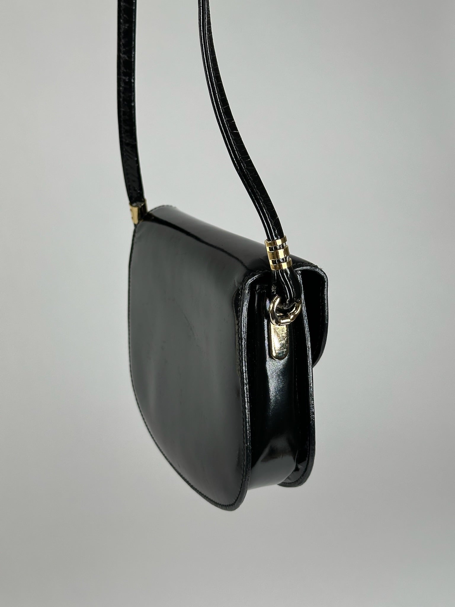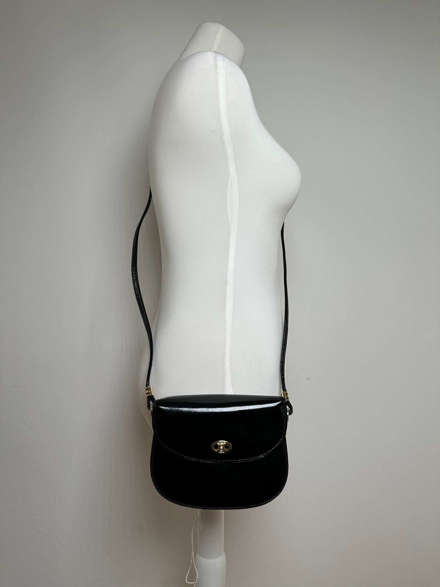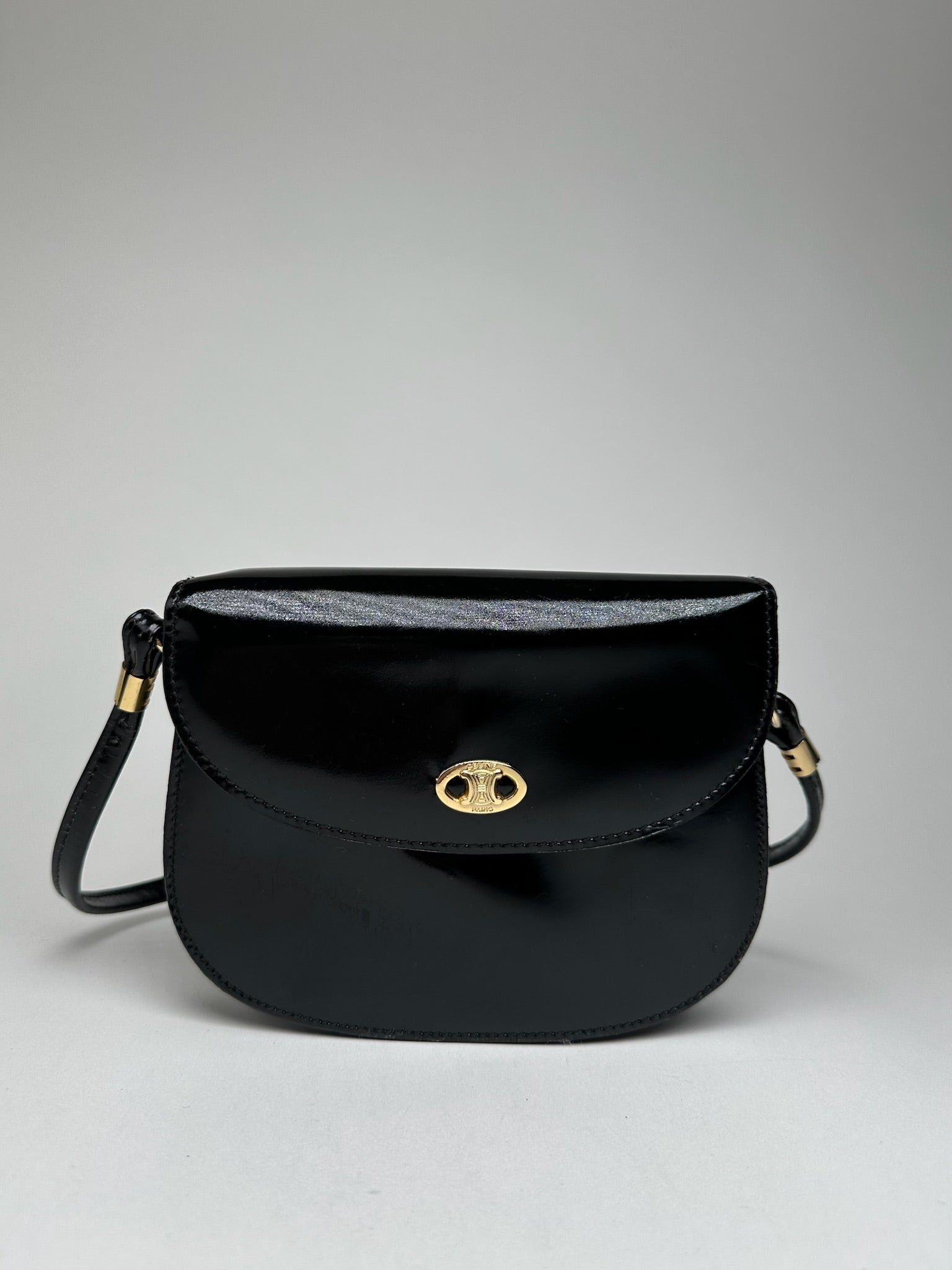 CELINE PARIS Triomphe Black Patent Leather Shoulder Bag