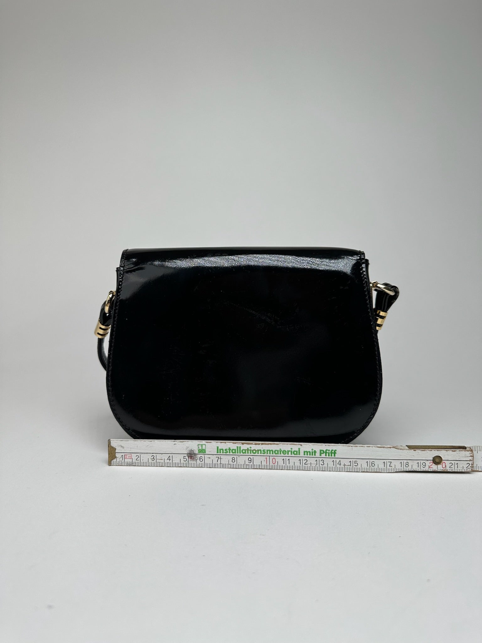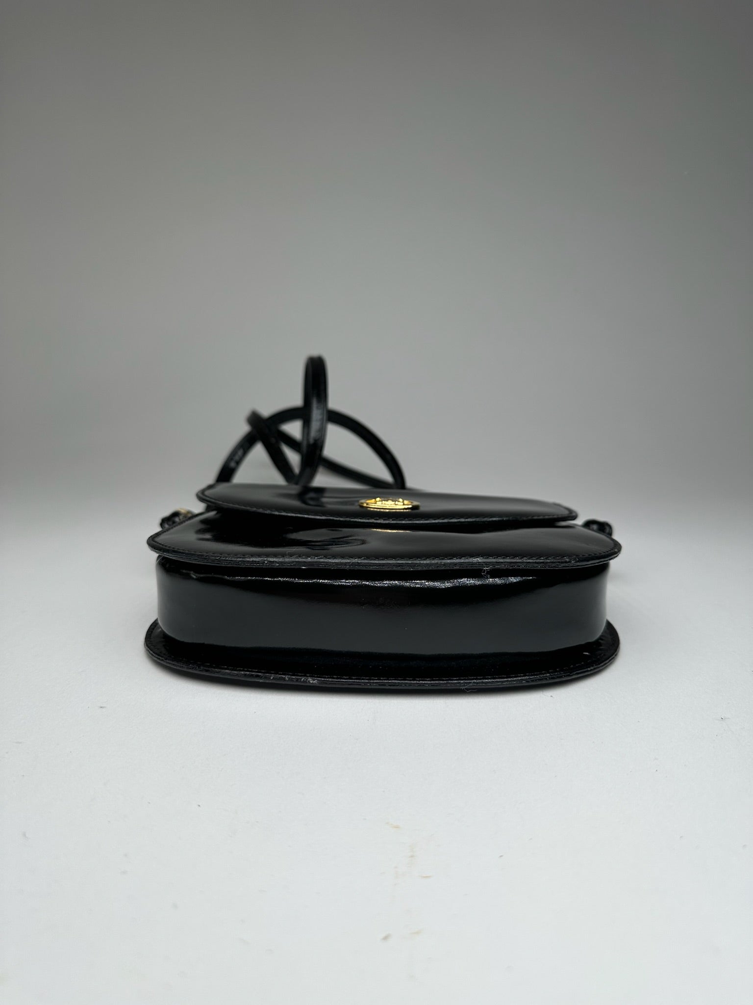 Condition Details: The exterior patent leather is in very good condition with some material damage. The shoulder strap is well-maintained. The hardware is bright and crisp with minor signs of wear.