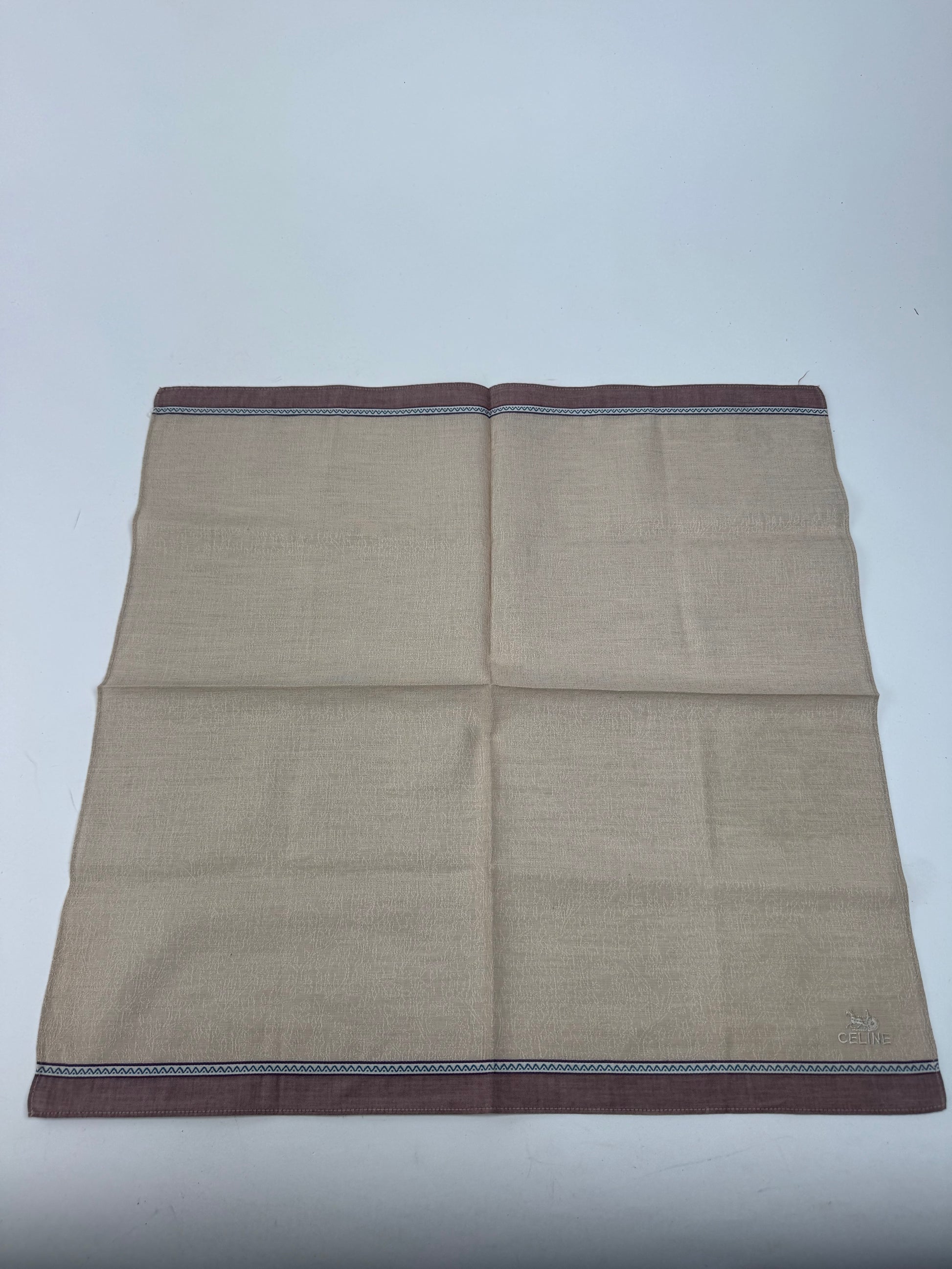 CÉLINE Vintage Beige Patterned Canvas Scarf with Coaching Logo.