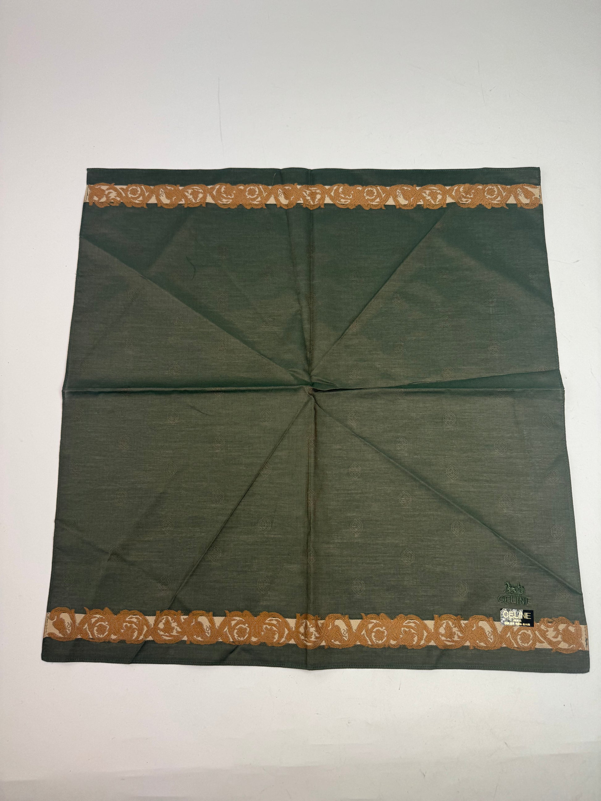 This chic accessory is finely crafted of brown canvas with a beige and brown baroque-style patterned border on the top and bottom. The scarf is adorned with iconic Céline logos throughout.