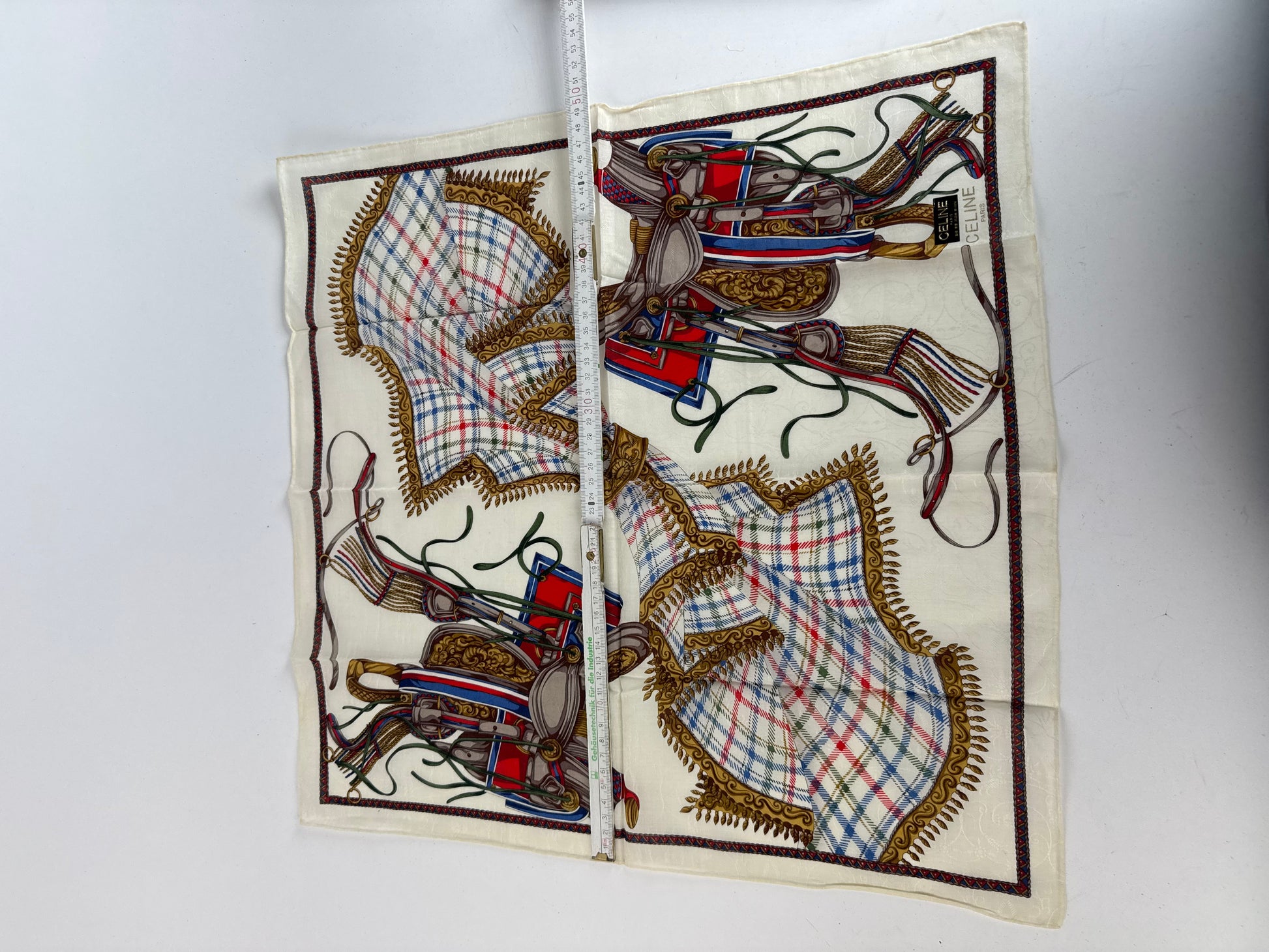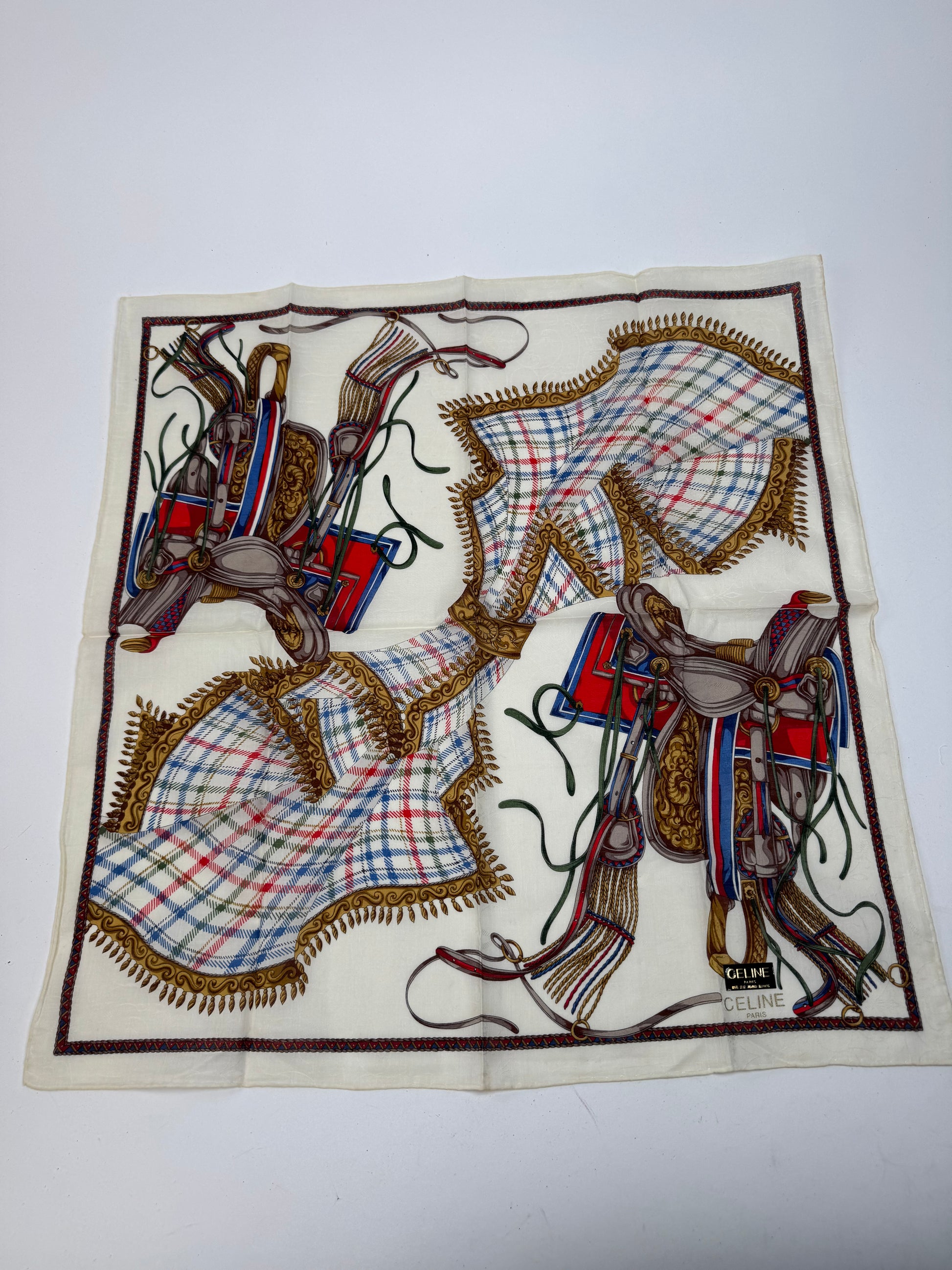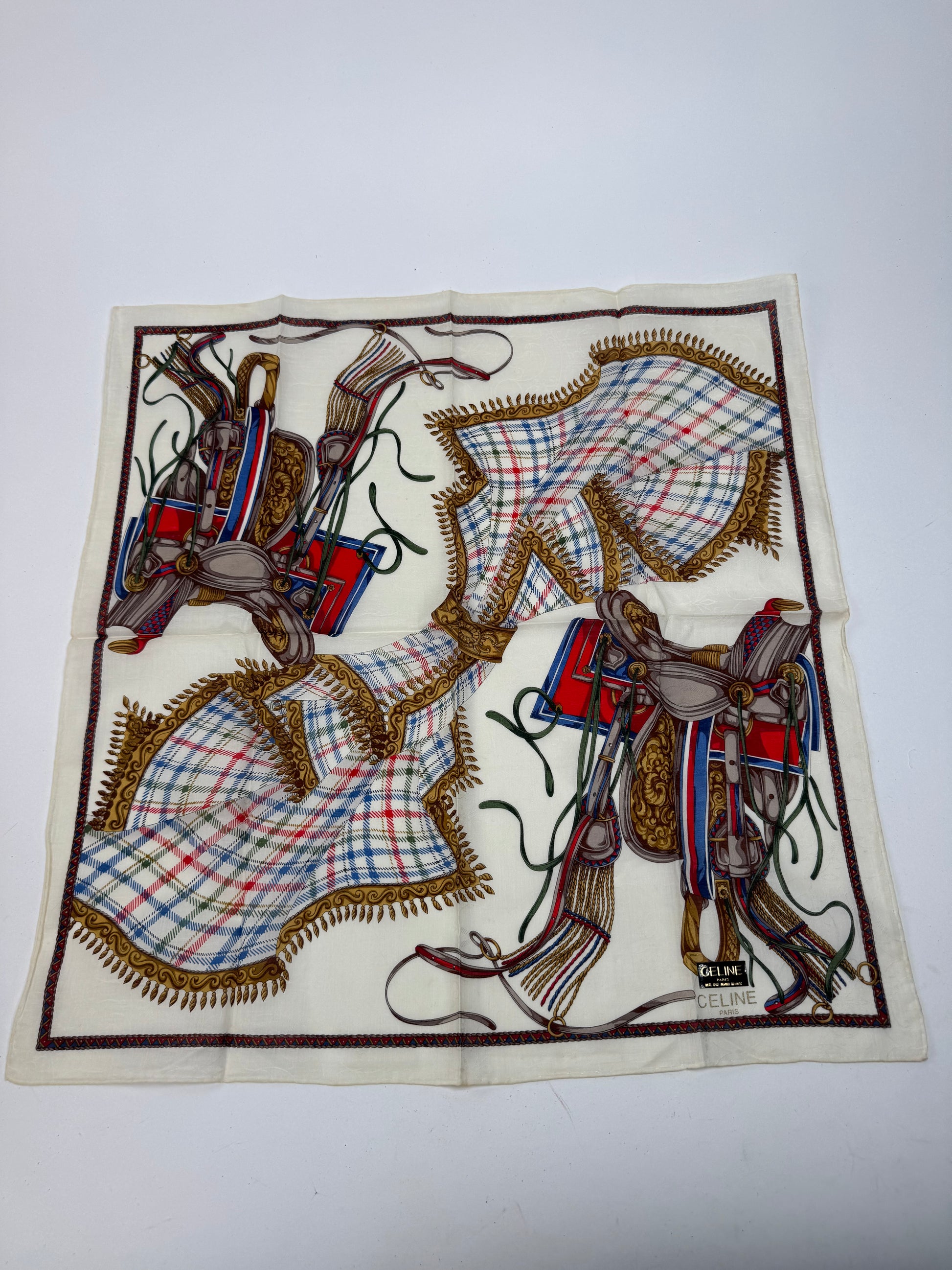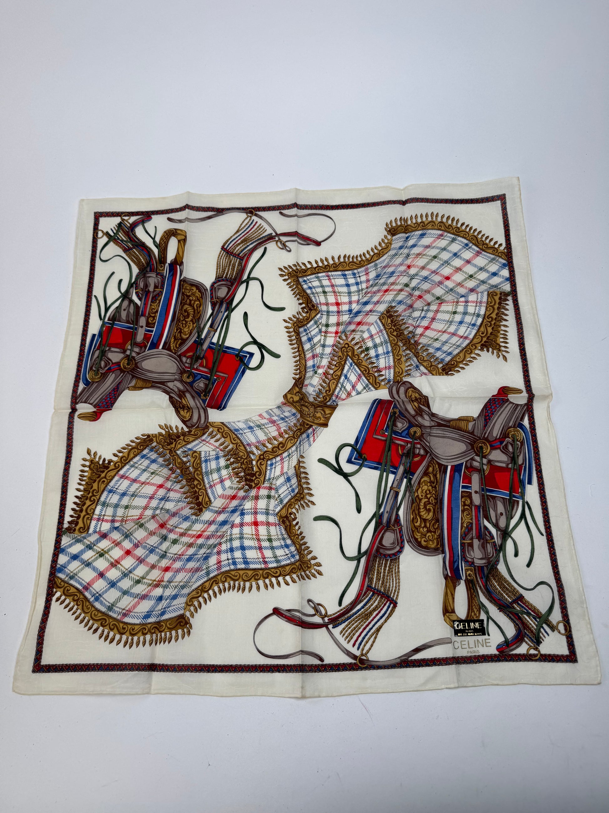 CÉLINE PARIS Vintage Saddle Print Silk Scarf.