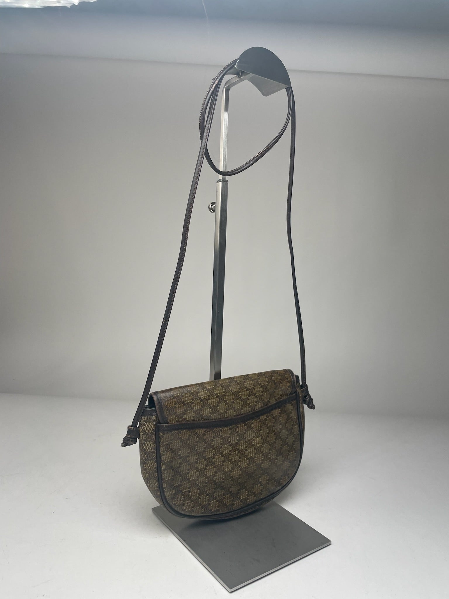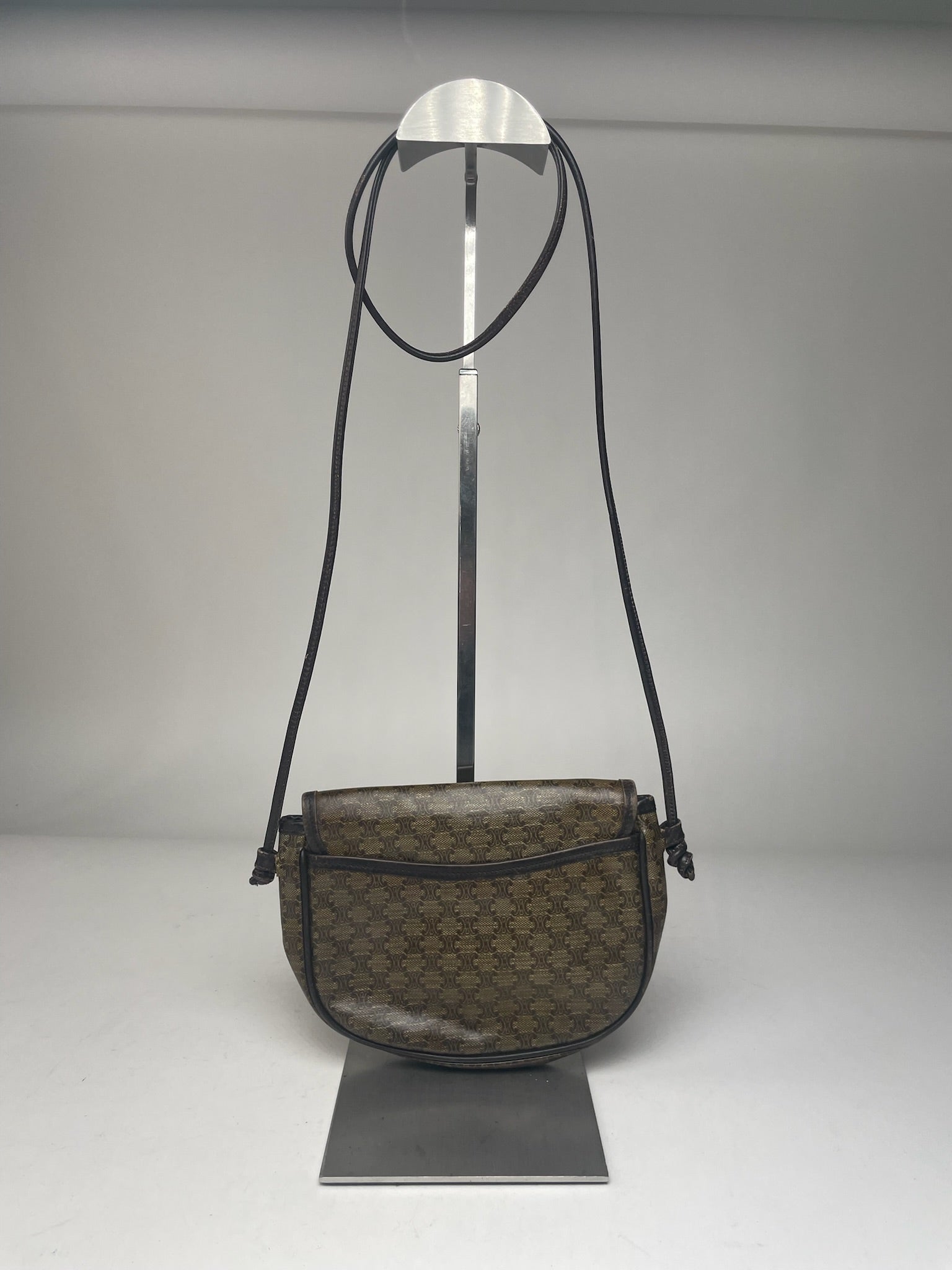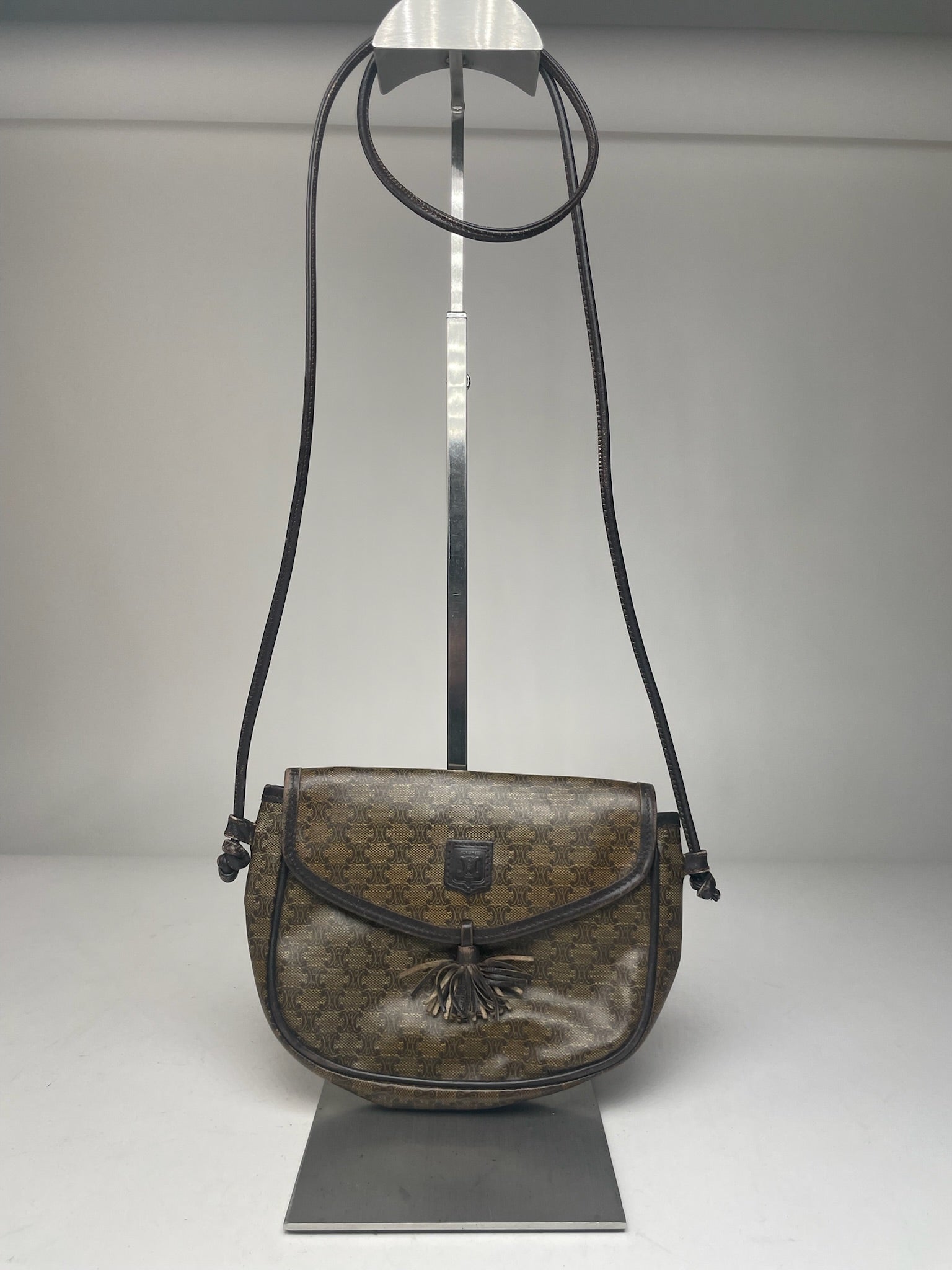 Vintage Celine Triomphe Crossbody leather Bag brown Green
