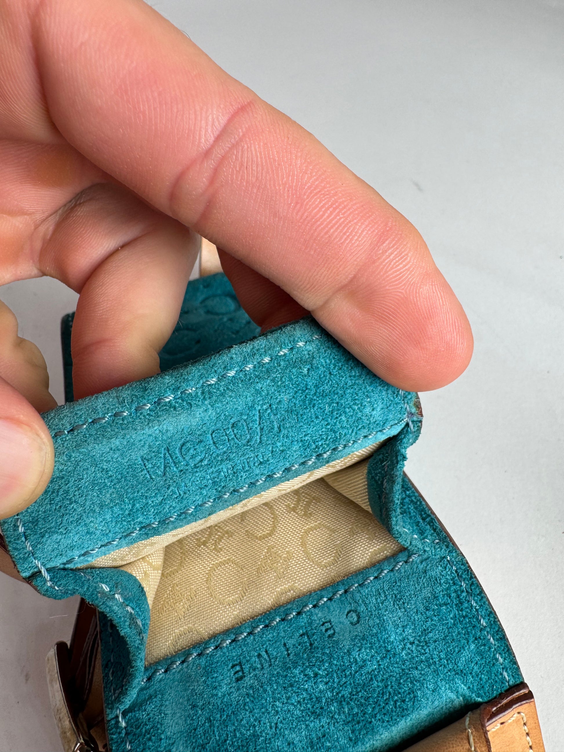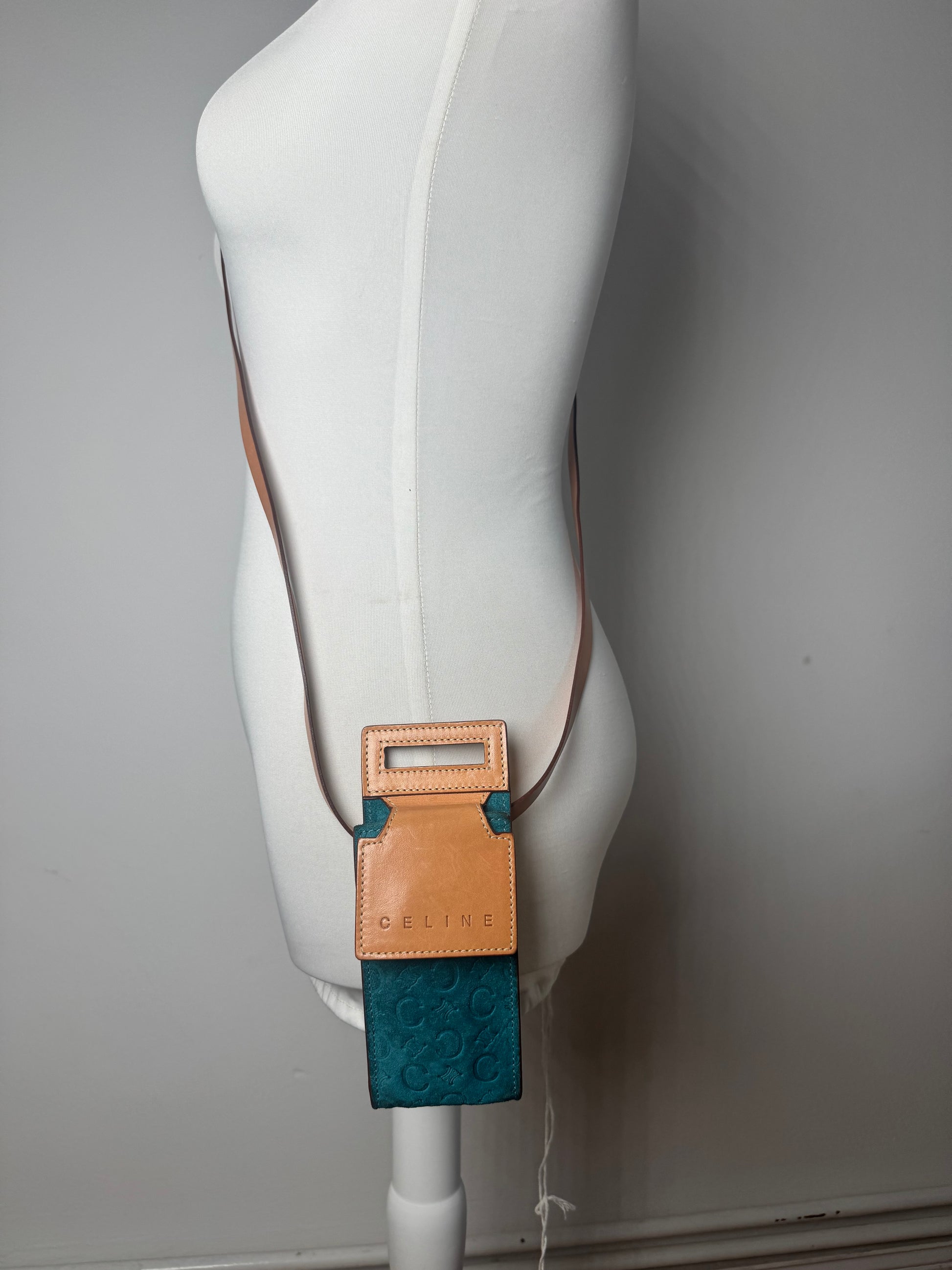 Vintage Celine Velour Leather Crossbody Bag Blue Brown