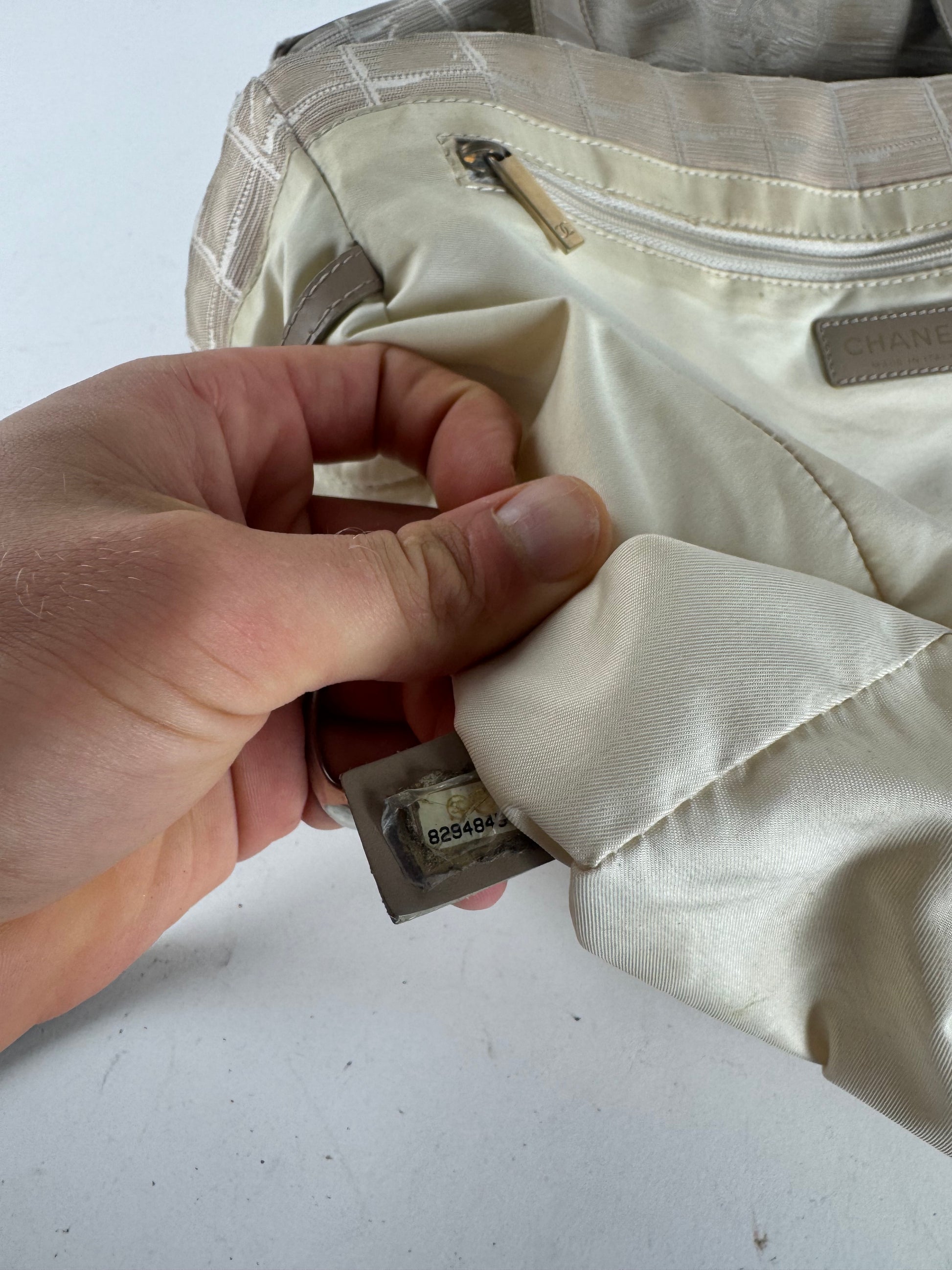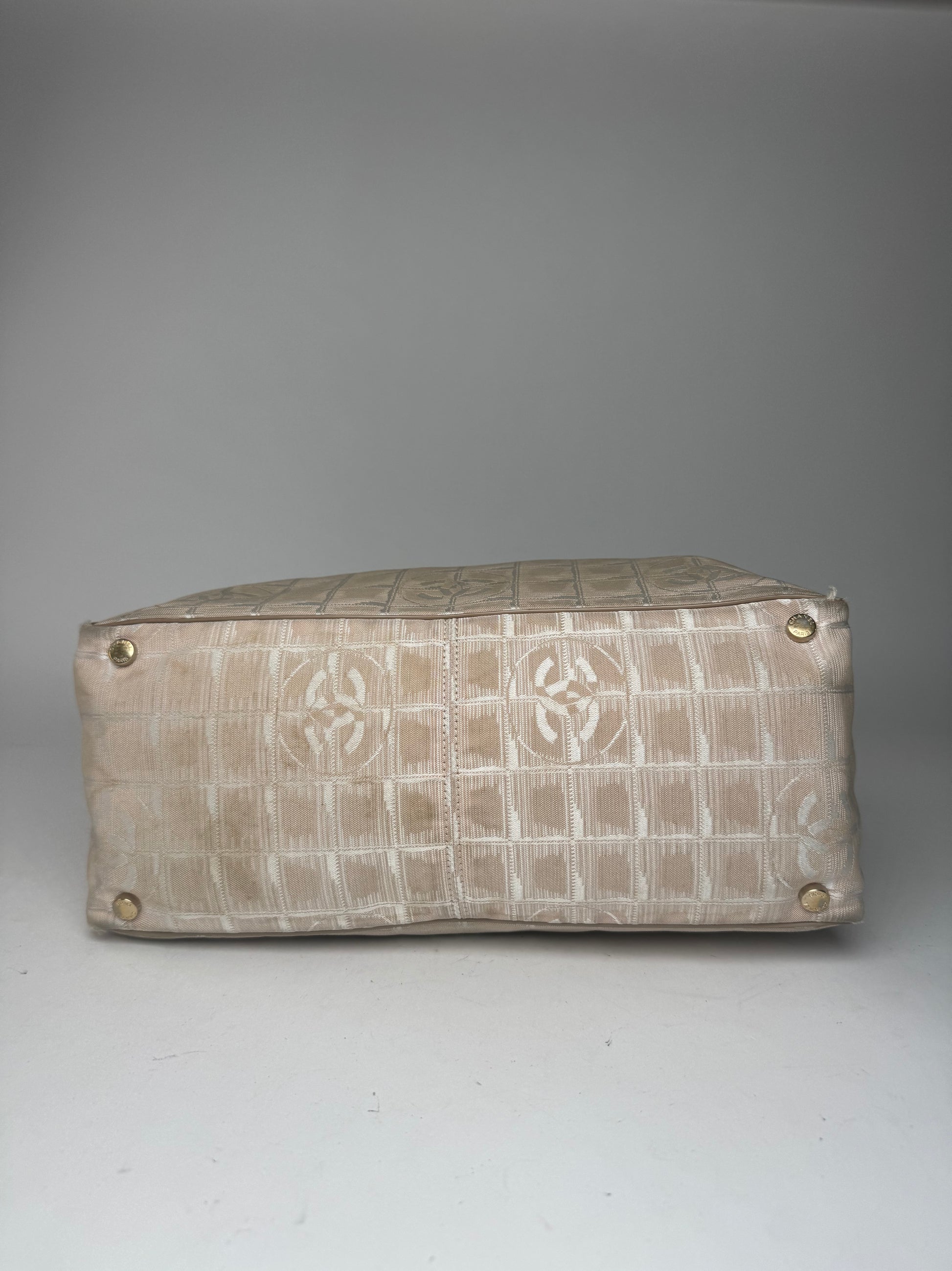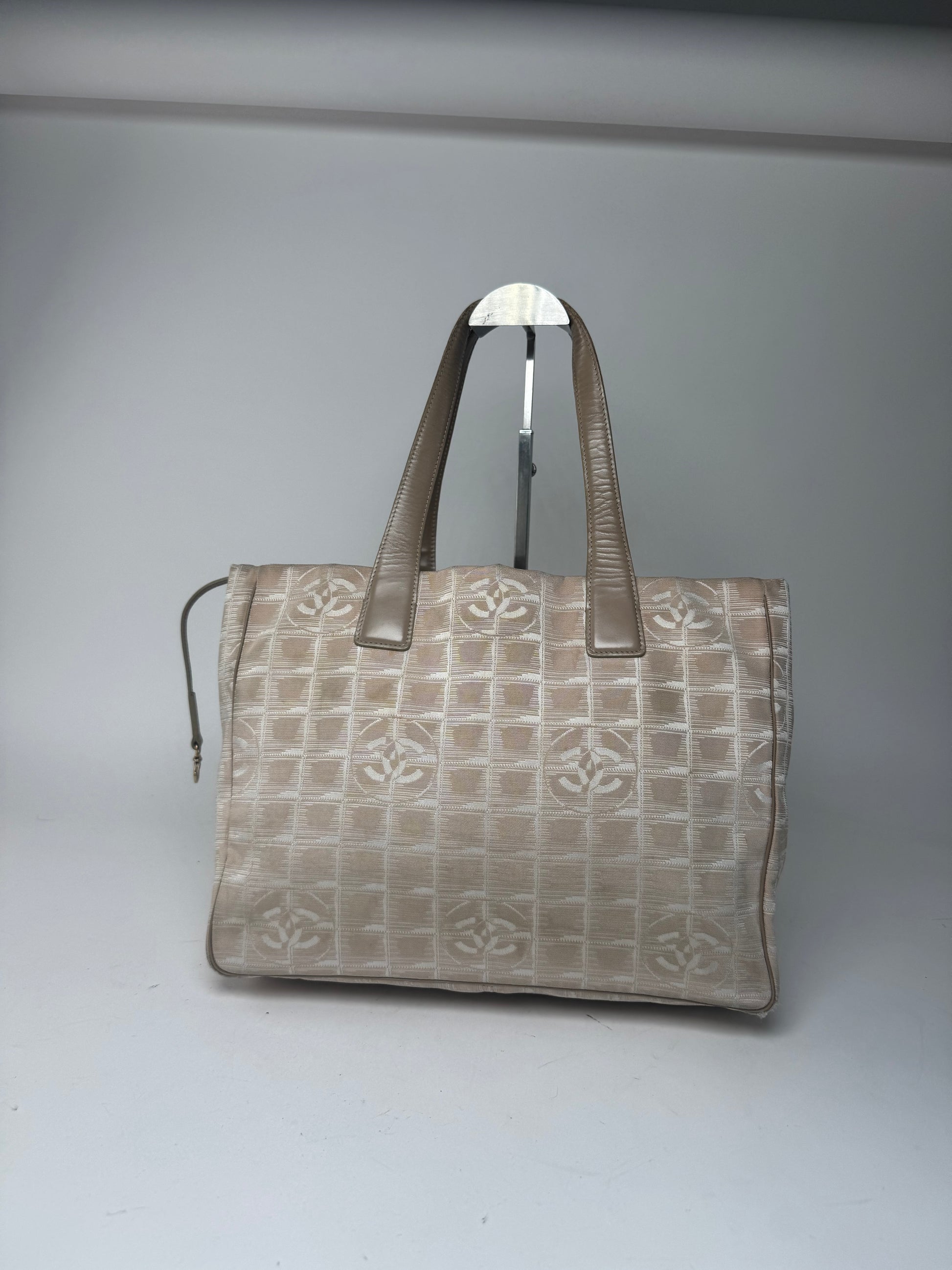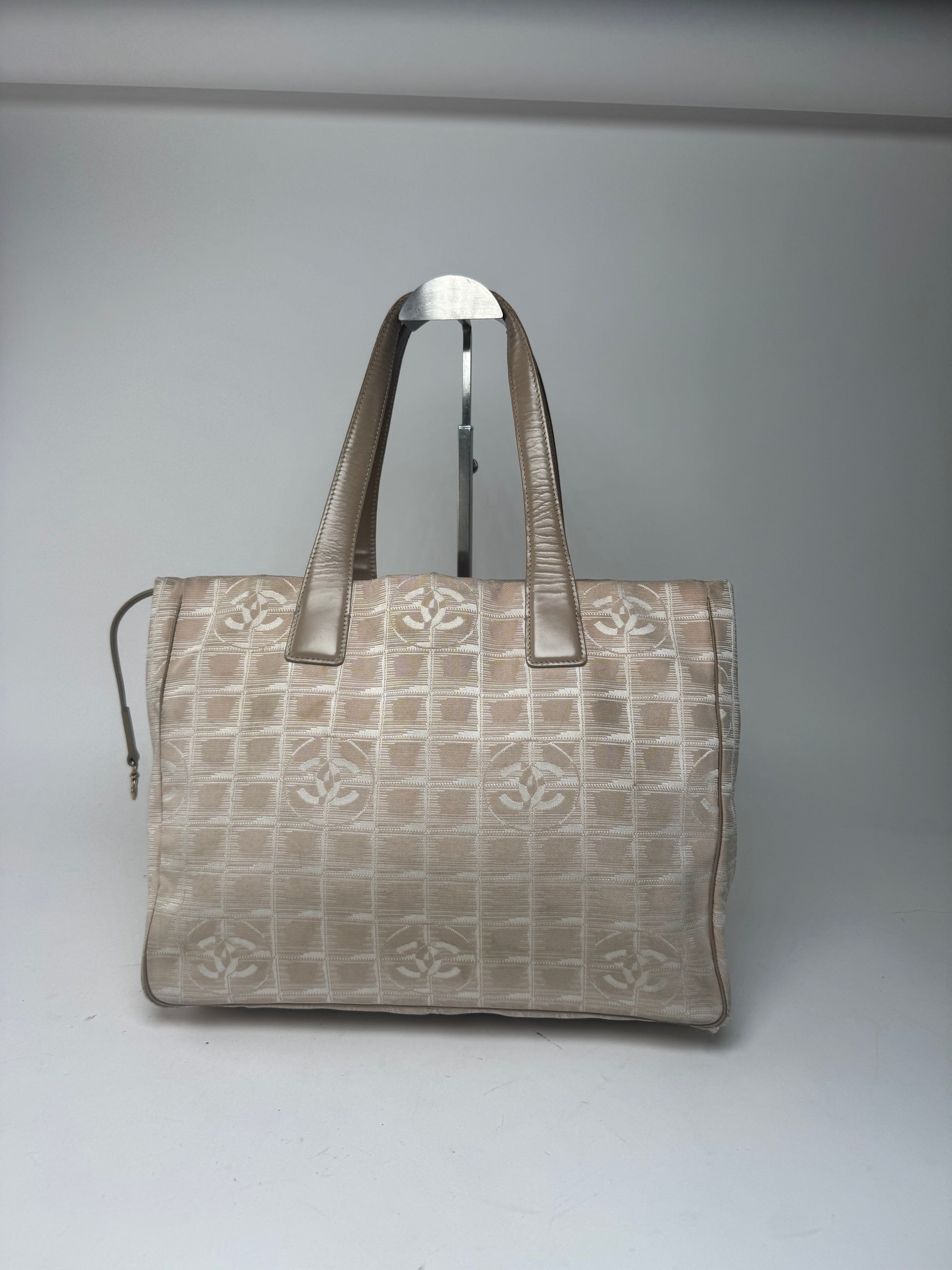 Vintage Chanel Canvas Leather New Travel Line Tote Bag beige