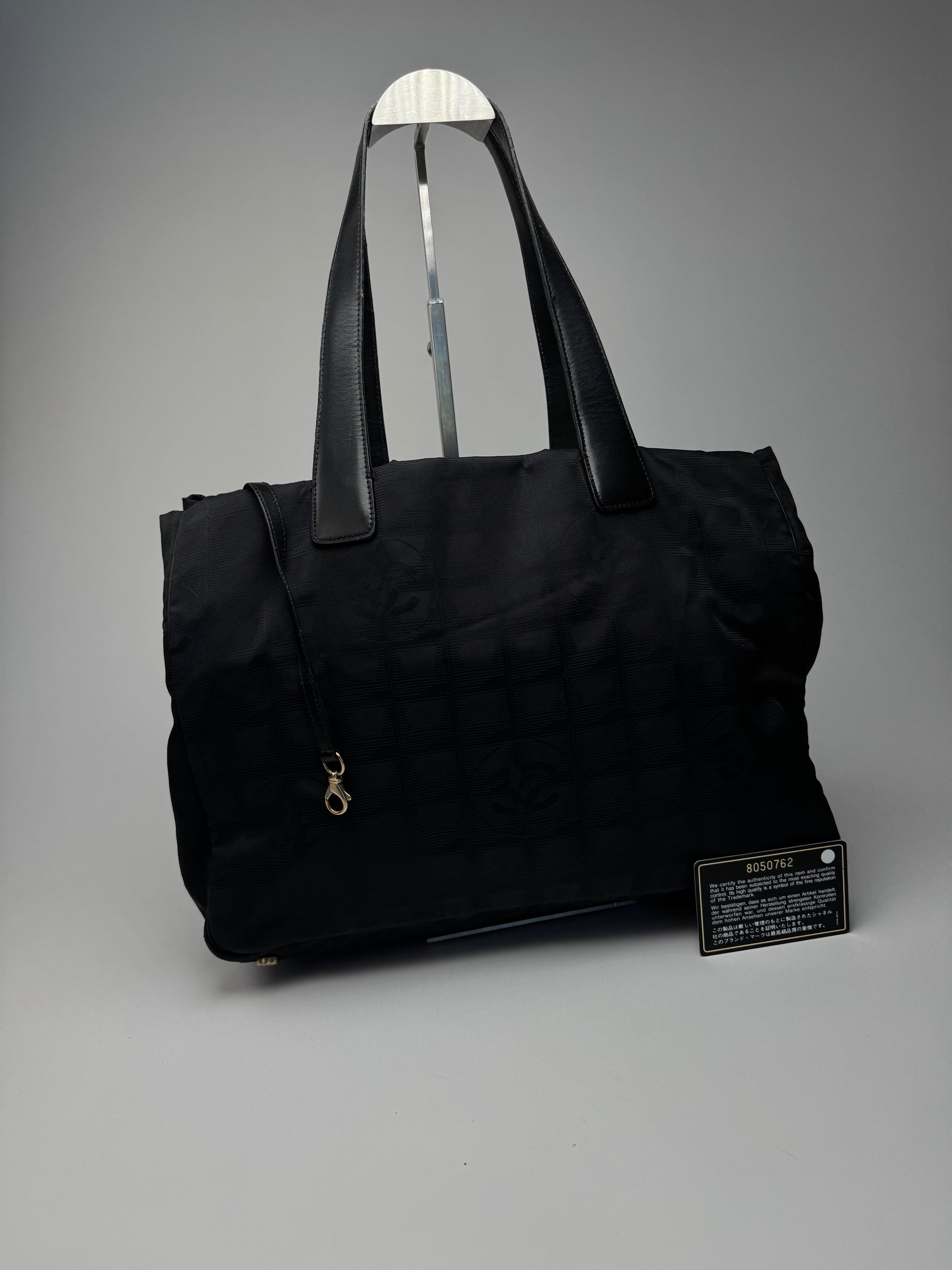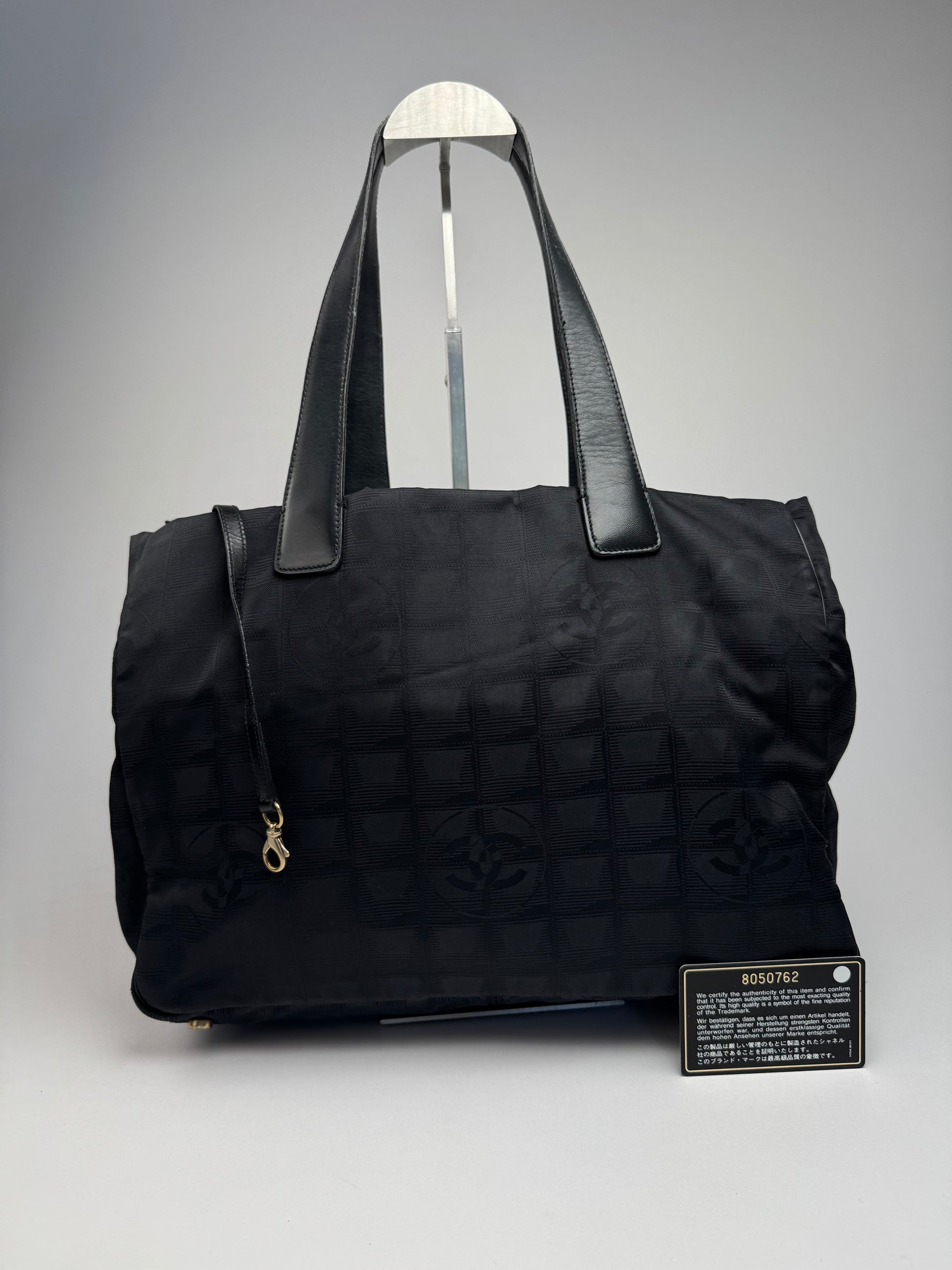 Details: The bag features golden steel hardware, black leather handles, and comes with the Chanel authentication card.