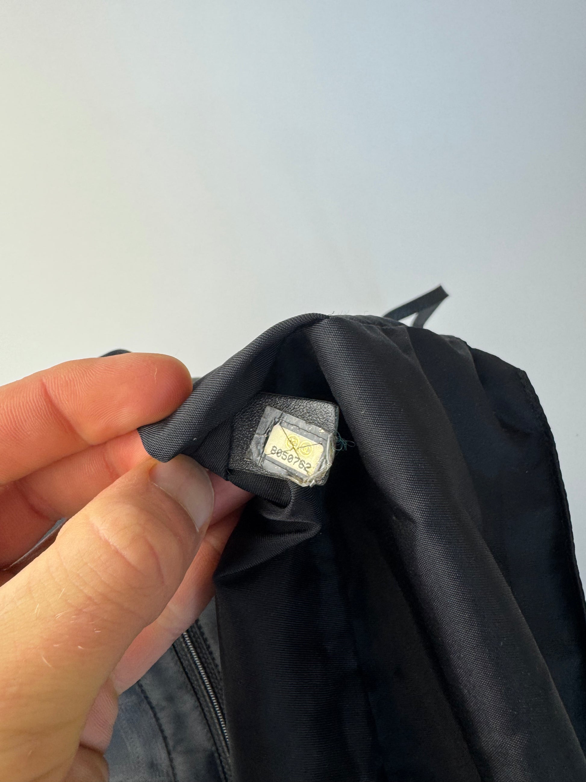 Condition: Good condition with missing 3/4 of hardware appliqué and some material damage.