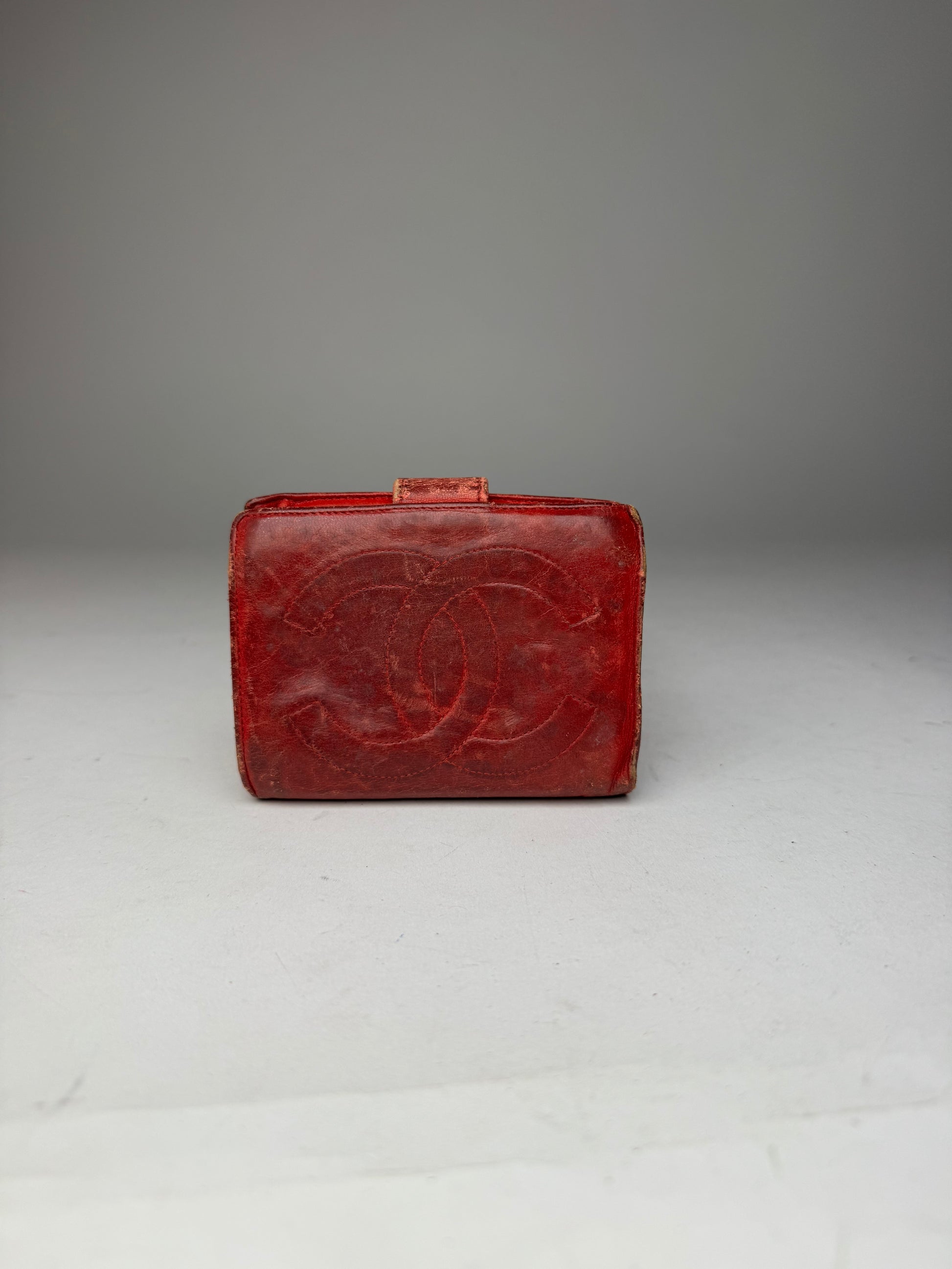Vintage Chanel CC Leather Wallet Red