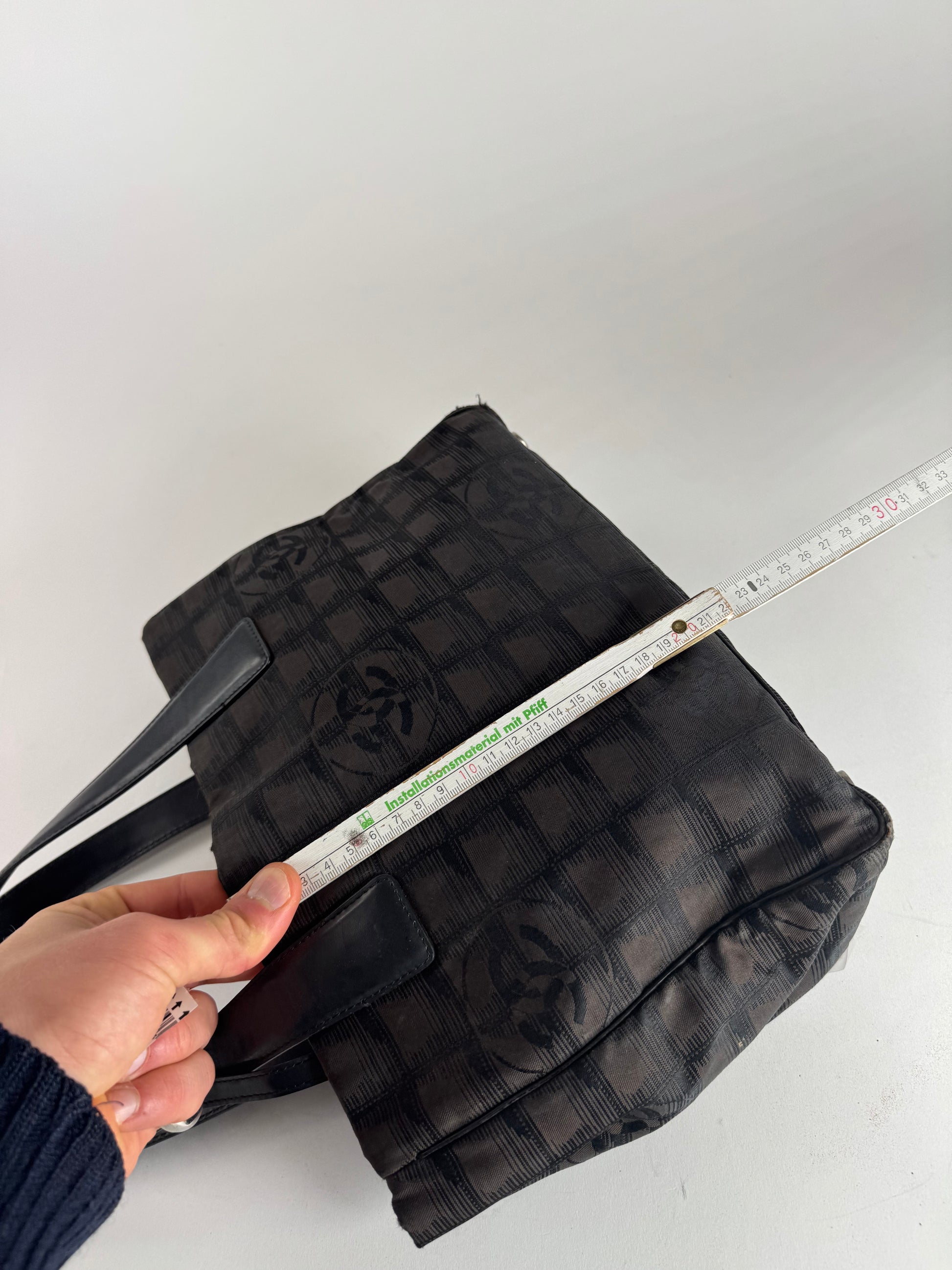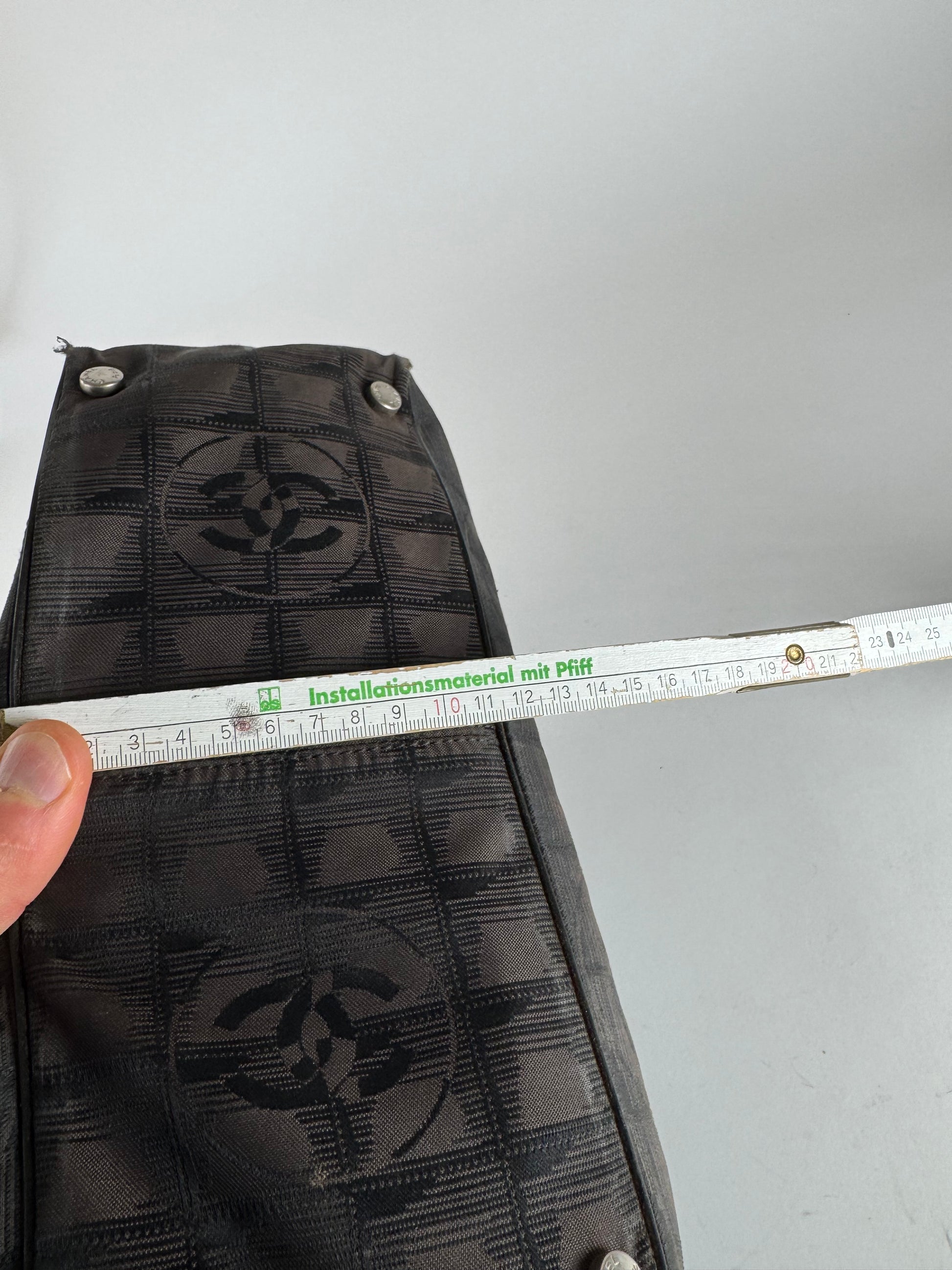 CHANEL Vintage Shopper Bag. This classic vintage shopper bag from Chanel is crafted from durable canvas featuring the iconic Chanel monogram. The design is complemented by sturdy black leather handles, adding a refined contrast. The interior is lined with black leather, enhancing the luxurious feel of the bag. Made in Italy, this timeless piece carries the serial number 9264319, ensuring its authenticity.