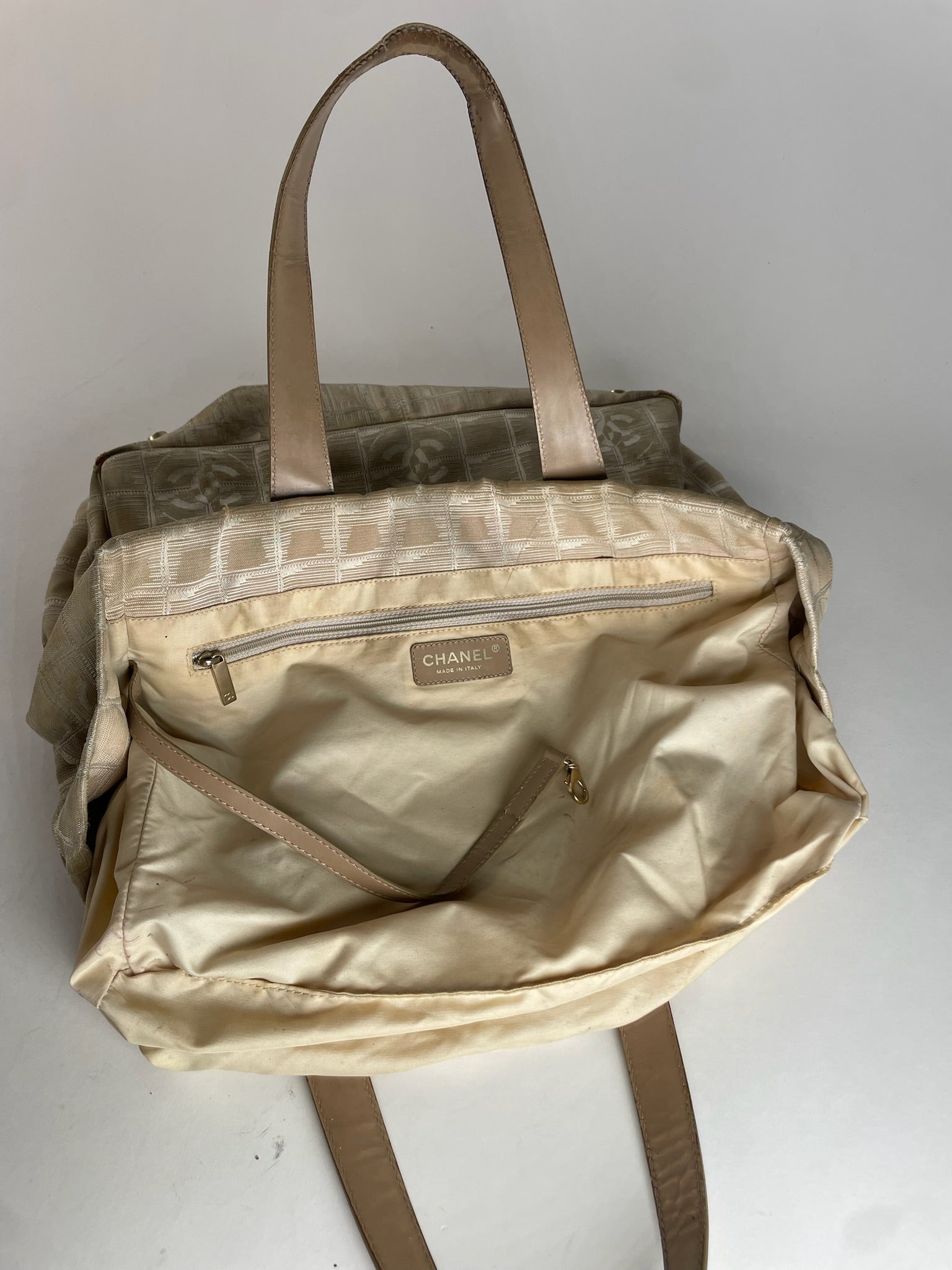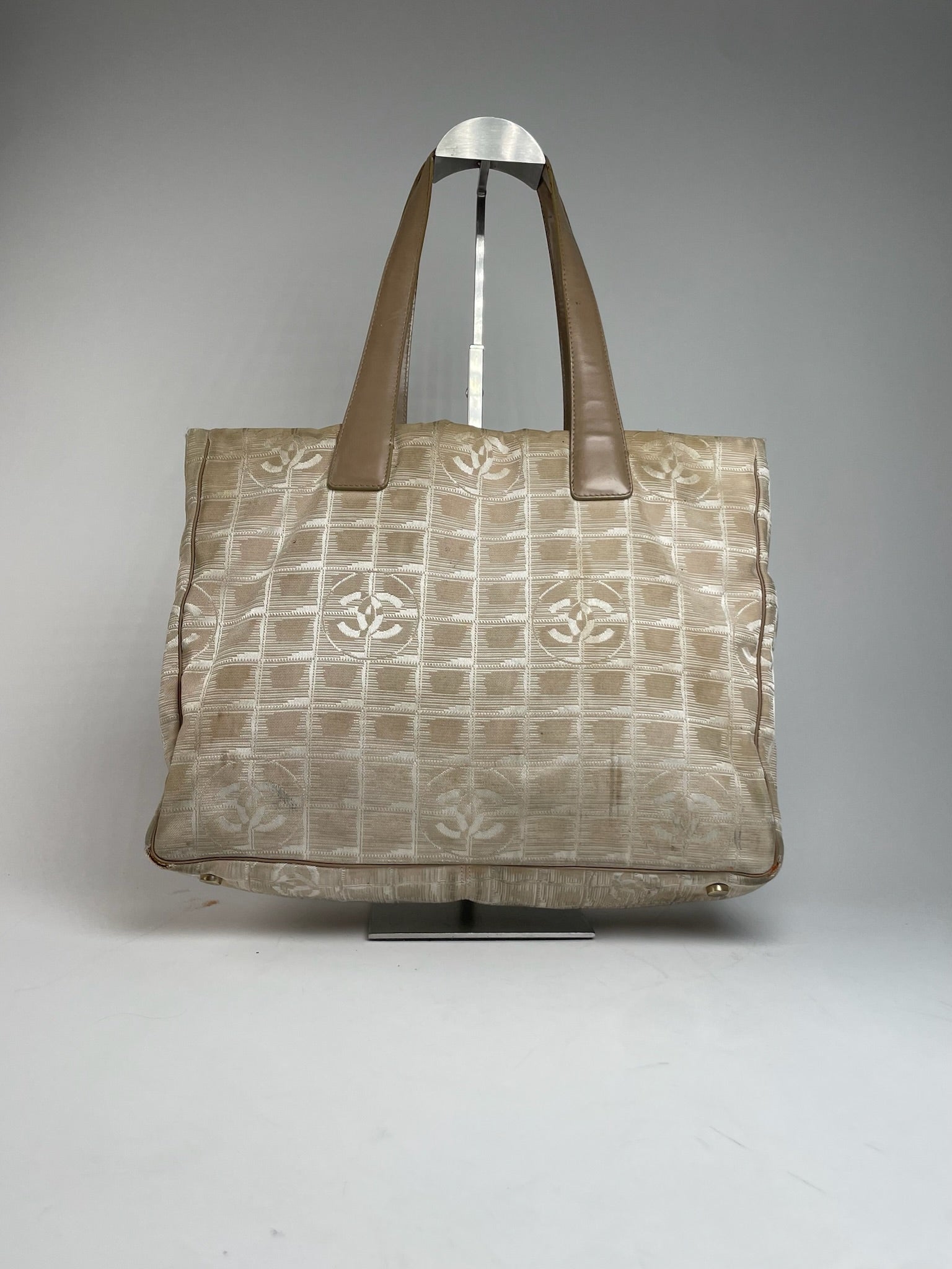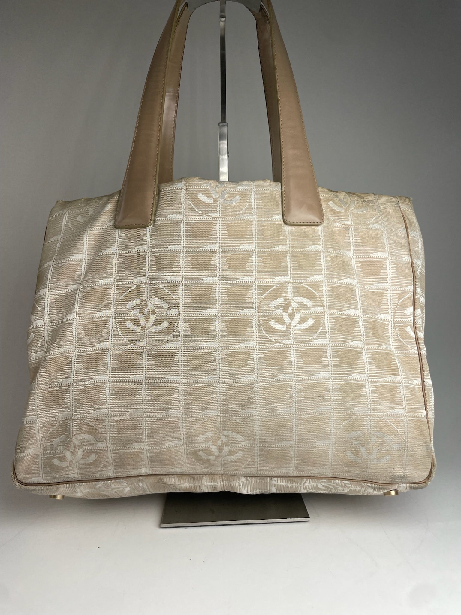Vintage Chanel New Travel Line Tote Bag Beige Brown