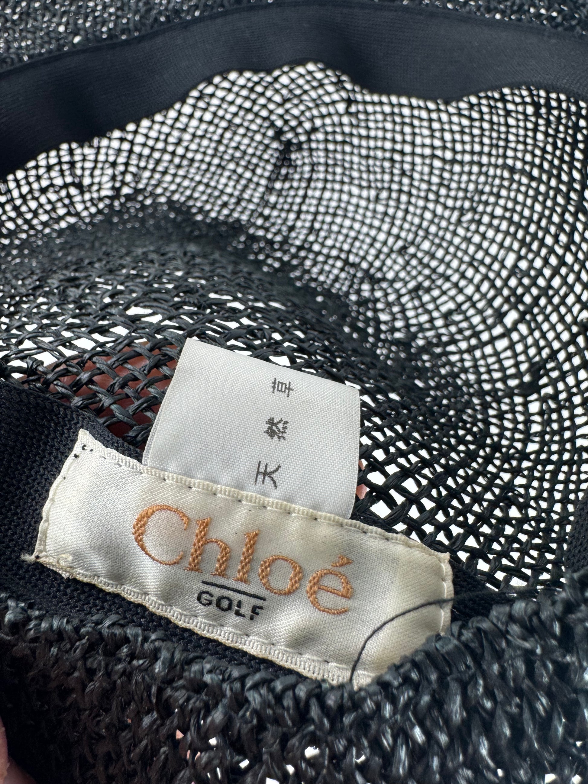 CHLOÉ Vintage Hat. This chic hat is finely crafted of flexible black synthetic rattan-style weave and comes from the Chloé Golf line. It is designed in size M/L and offers a lightweight, slightly pliable structure. Unisex.