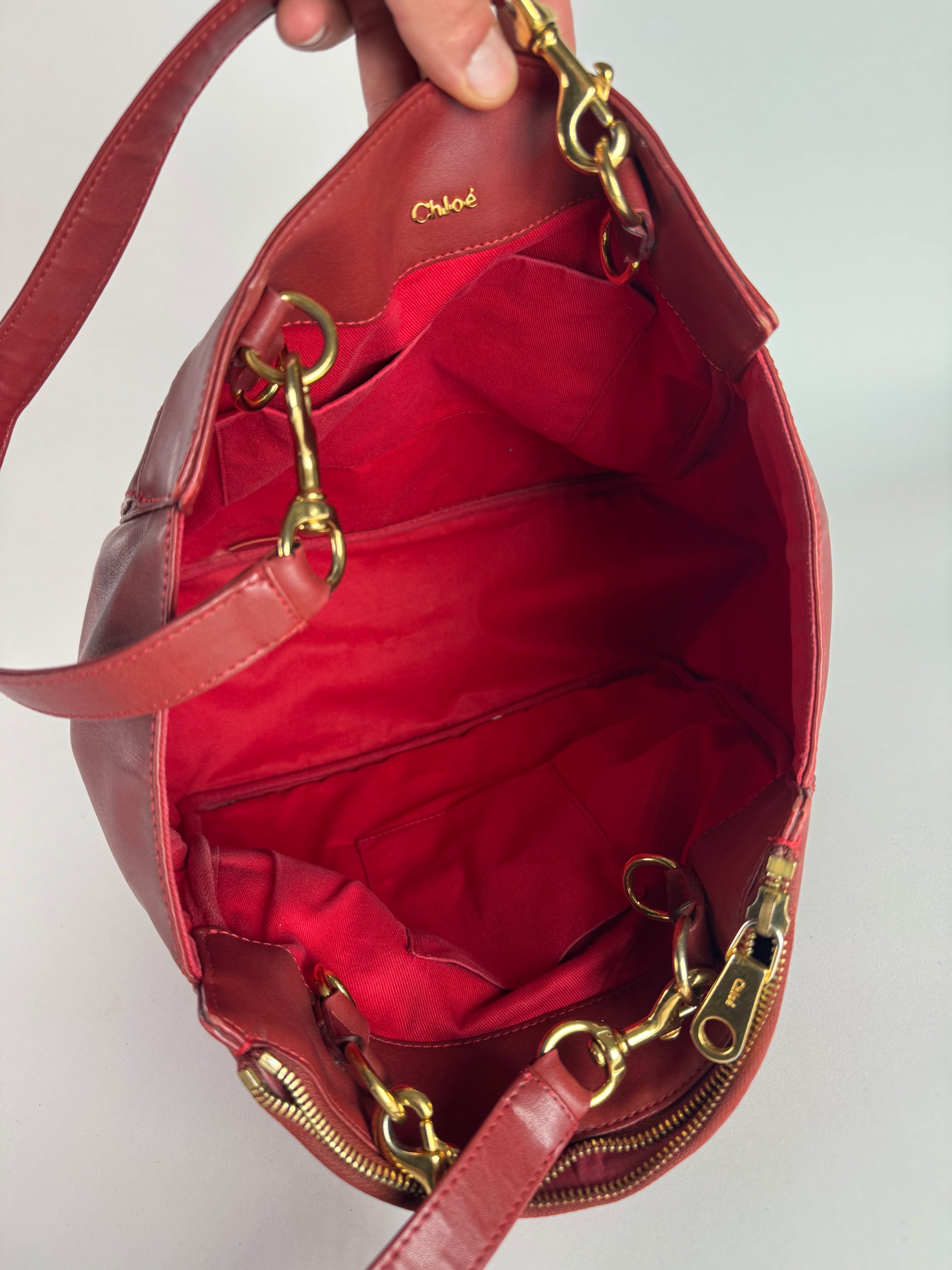 Vintage Chloe Leather Tote Bag Red