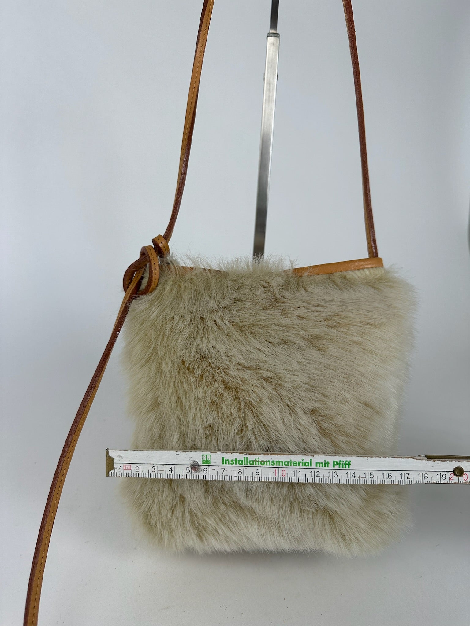 COURRÈGES White Faux Fur and Brown Leather Vintage Handbag.