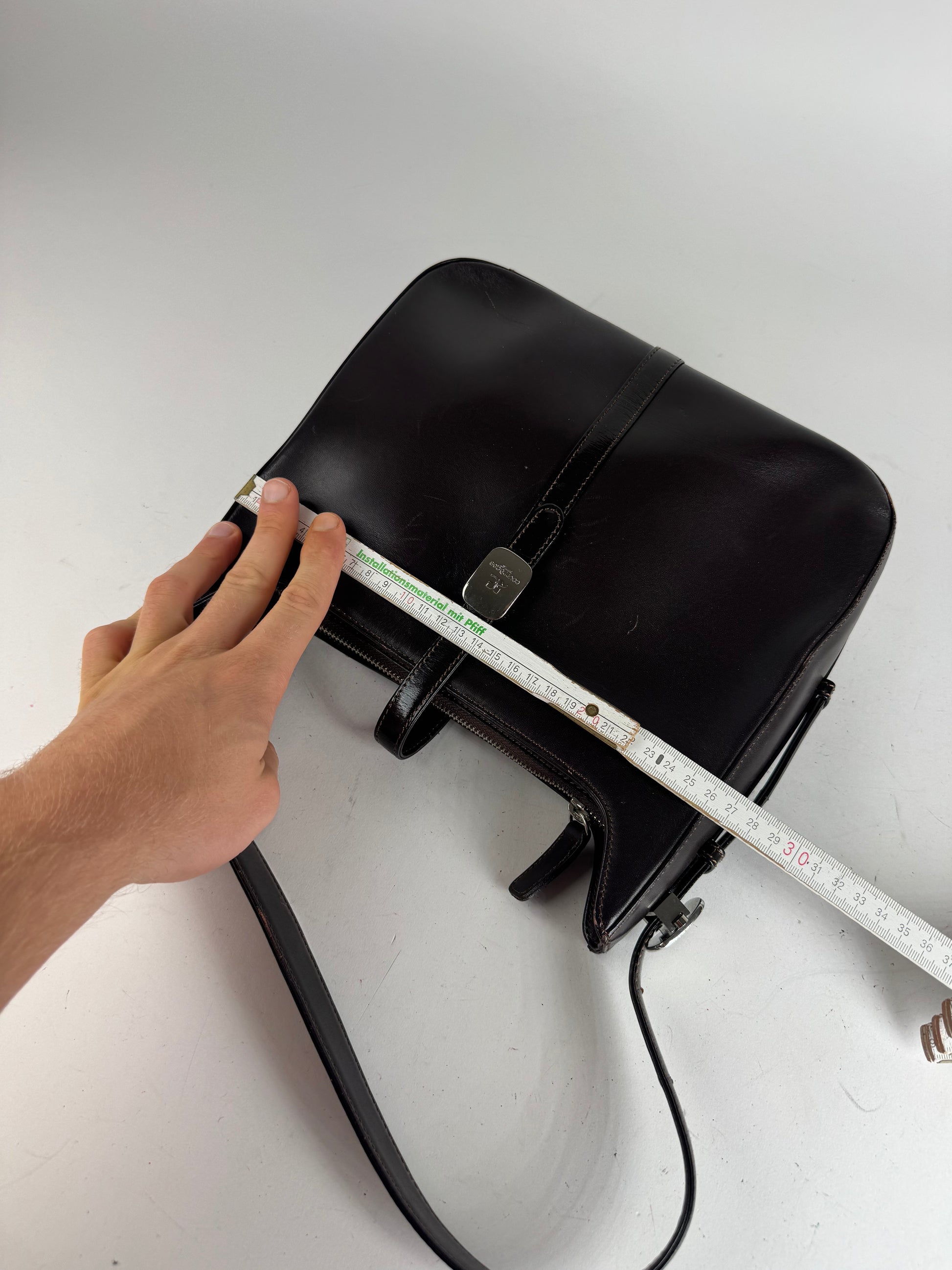 Condition Details: The exterior leather shows minimal signs of wear. The hardware is silver-tone steel with light scratches. The interior canvas remains clean and well-maintained.
