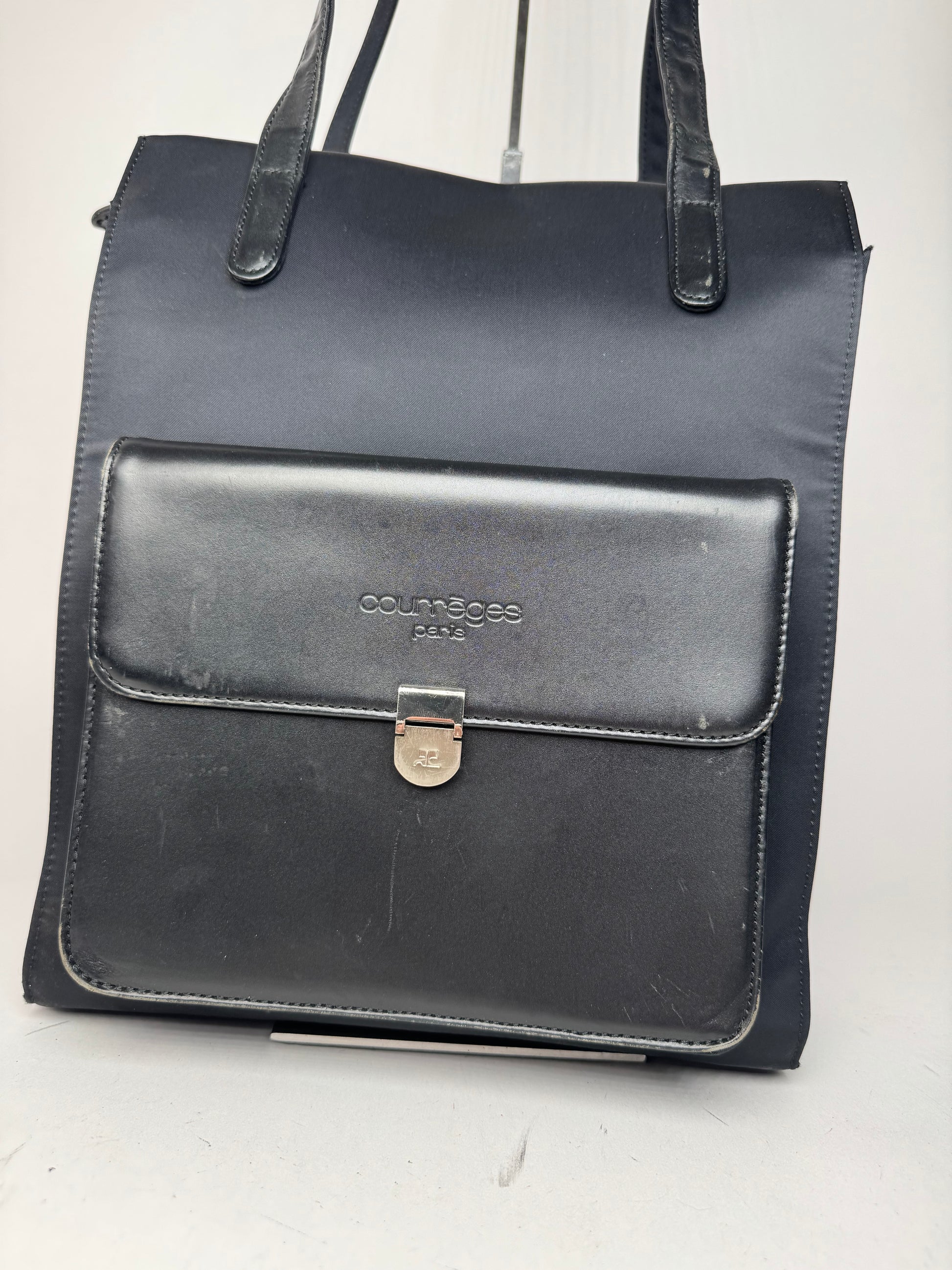 Vintage Courreges Leather Polyester Handbag black