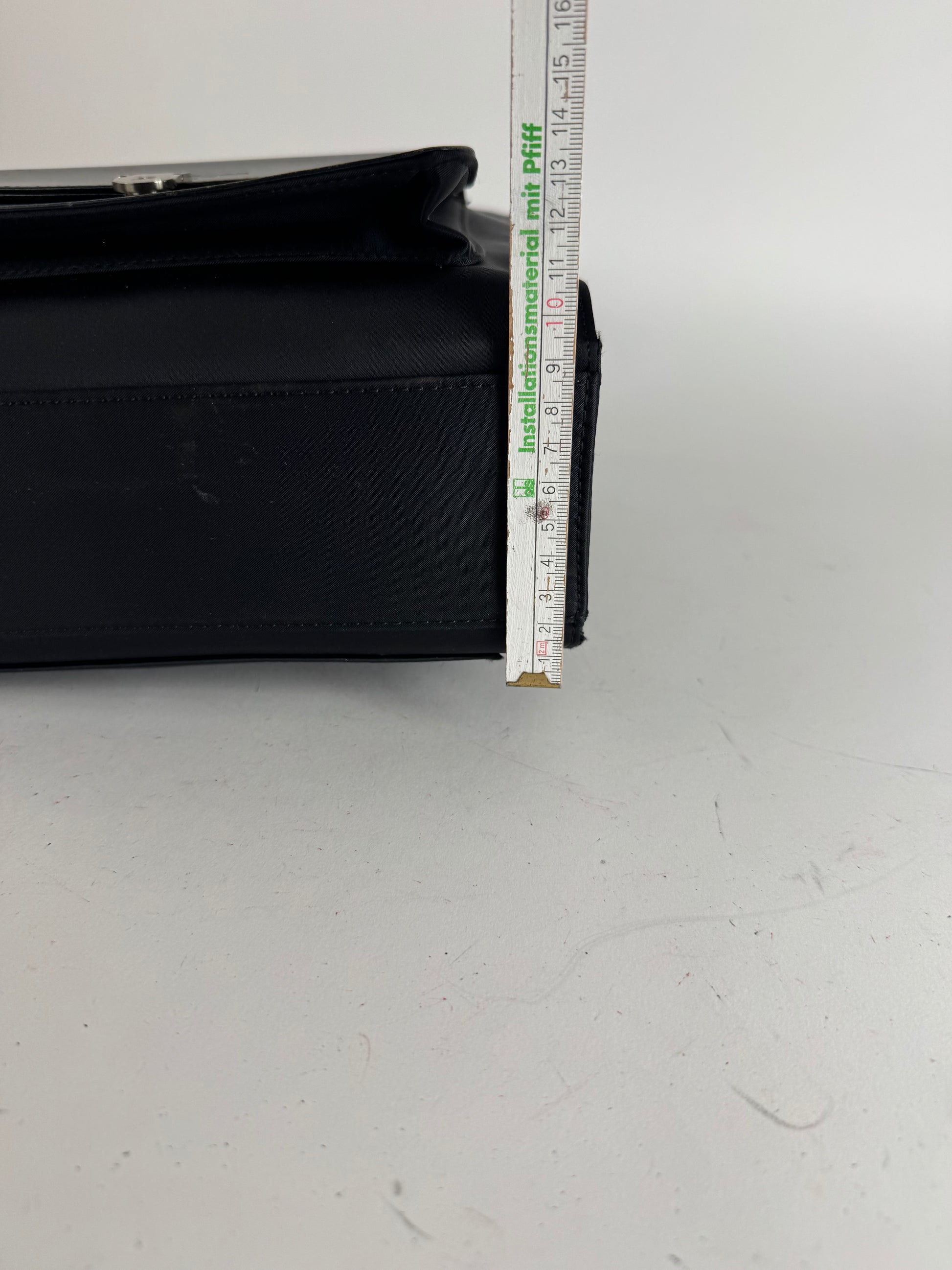 Condition Details: The exterior material remains in beautiful shape with minor scratches and light spots. The silver-tone hardware is bright and well-preserved. The interior black polyester lining is clean and in great condition.