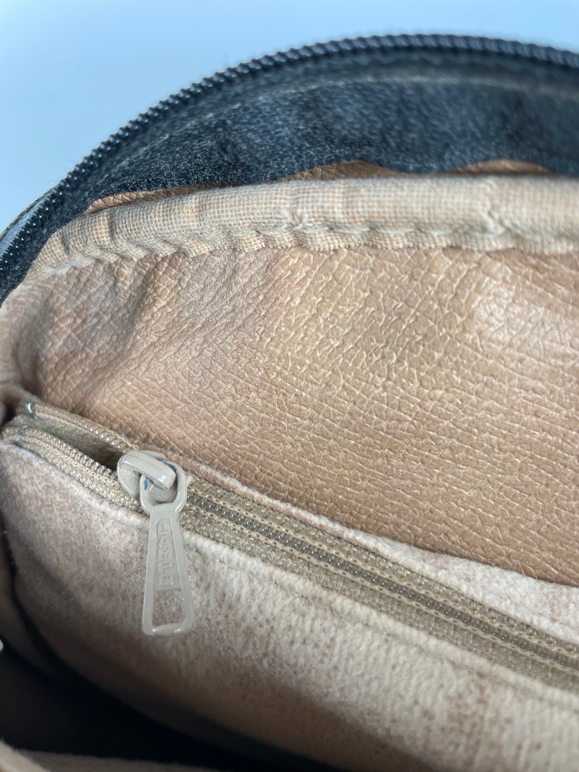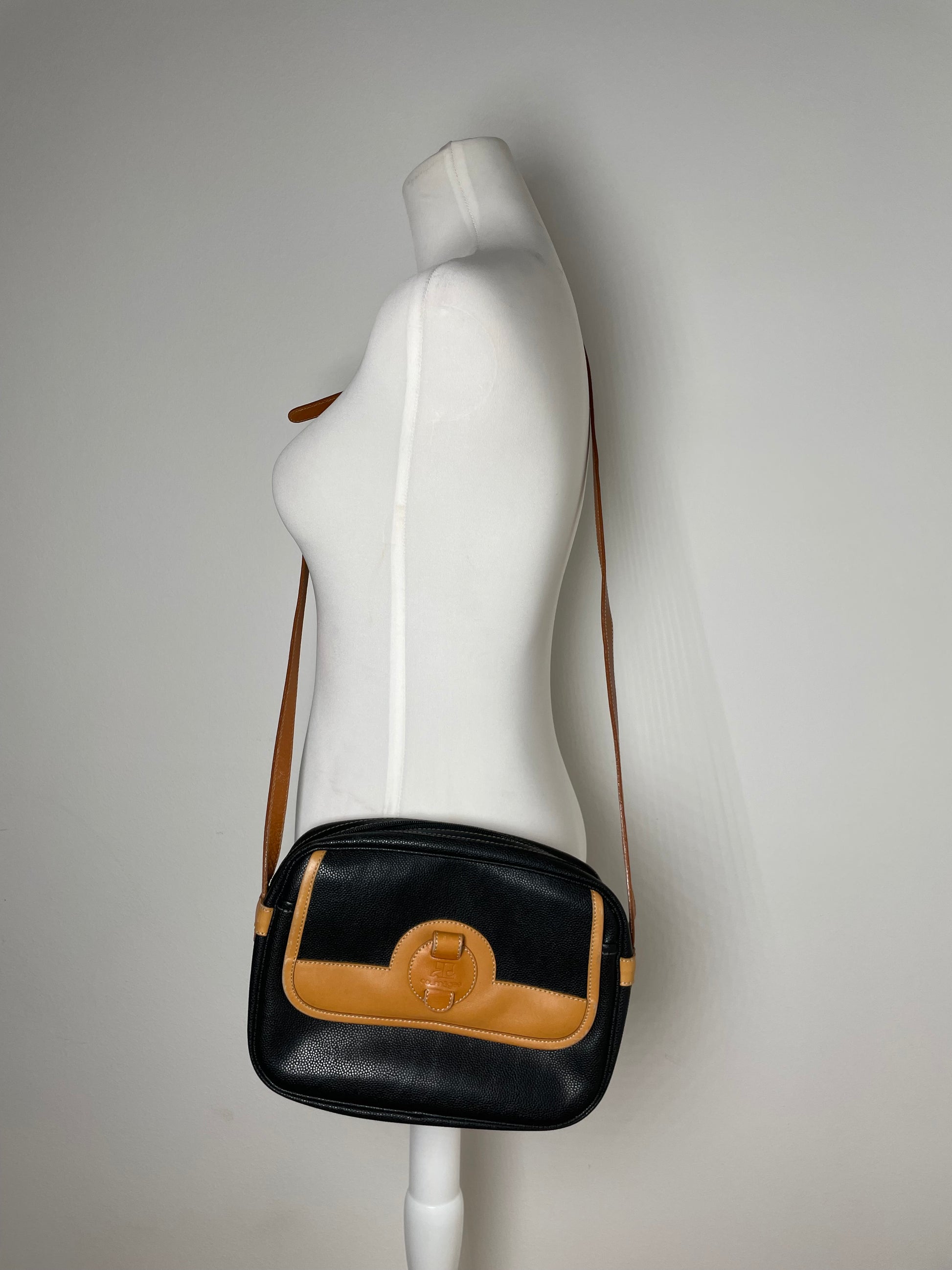 Vintage Courreges Paris Leather Crossbody Bag Black Brown