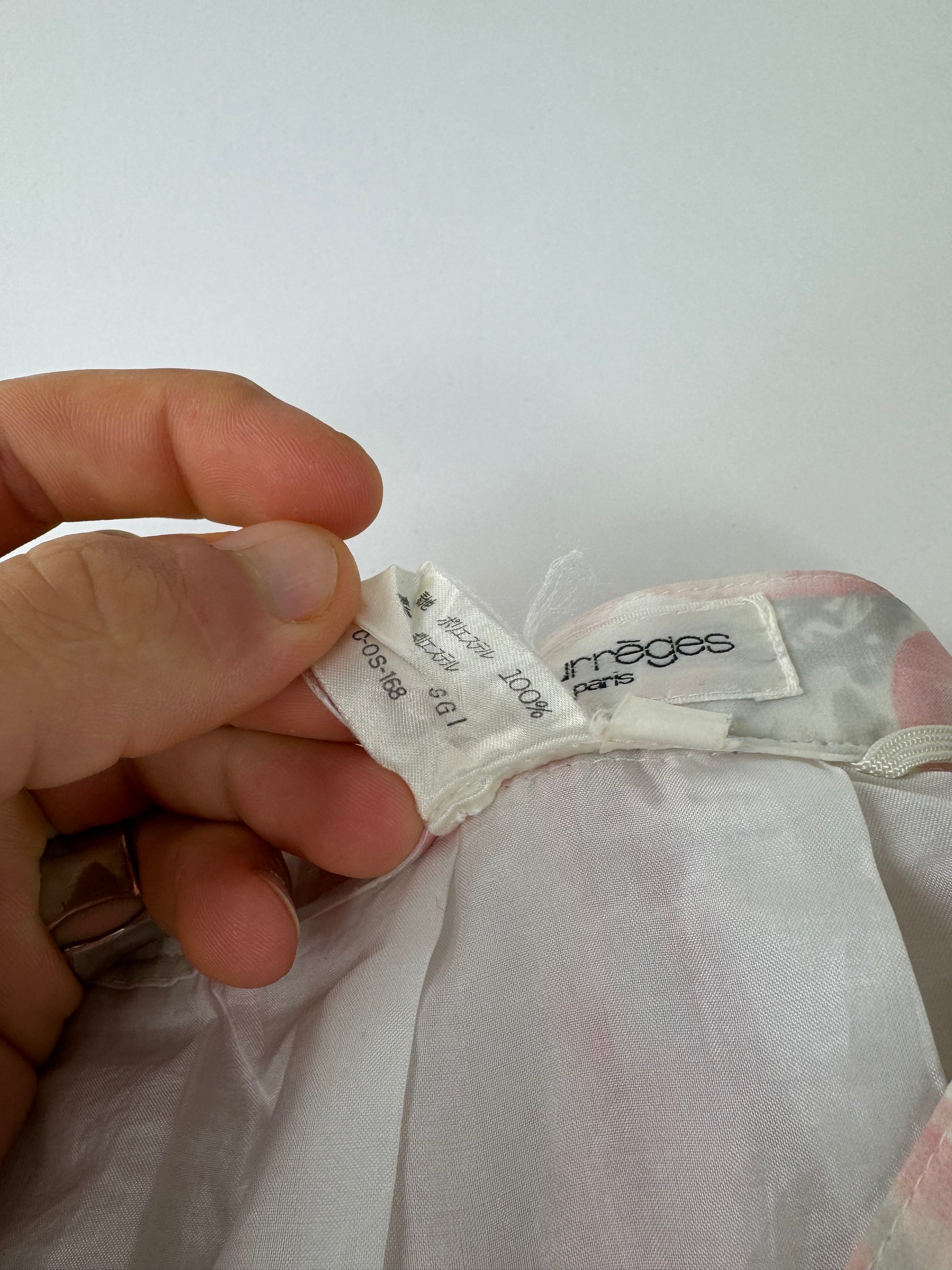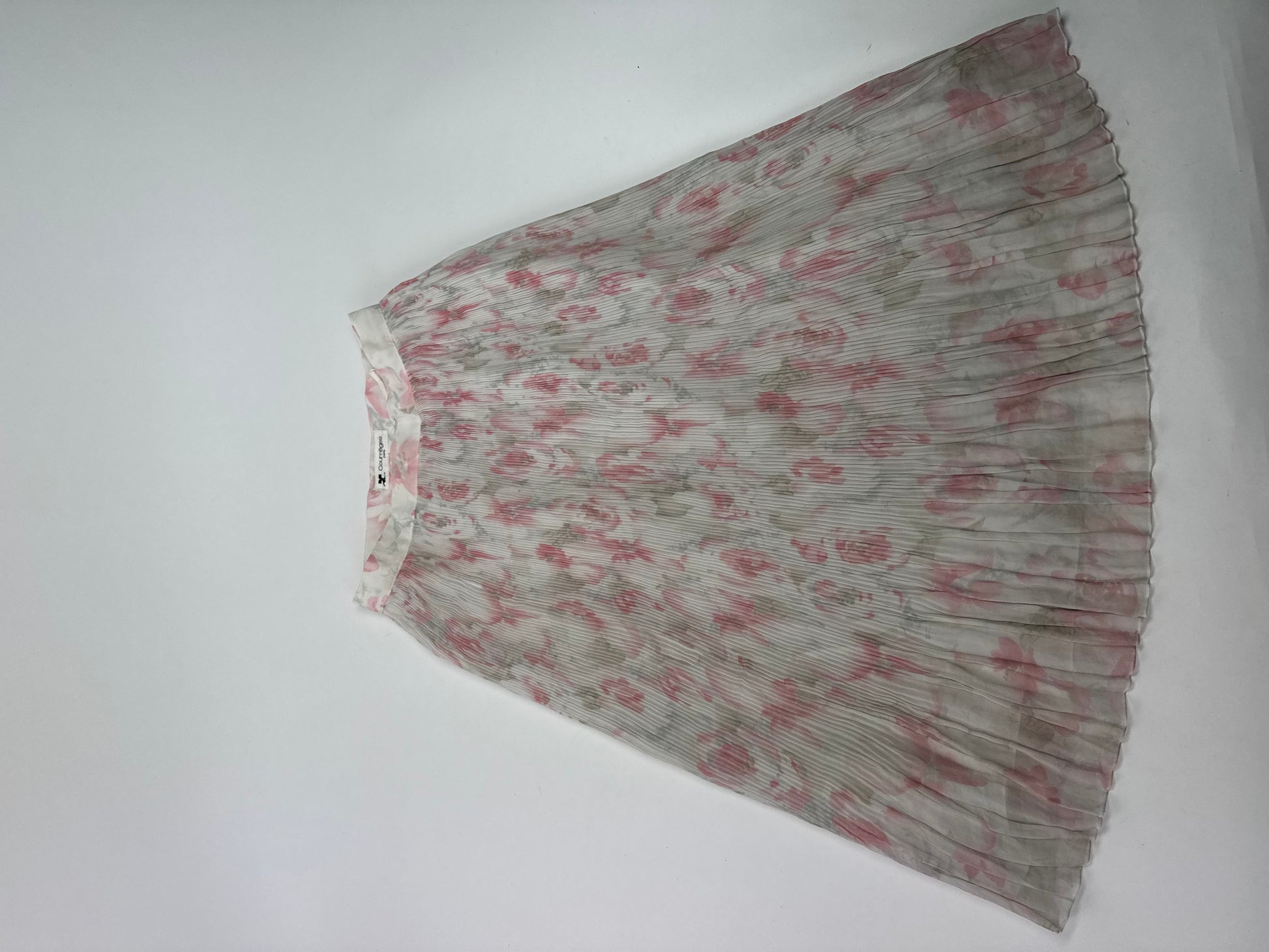 This chic skirt is finely crafted of a silky white synthetic fabric and features a pink and green rose print throughout. The interior is lined with white viscose.
