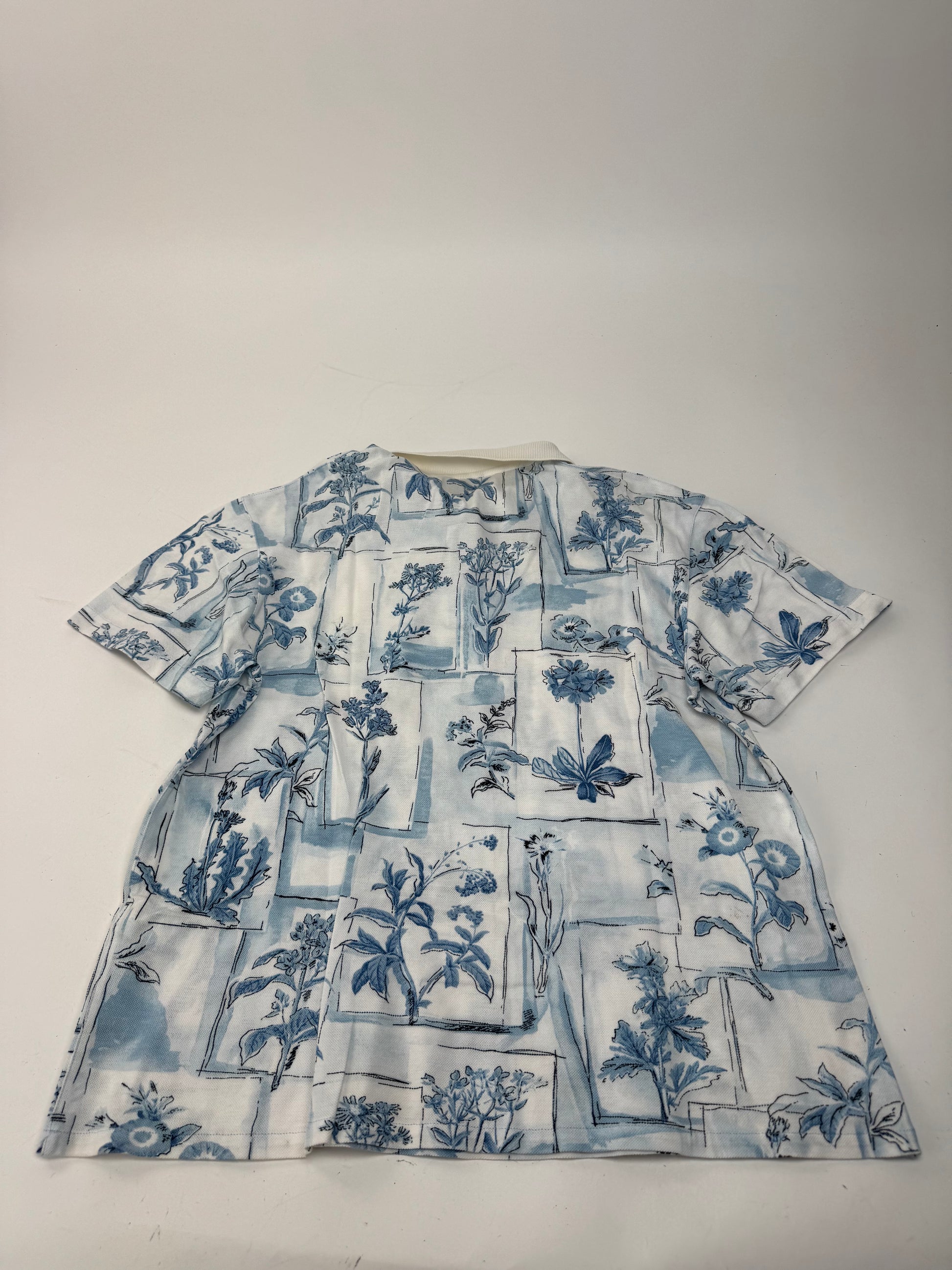 This chic polo shirt is finely crafted of cotton with a blue and white floral pattern and a classic white collar. Dior, founded in 1946 by Christian Dior, revolutionized post-war fashion with timeless elegance, and its vintage pieces continue to embody French sophistication. The mannequin in the photo is wearing size M.