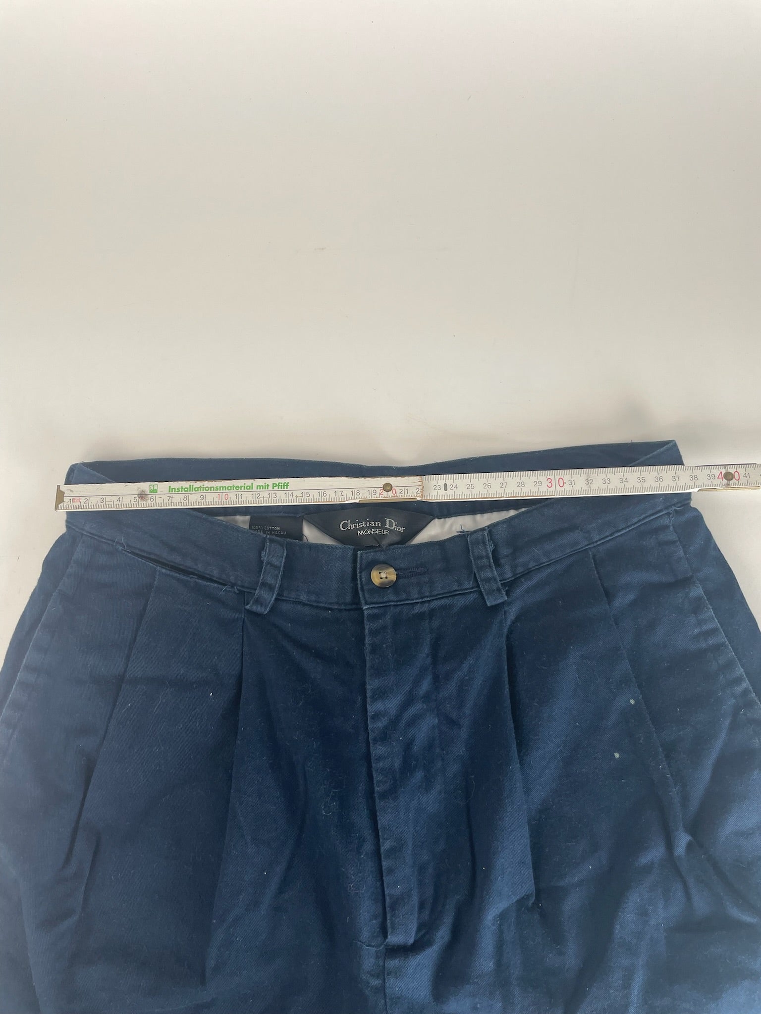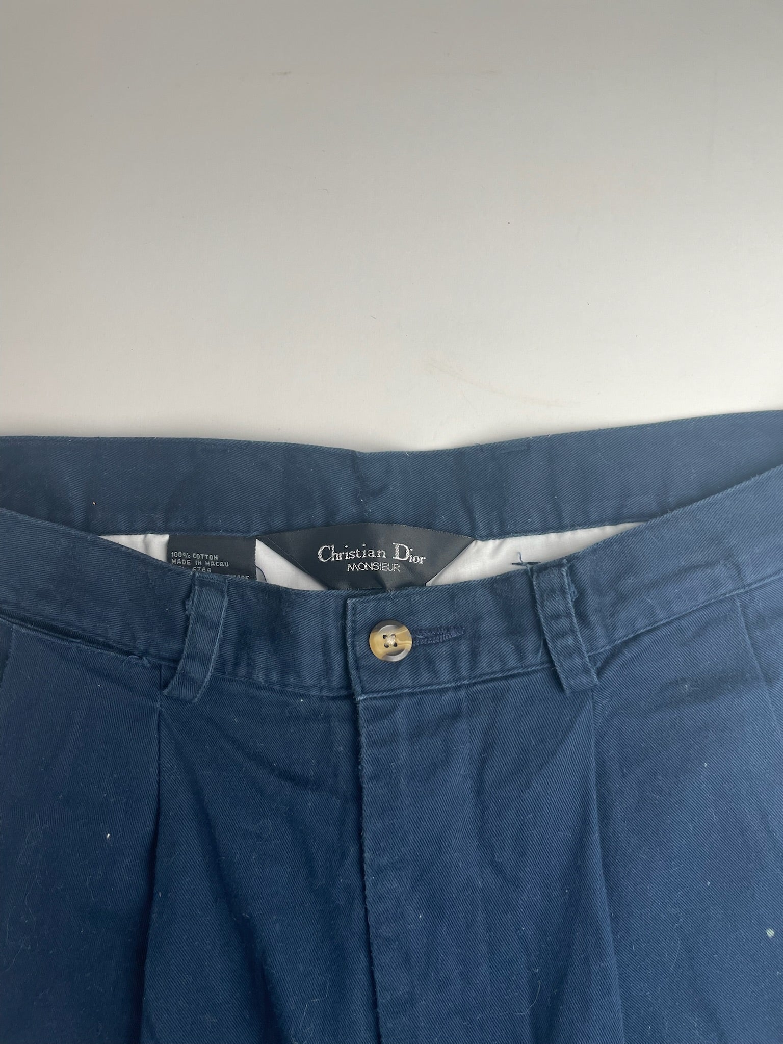 These stylish vintage shorts by Dior are crafted from a similar cotton material and come in a classic navy color. They are in size 30 (US), designed for men, and are in very good condition. The shorts feature a comfortable fit and are ideal for casual wear.