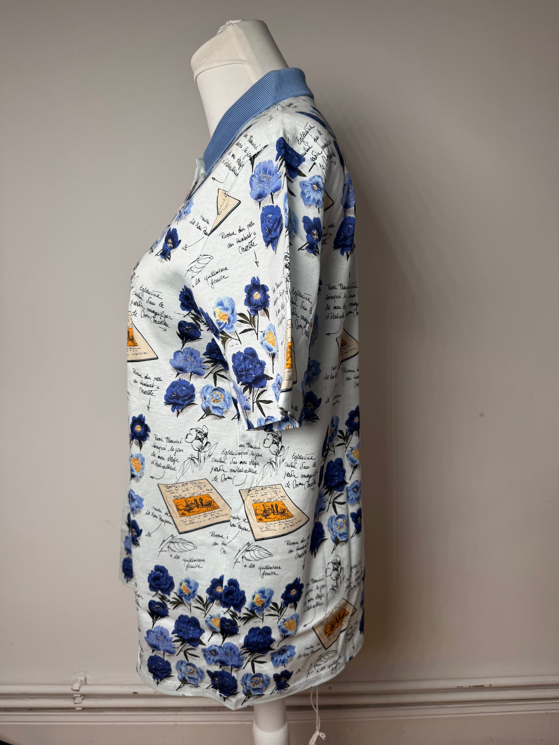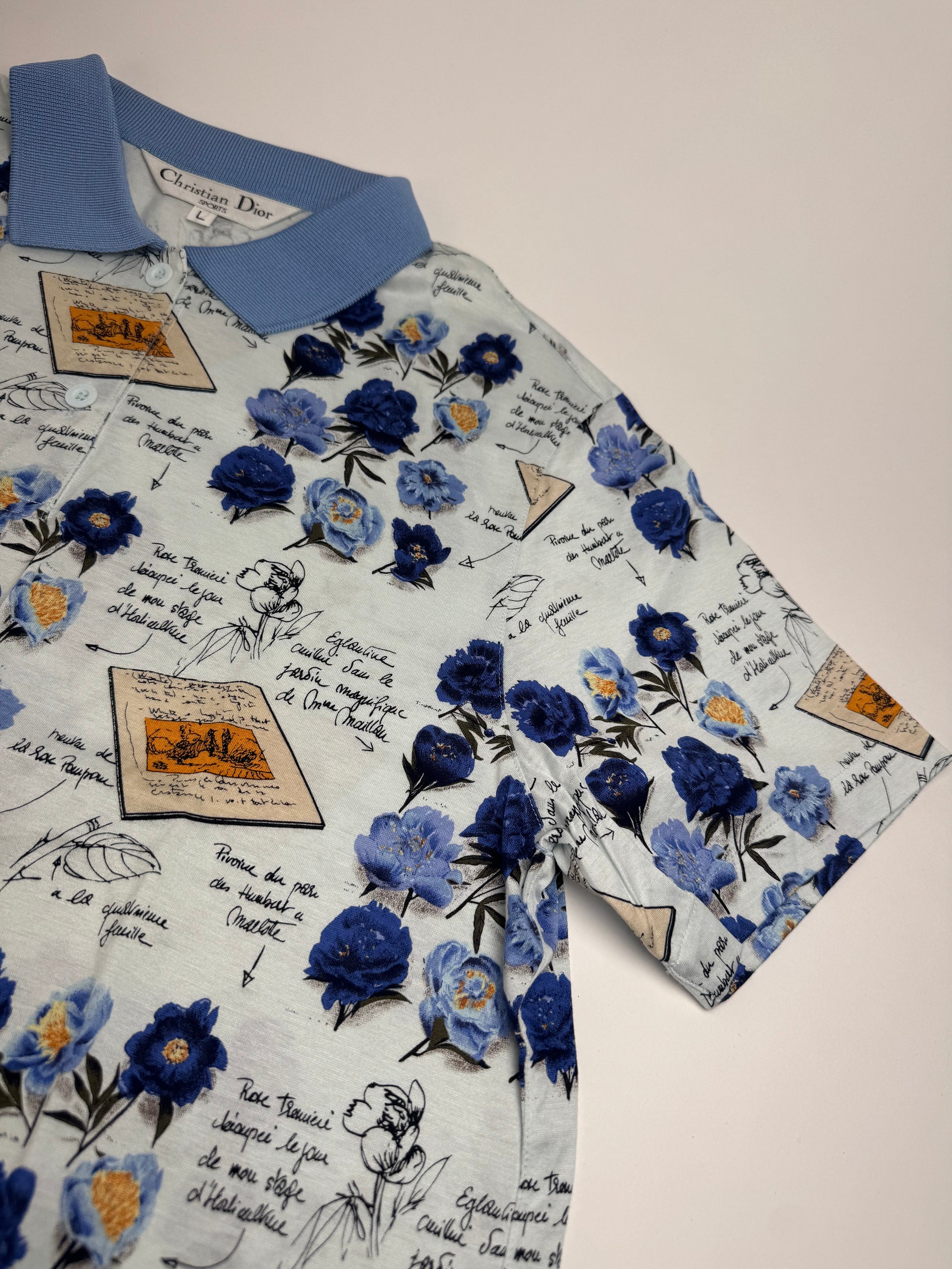Vintage Dior Cotton Polo Shirt Floral Blue White L