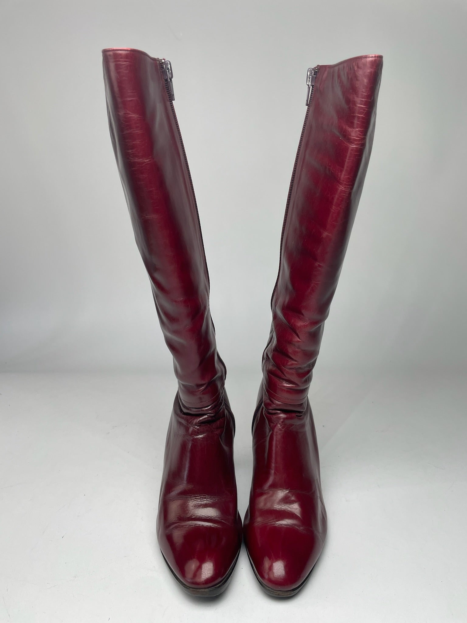 DIOR Vintage Burgundy Patent Leather Heeled Boots