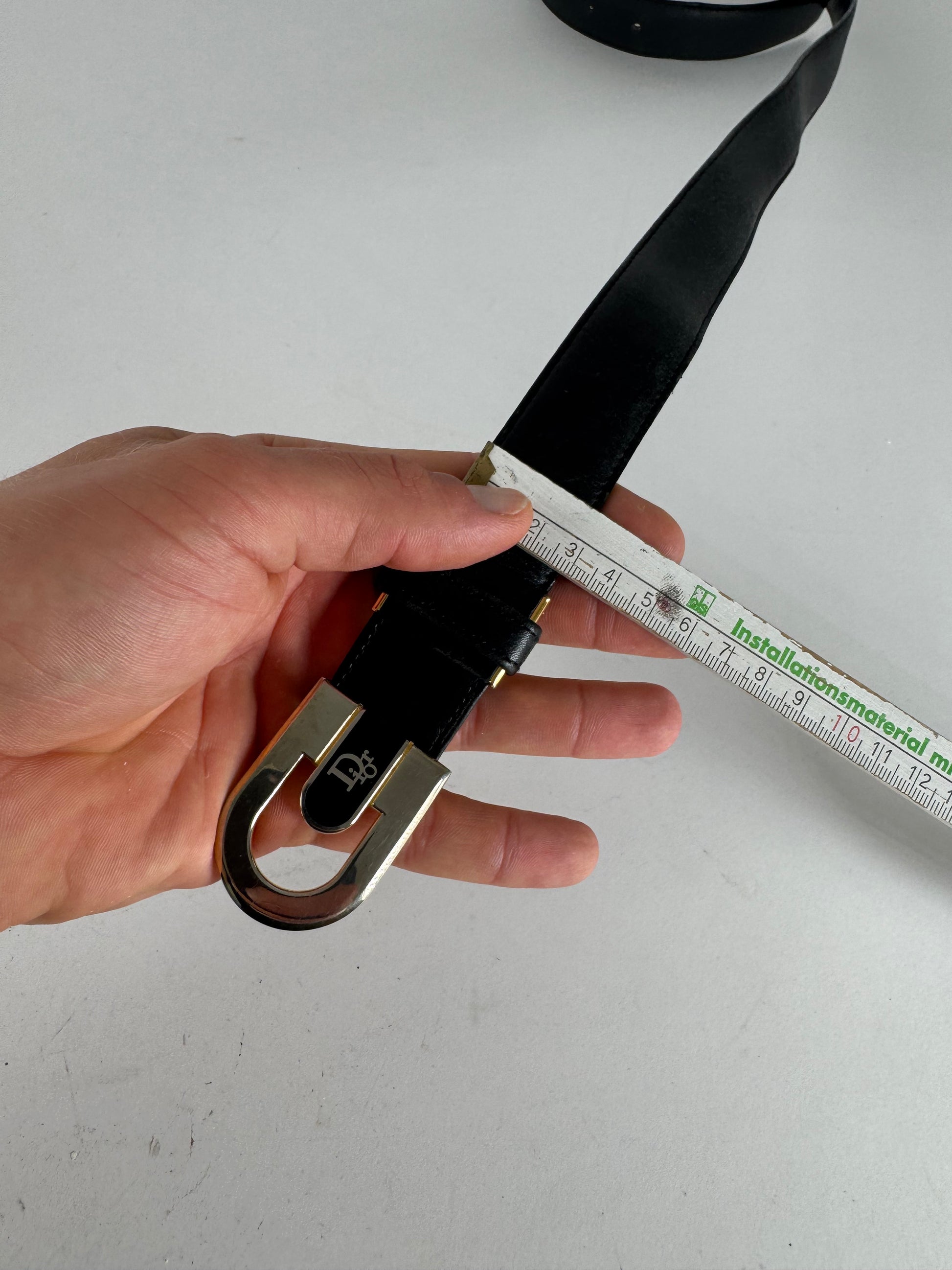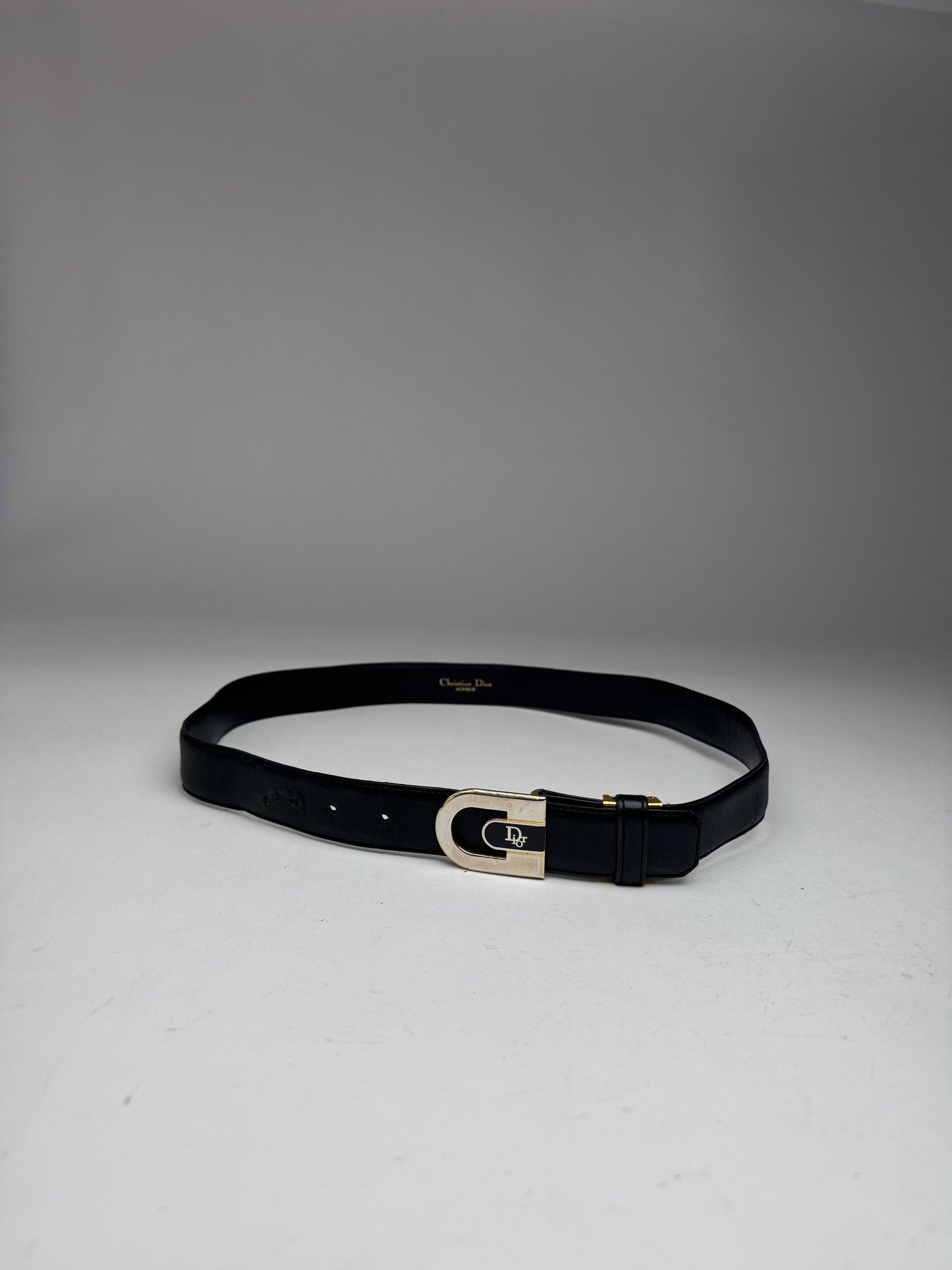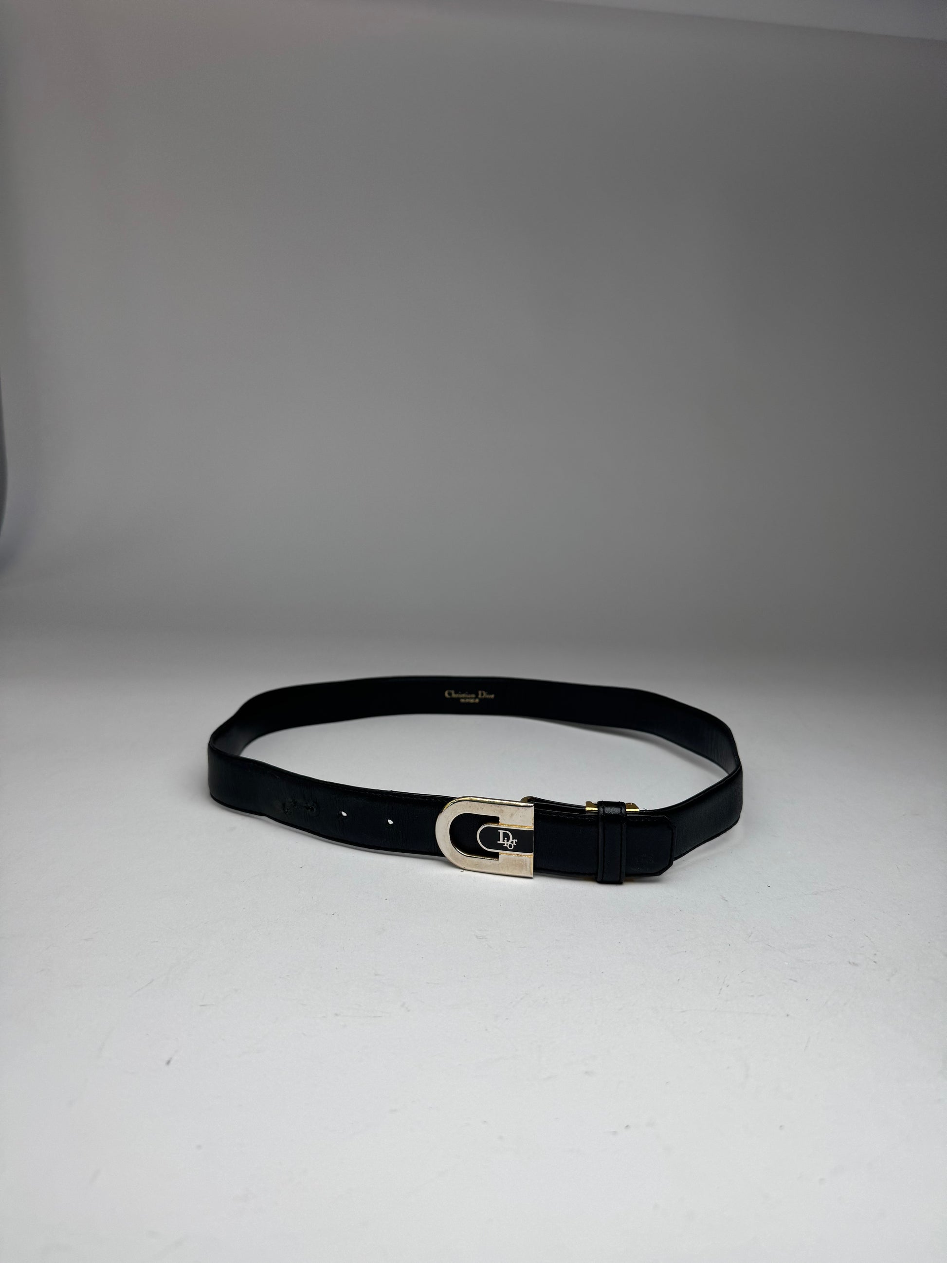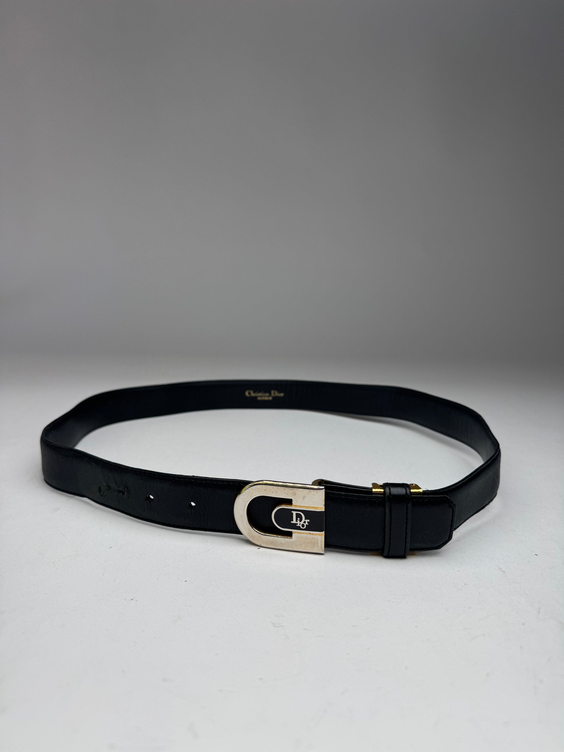 This classic unisex belt is crafted from black leather and features a silver and gold-tone steel buckle.