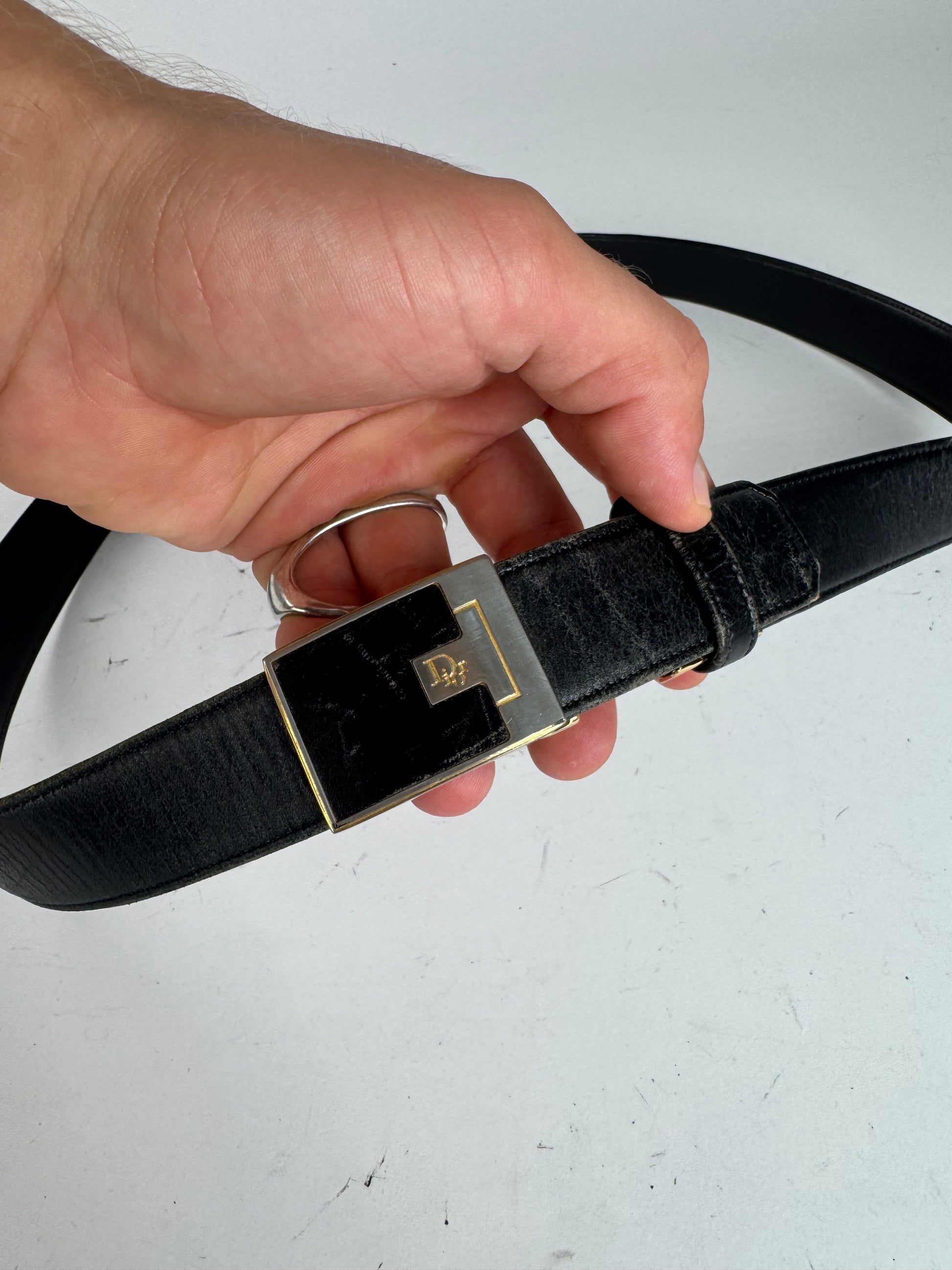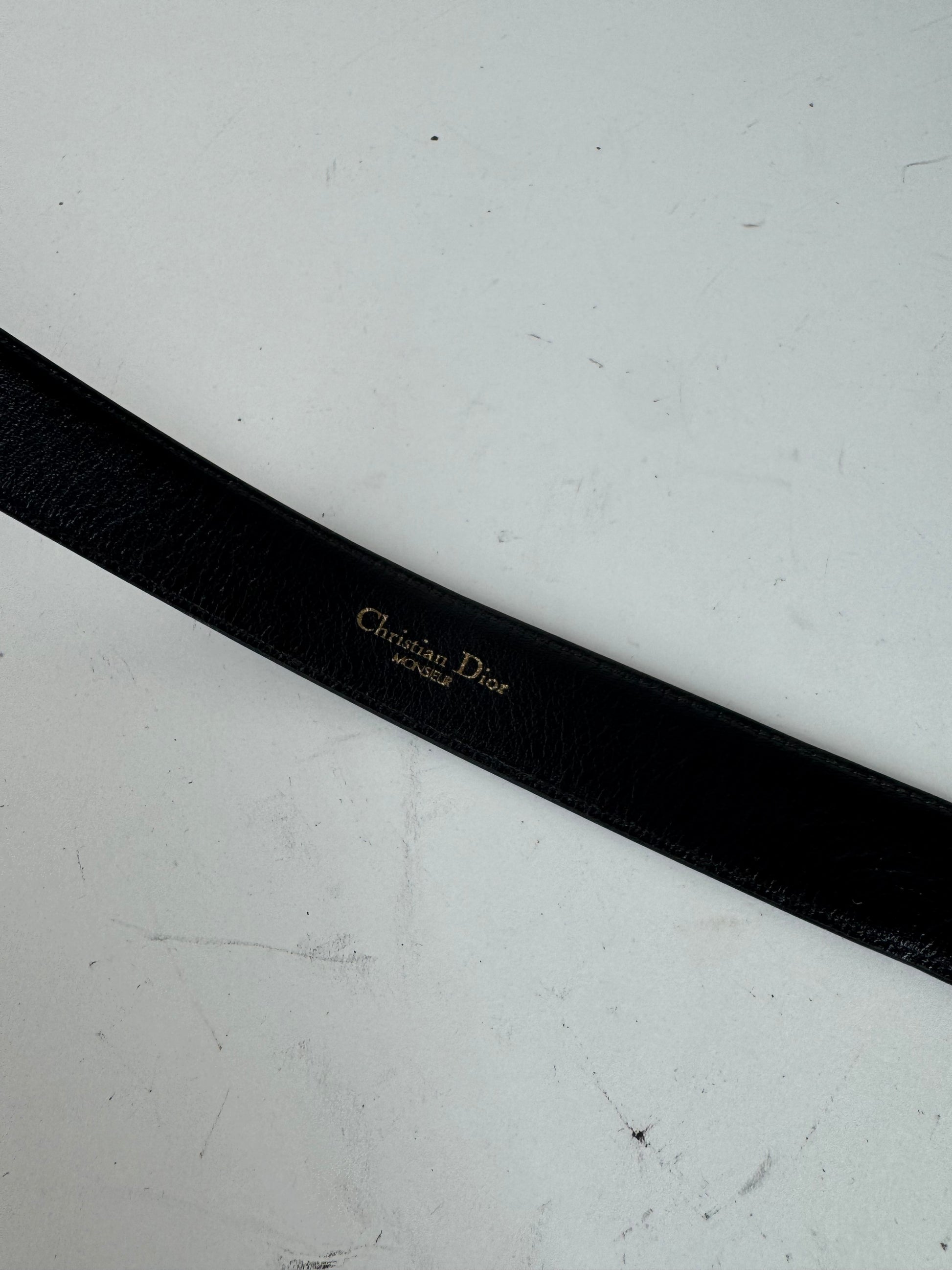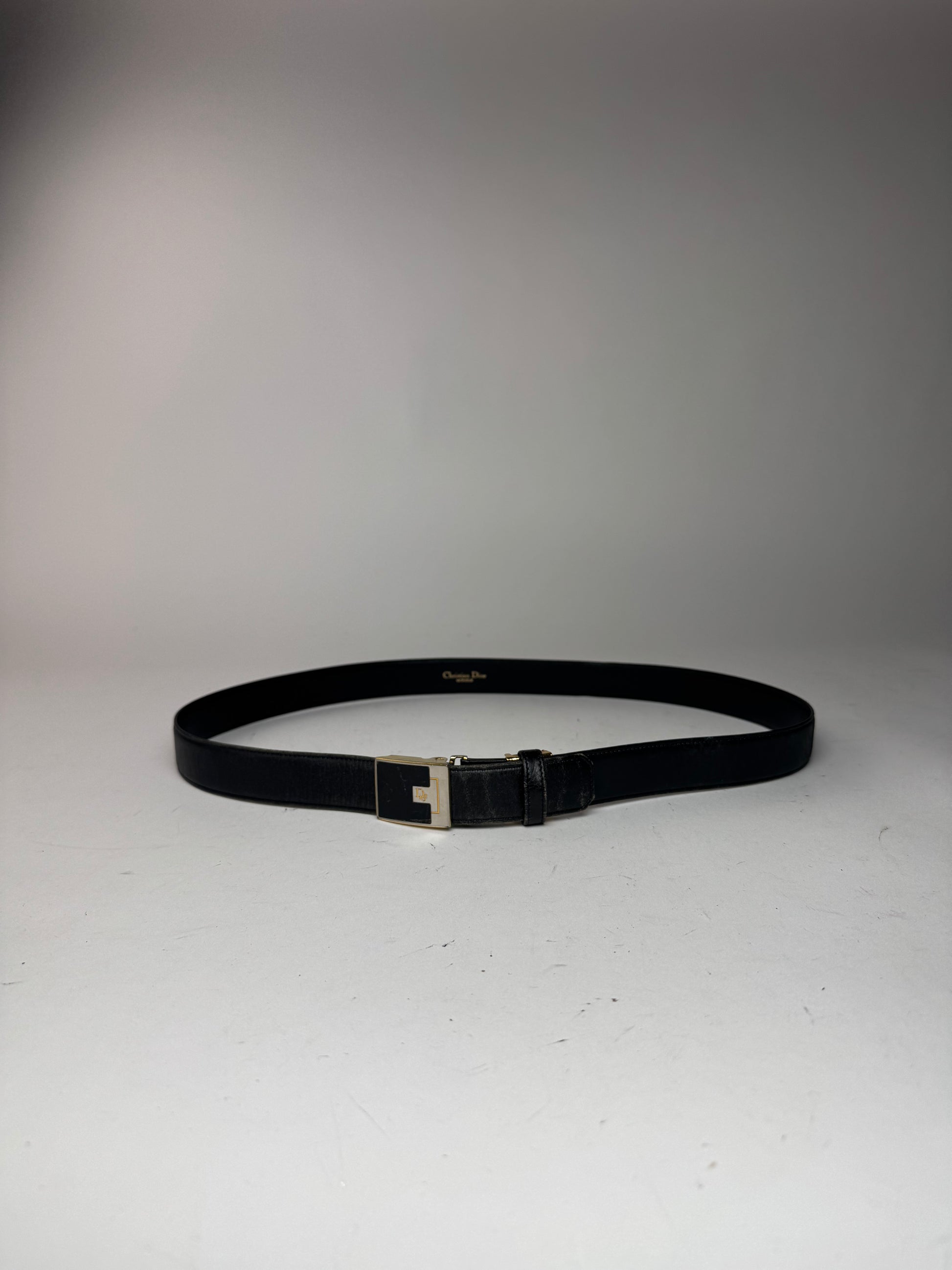 DIOR Snake-Embossed Leather Belt. This vintage belt is crafted from black leather with a refined snakeskin texture and features a unique clasp-style closure in silver, gold, and black steel. The combination of textures and tones reflects Dior’s attention to detail and timeless approach to accessories. This unisex piece is both elegant and versatile.
