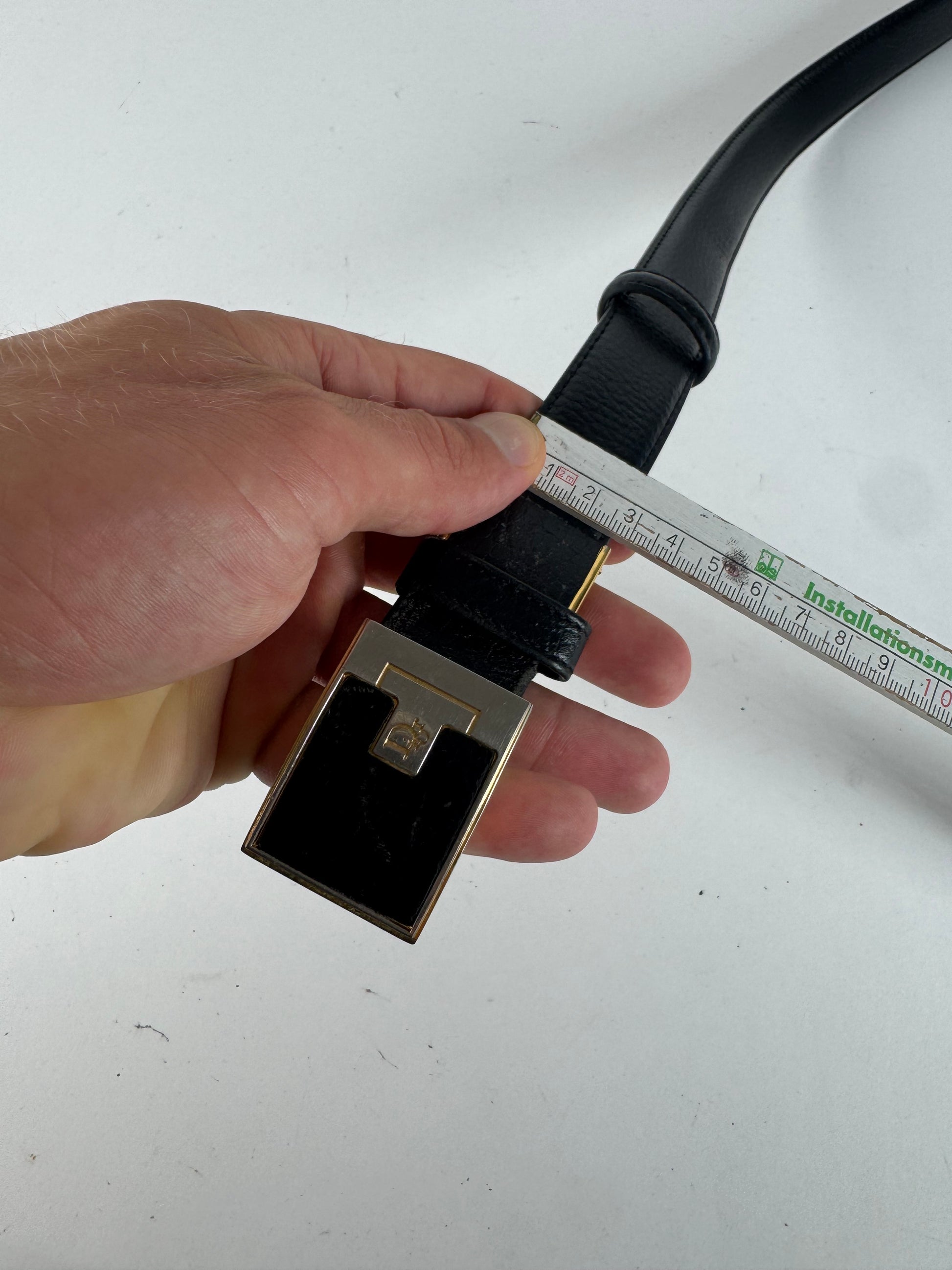 Condition Details: The buckle shows light surface scratches. The leather strap is in very good condition. Belt holes have not yet been punched and can be added as needed.