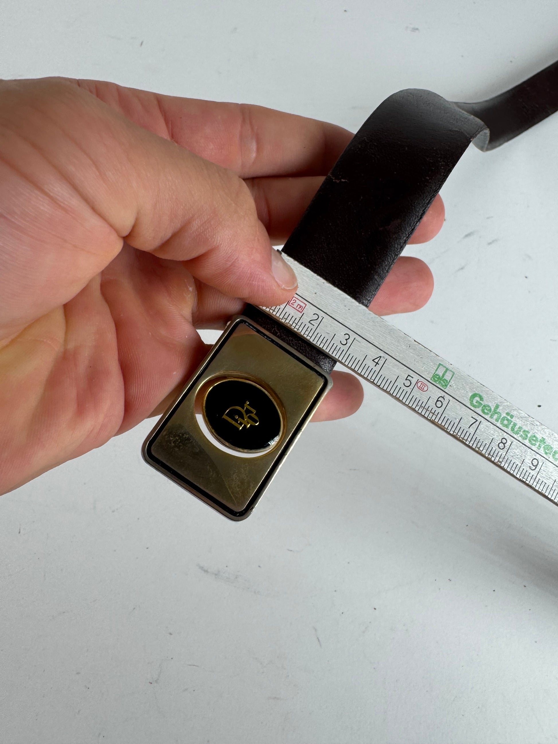 DIOR Black Leather Belt with Gold Logo Buckle.