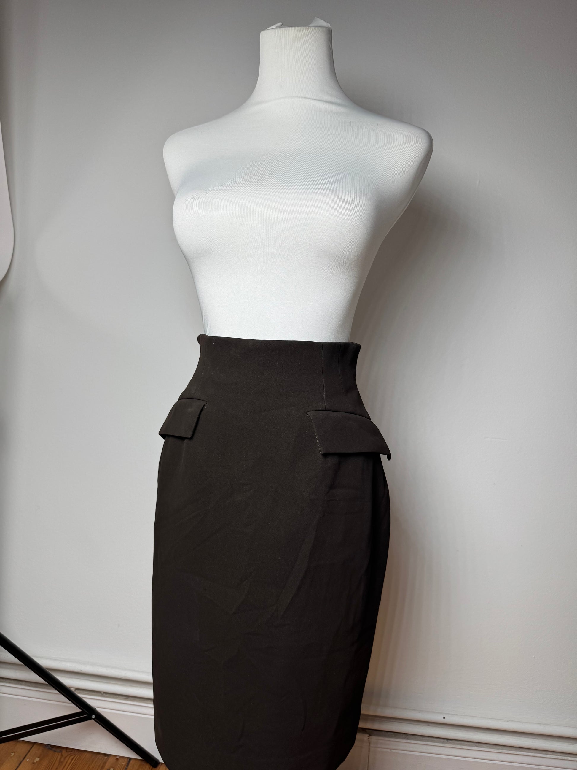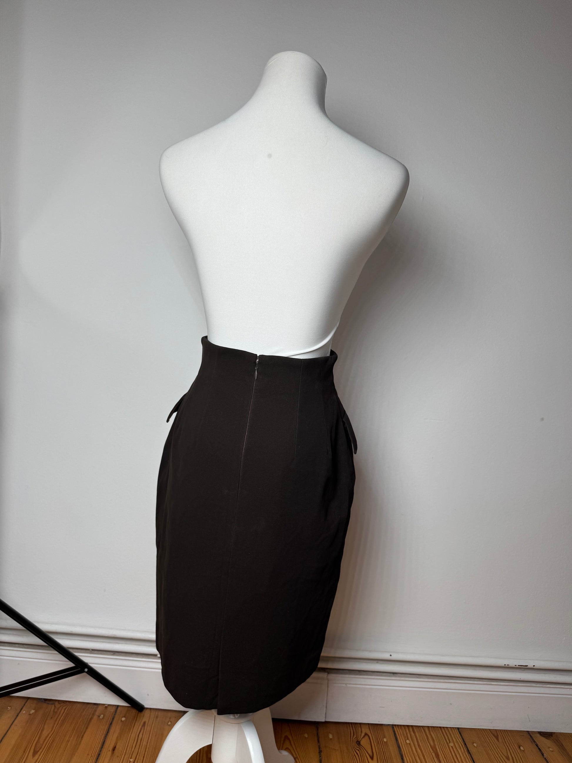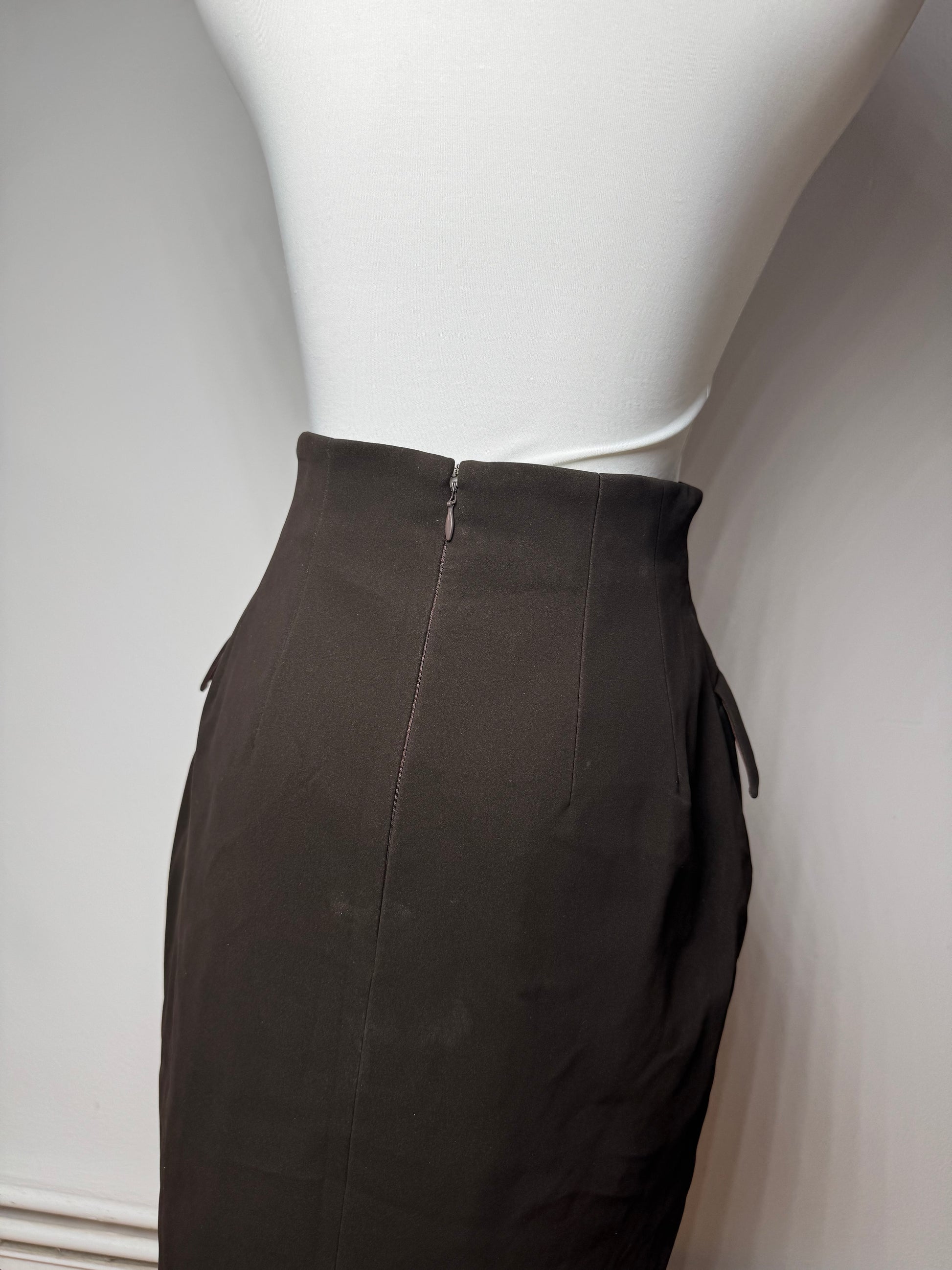 This sophisticated vintage skirt is finely crafted from smooth brown leather and features two front pockets and a back zipper closure. The interior is lined with viscose for comfort and structure. A timeless piece that embodies Dior’s elegant Parisian craftsmanship. The mannequin on the photo wears size 38/M.