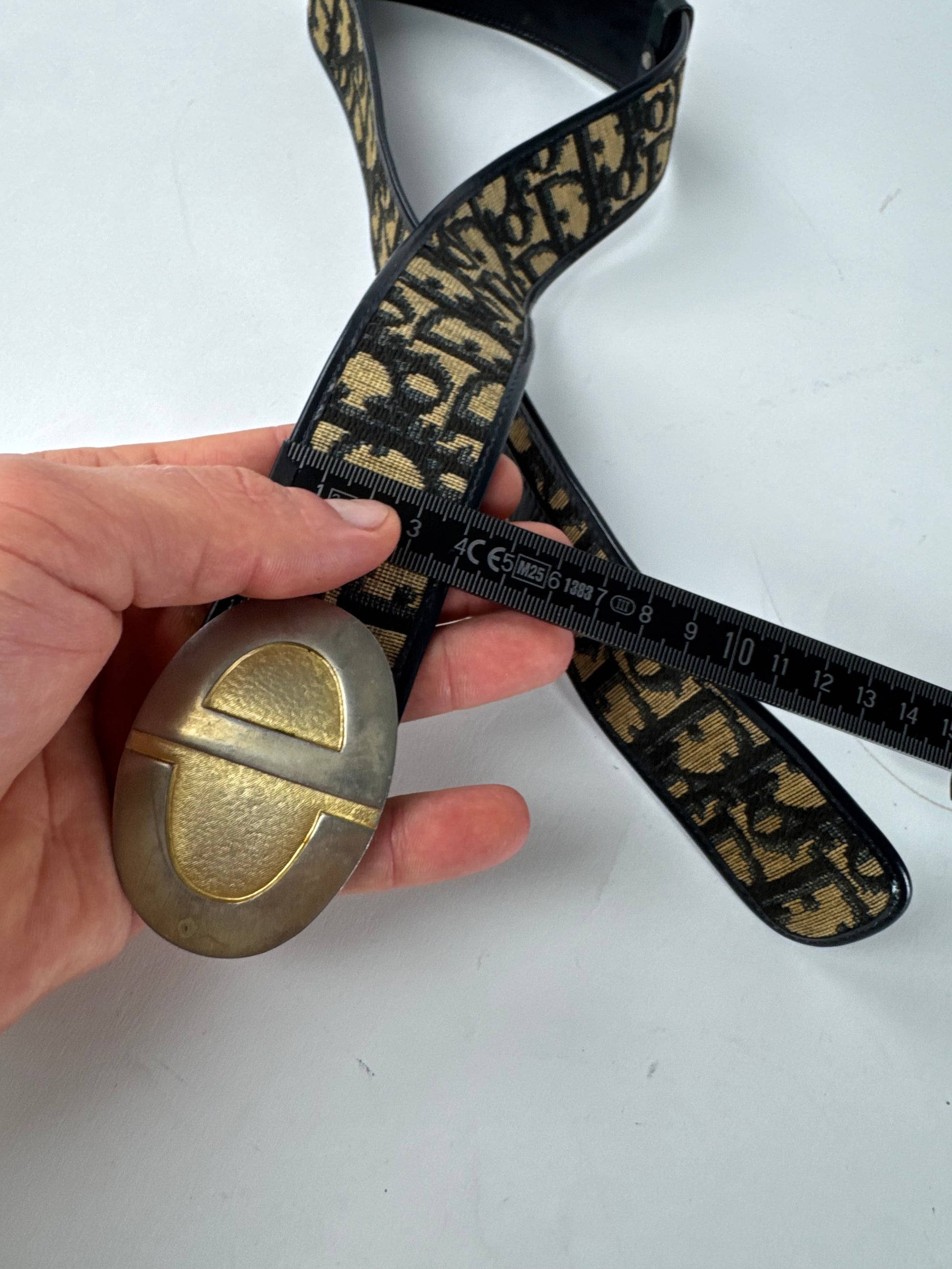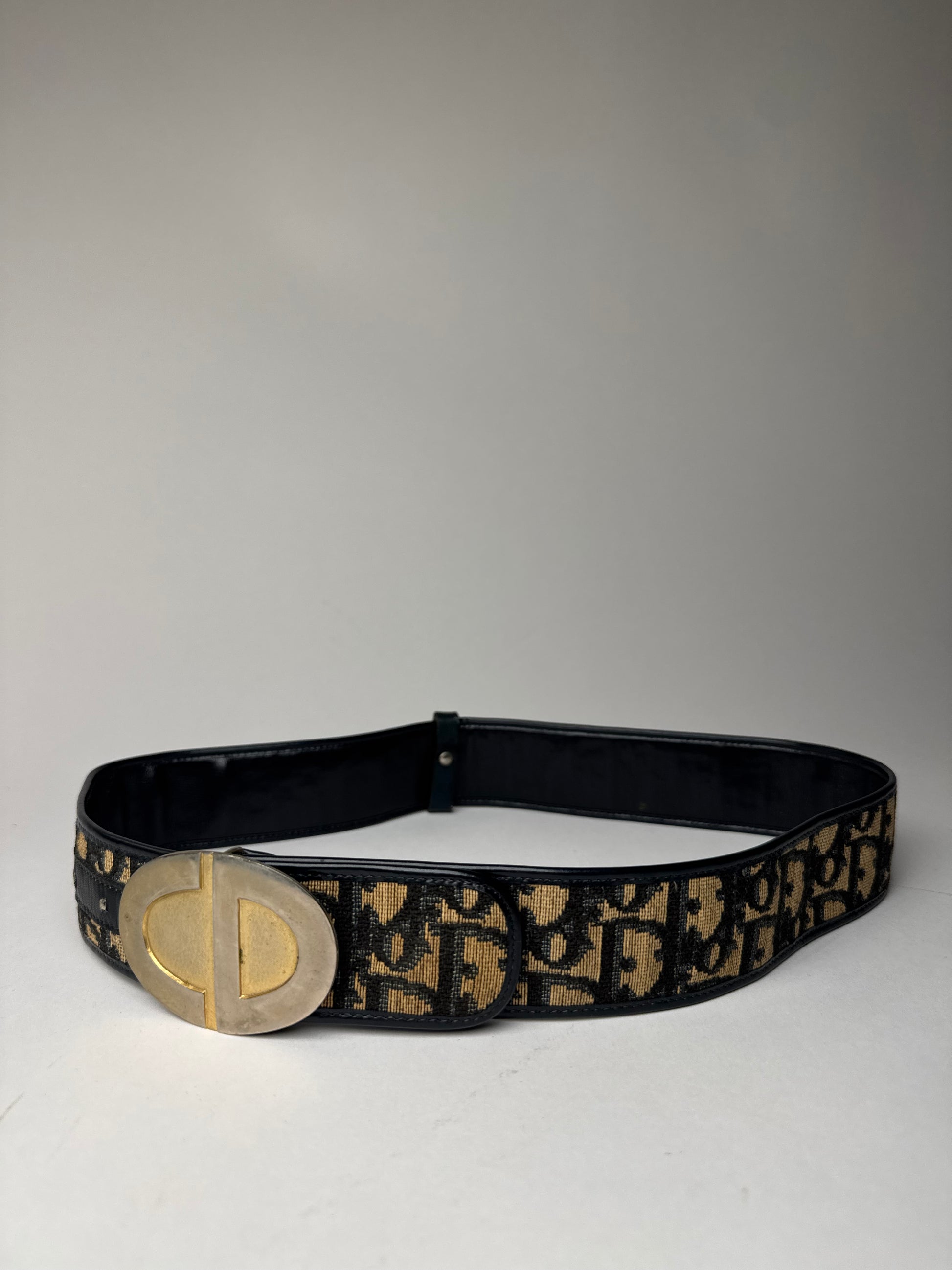 Vintage Dior Oblique Monogram Belt Beige Navy