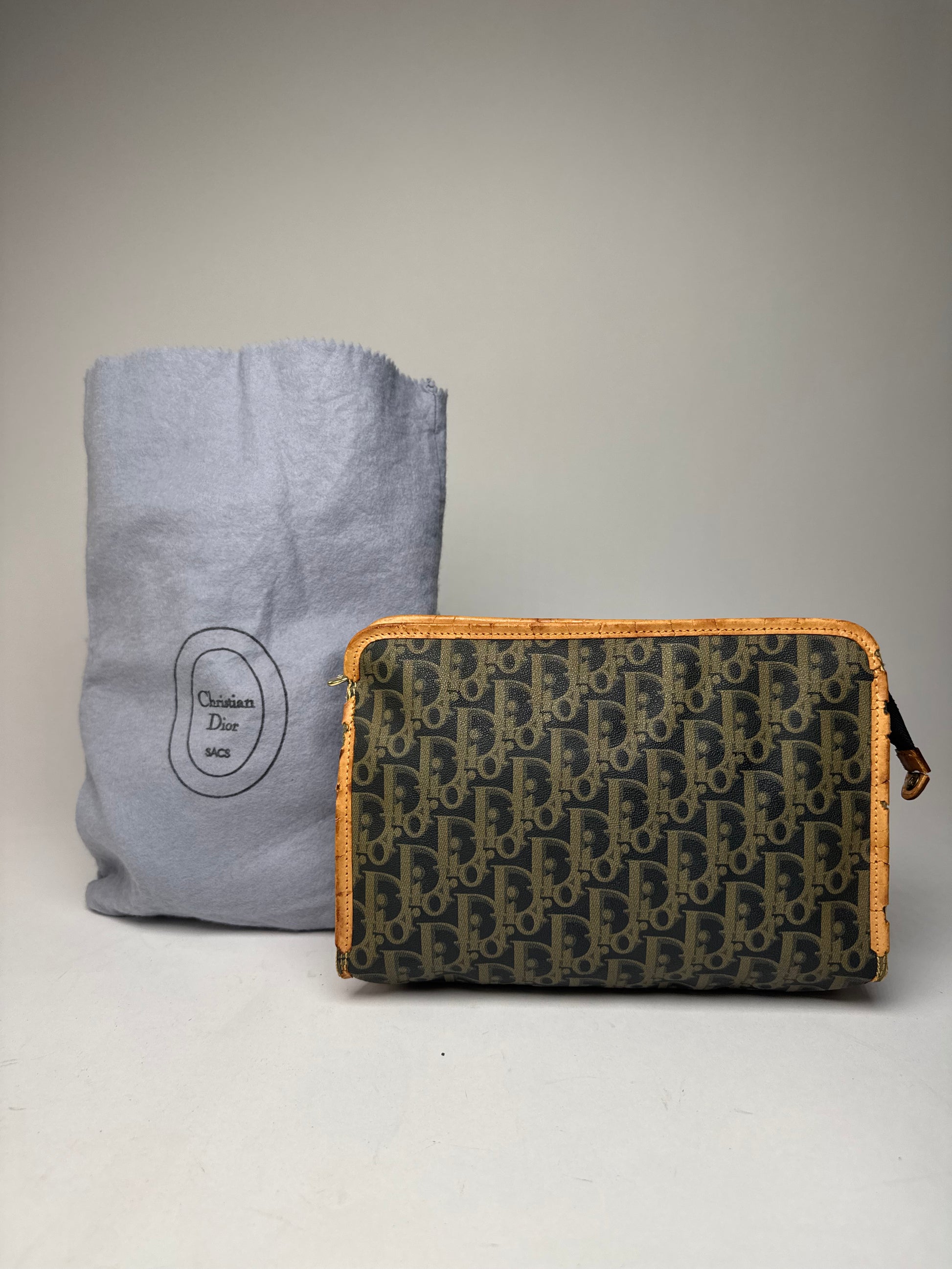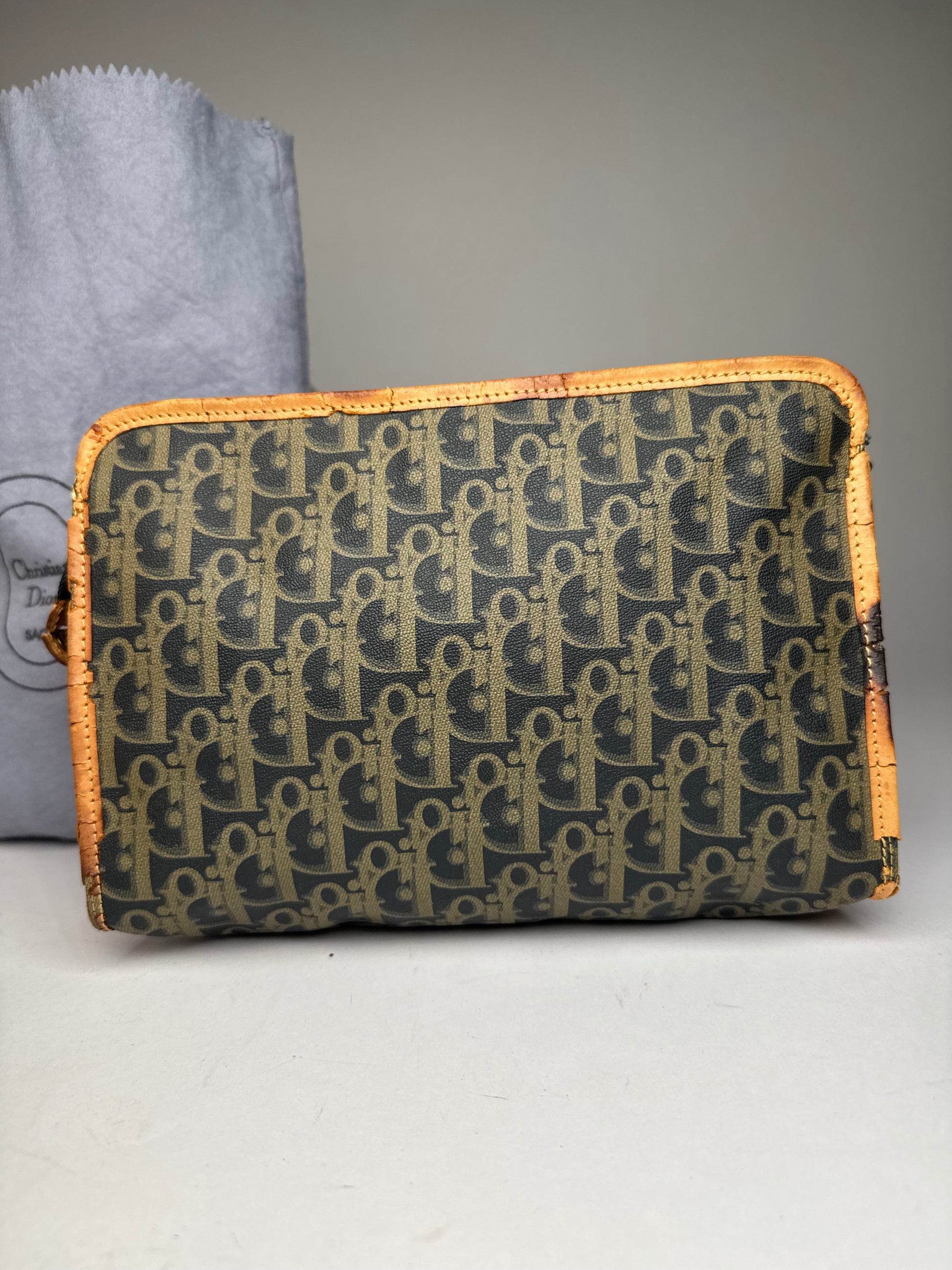 Vintage Dior Oblique Monogram Clutch Black camel