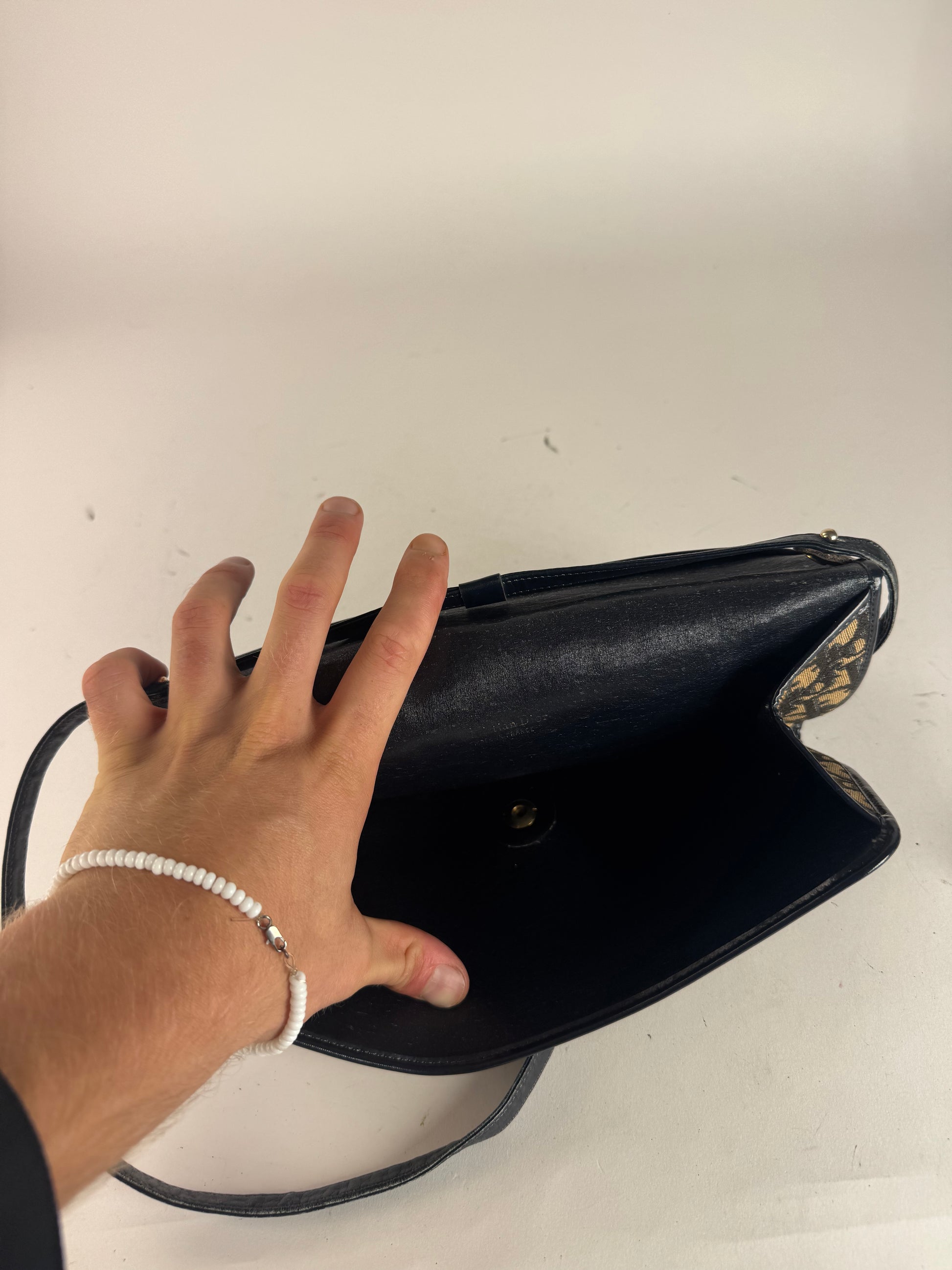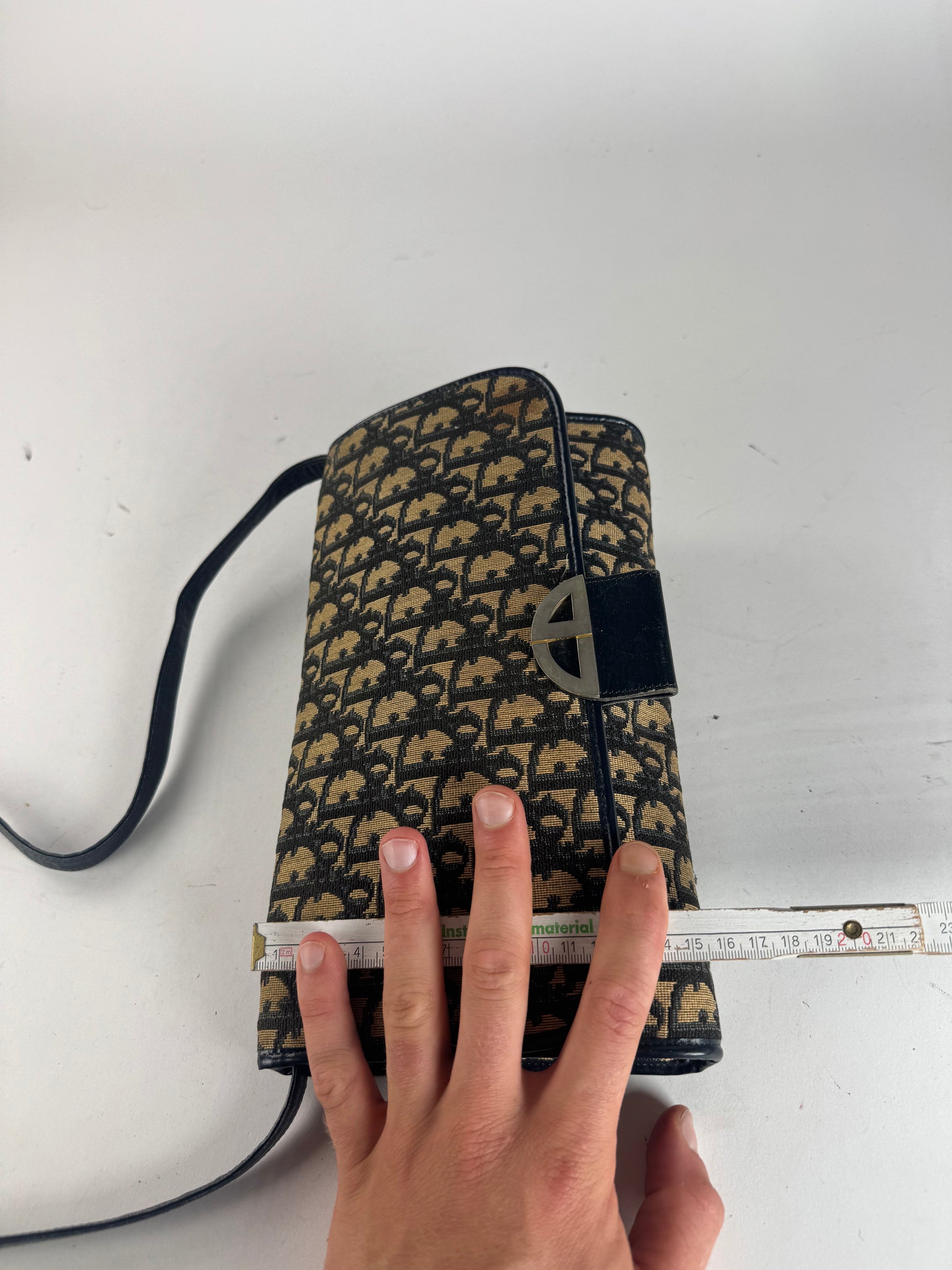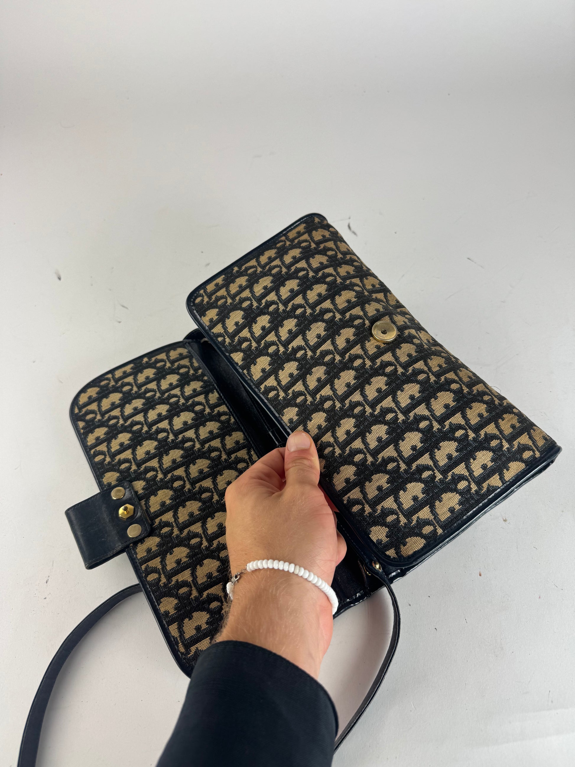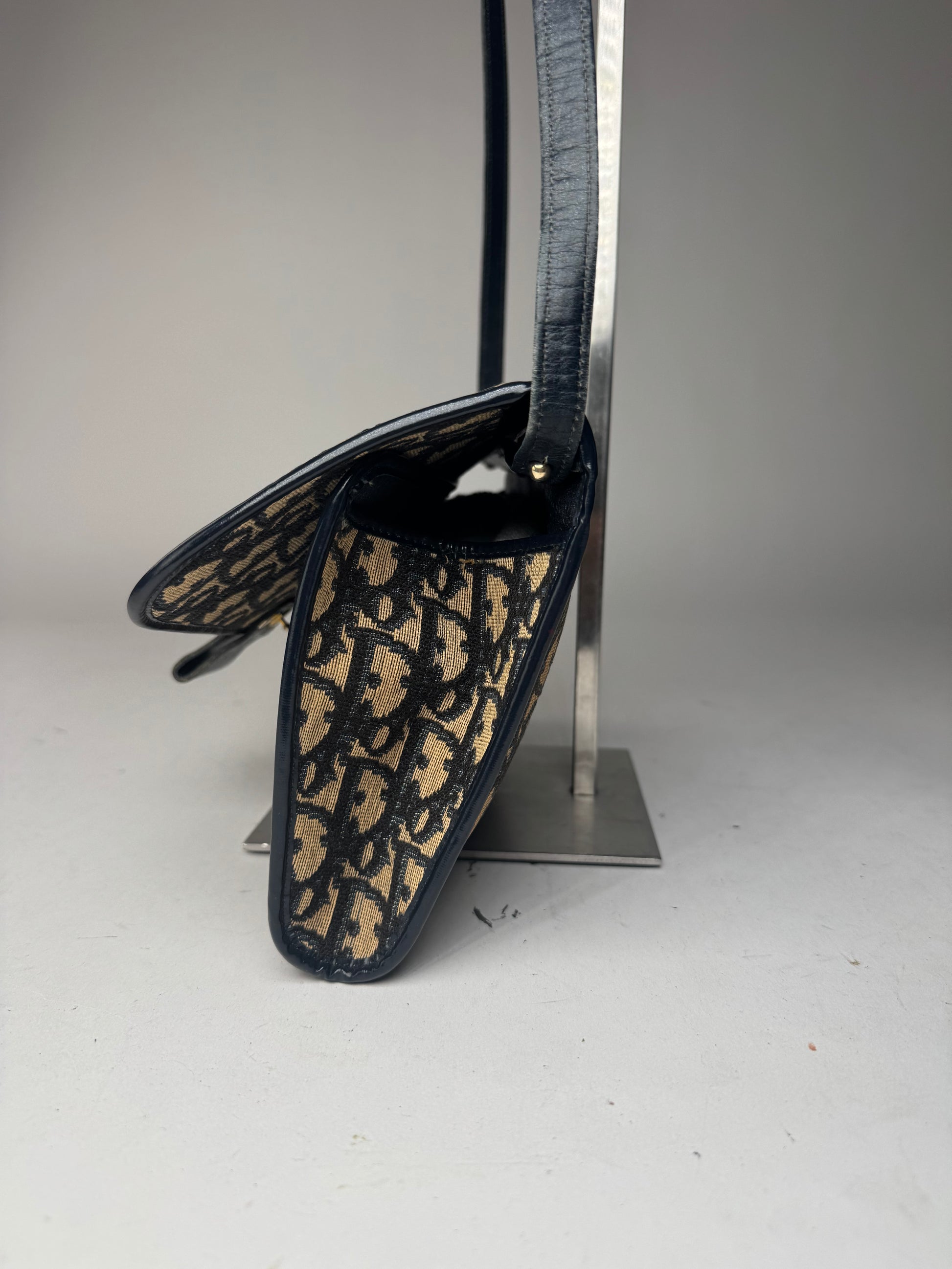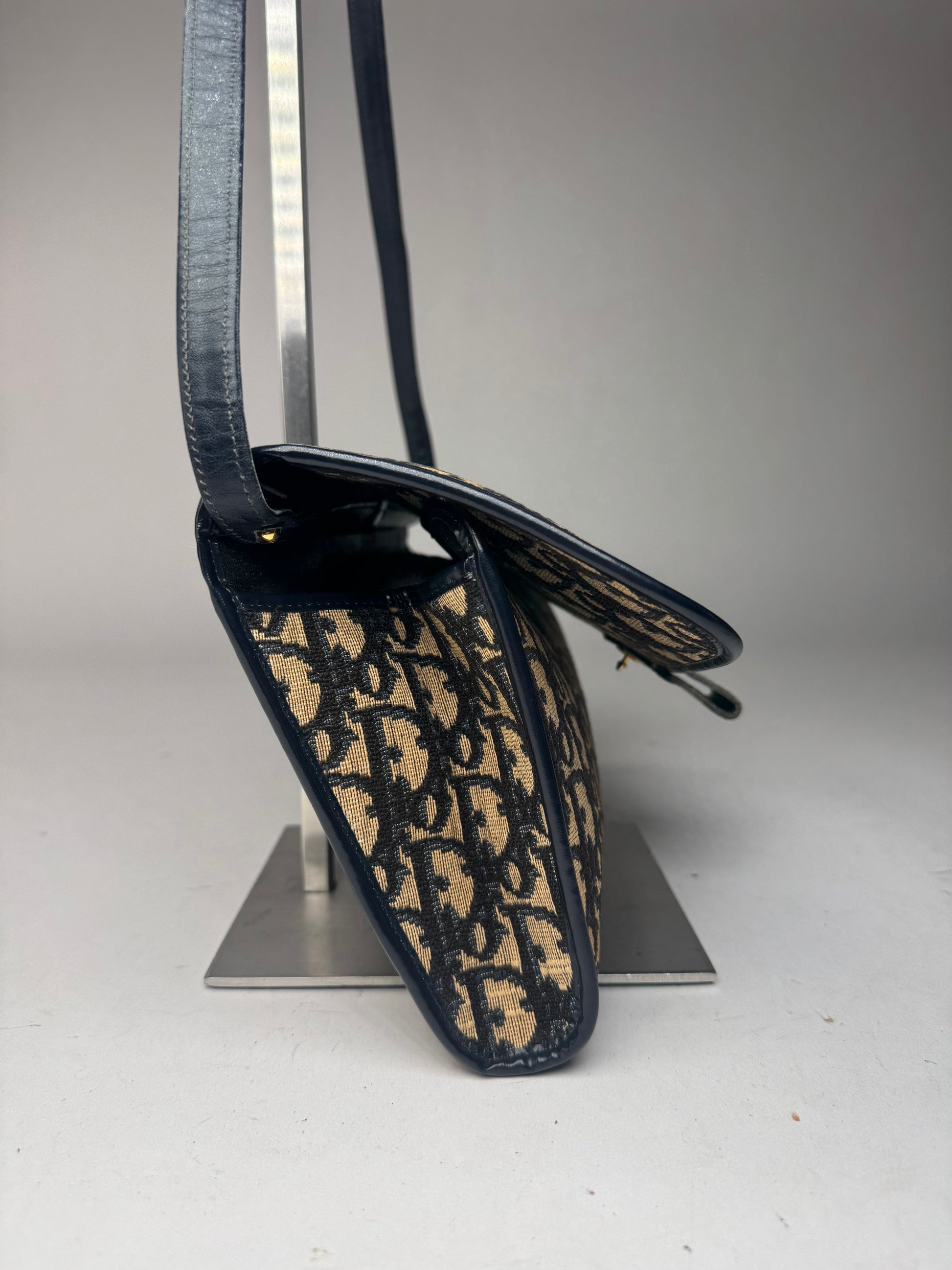 Vintage Dior Oblique Monogram Leather shoulder bag navy beige