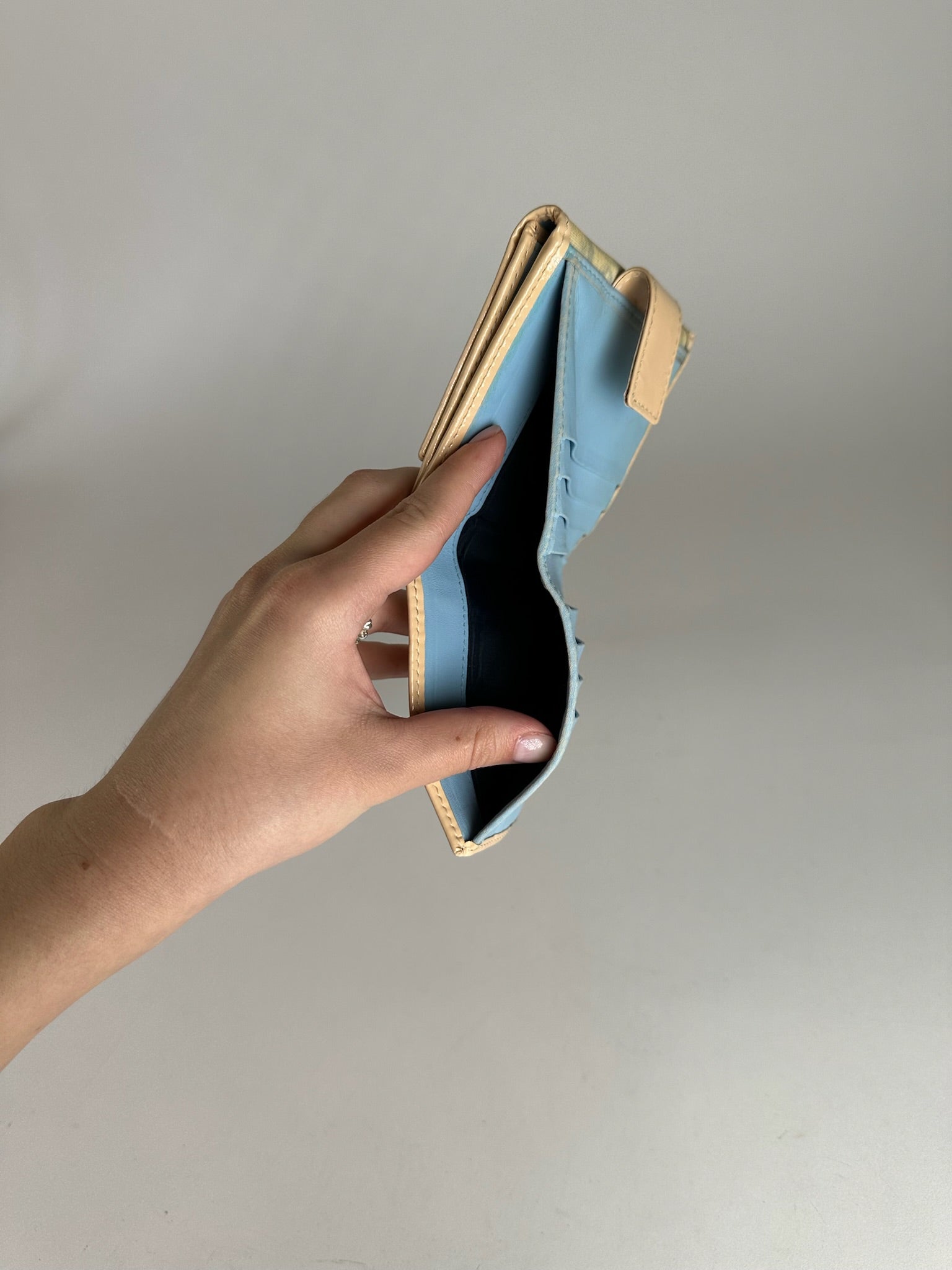 Vintage Dior Oblique Monogram Leather Wallet White blue