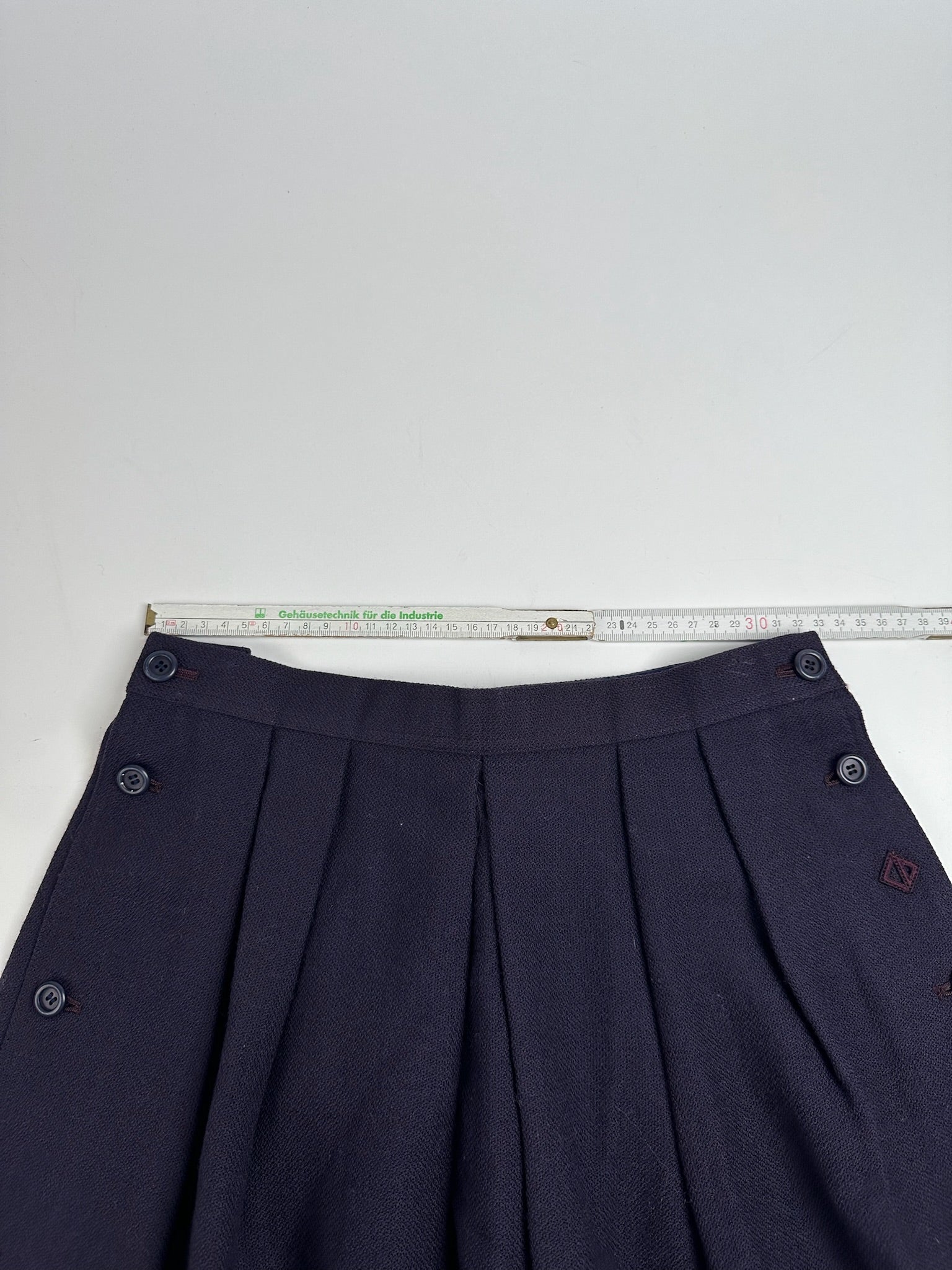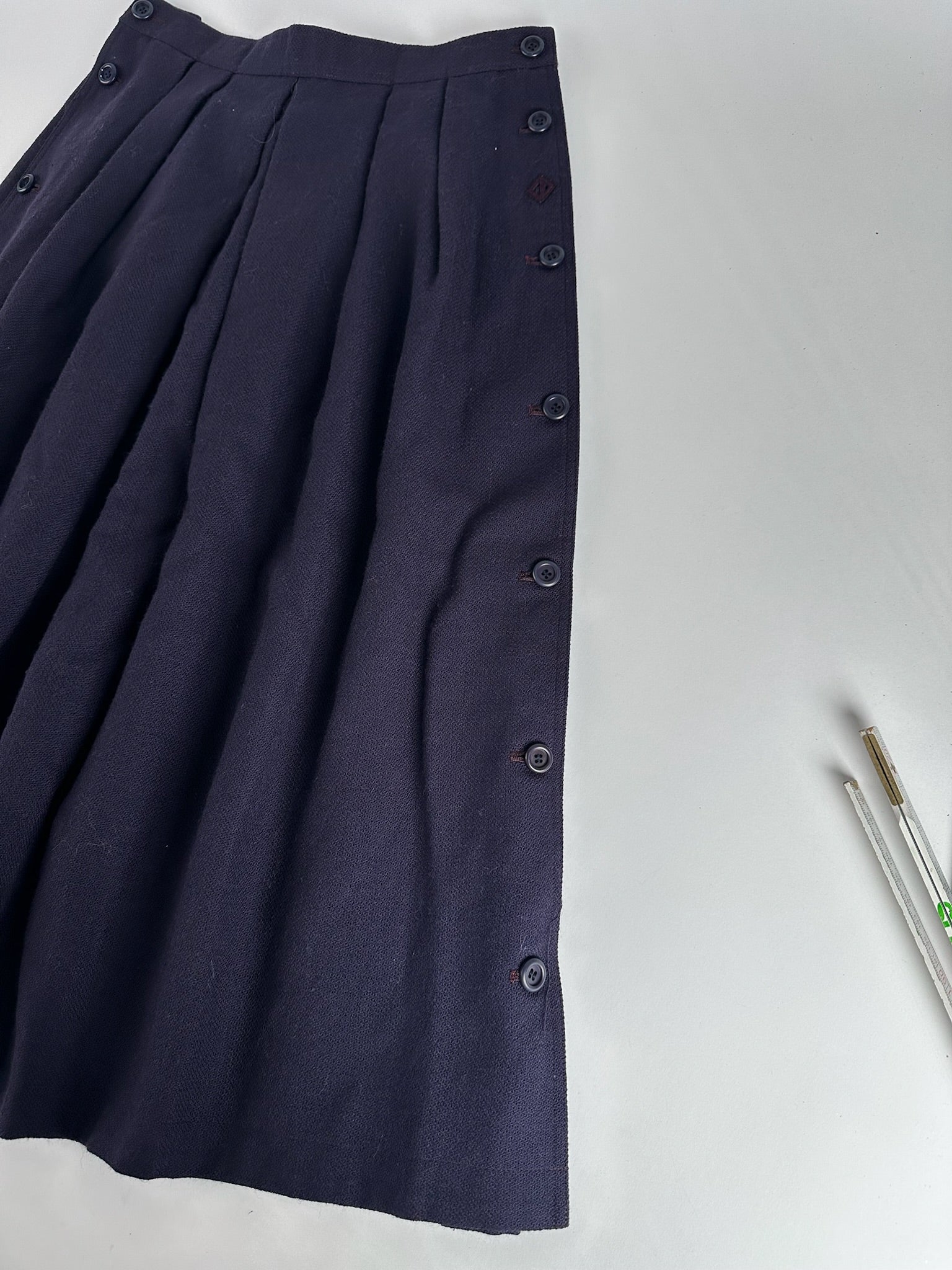 This chic skirt features a classic high waist cut with elegant detailing and a flattering silhouette. It is designed with seven buttons on each side, offering a refined vintage touch. The right side is accented with a discreet purple CD-logo detail.
